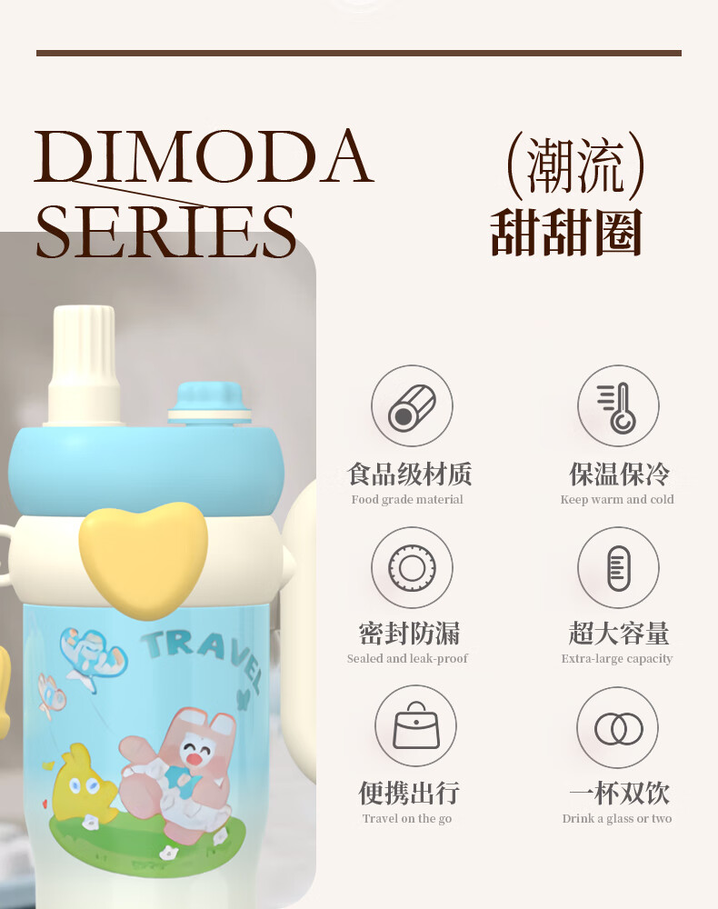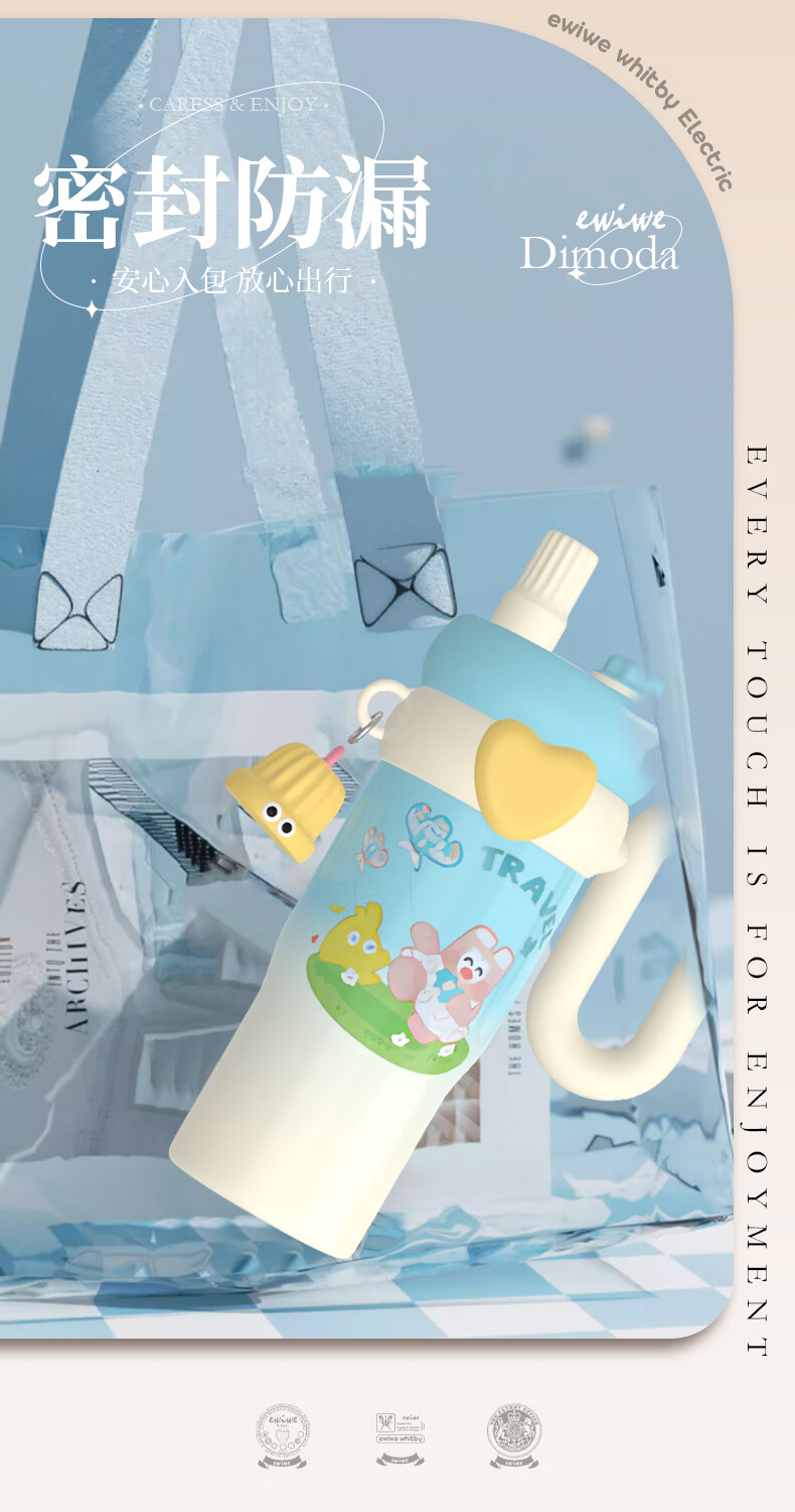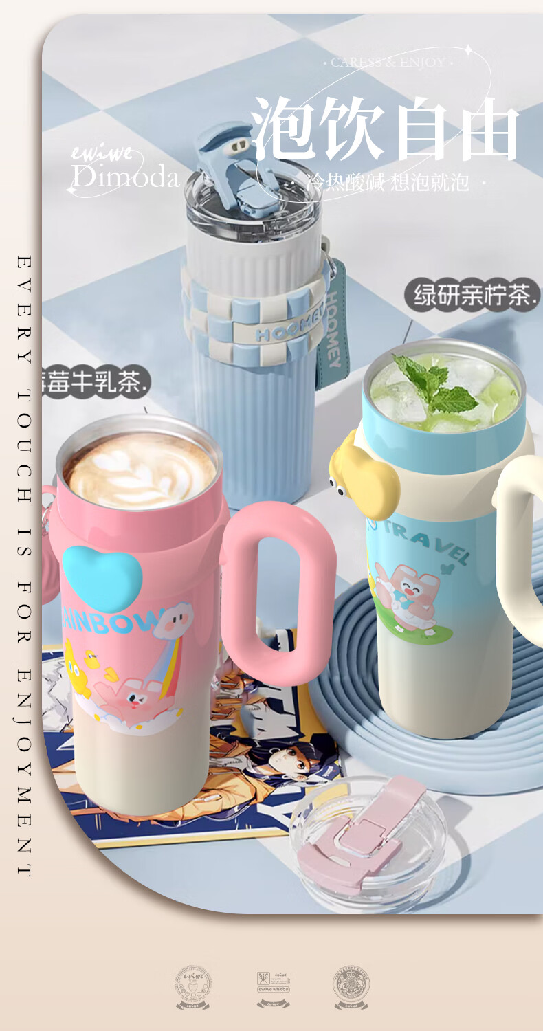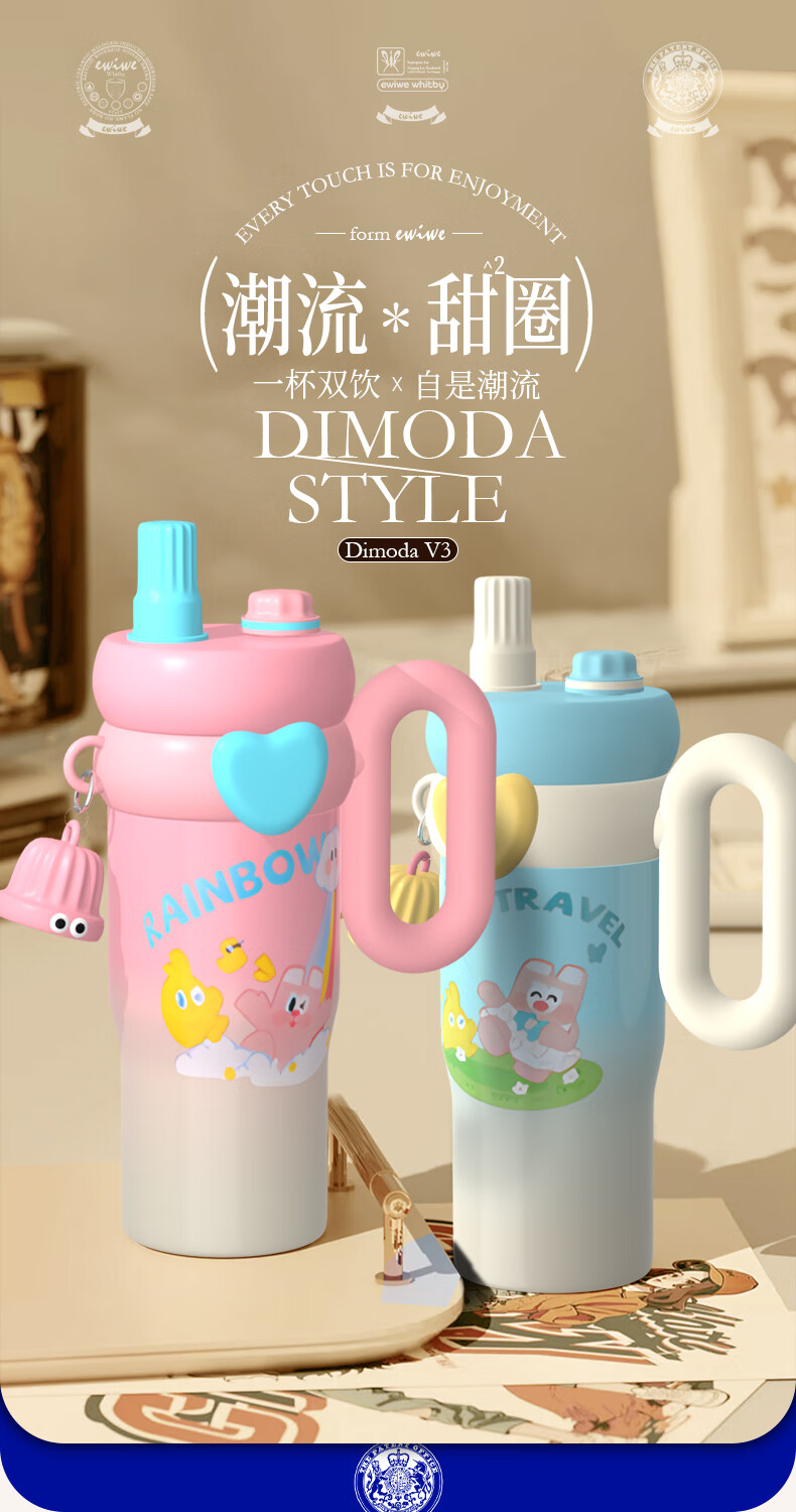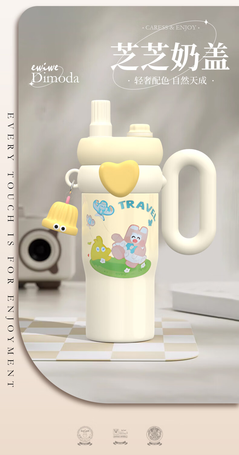 EWIWE甜甜圈巨无霸保温杯大容量水杯2025新款大号吸管冰霸杯男女杯子 粉色/甜甜圈手柄/约 850ml