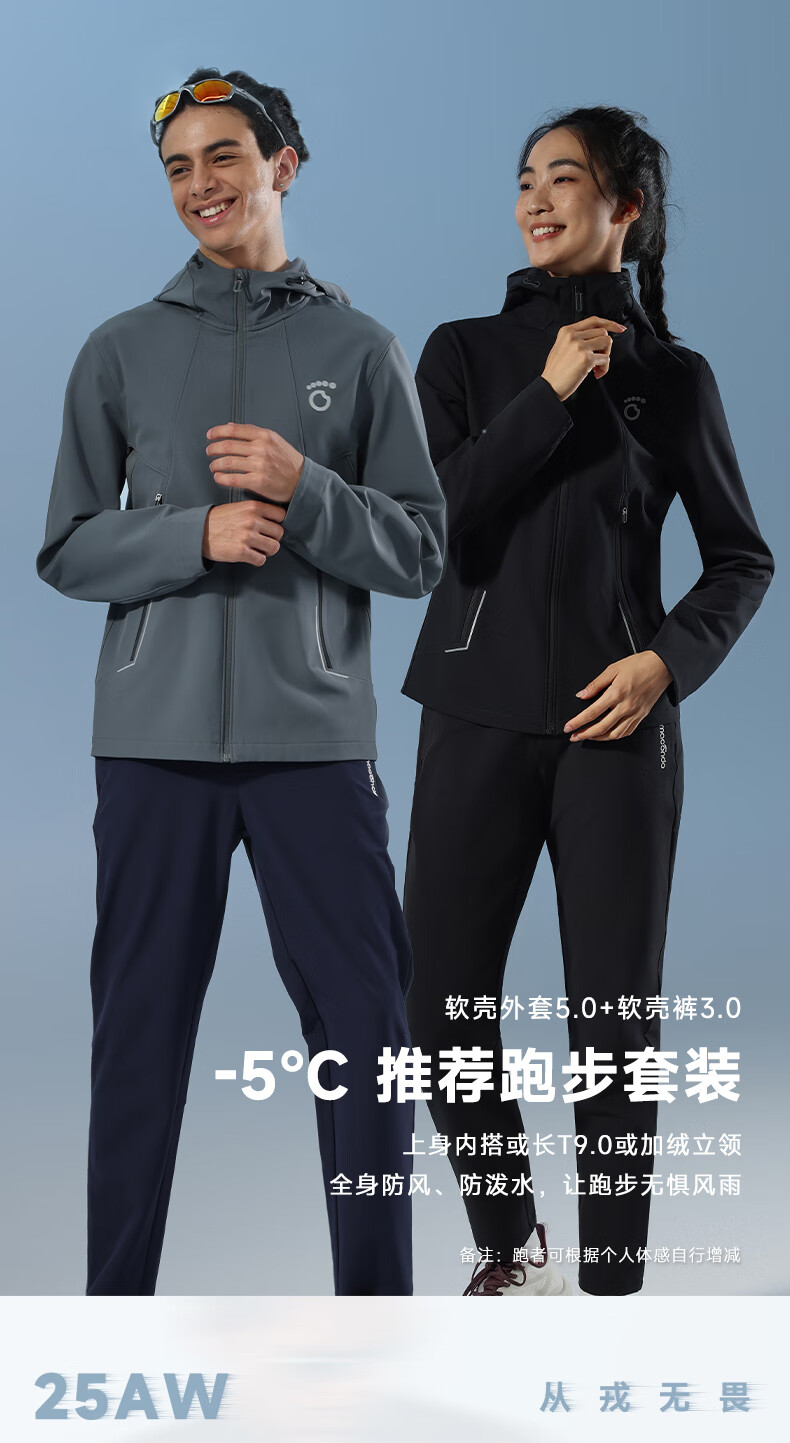 马孔多(macondo)跑步套装软壳外套软壳长裤秋冬运动套装 未来灰+黑色 女 2XL