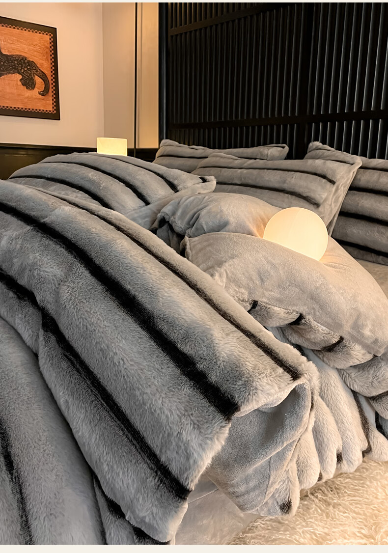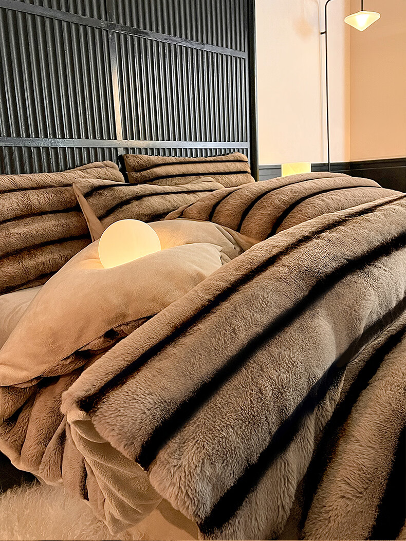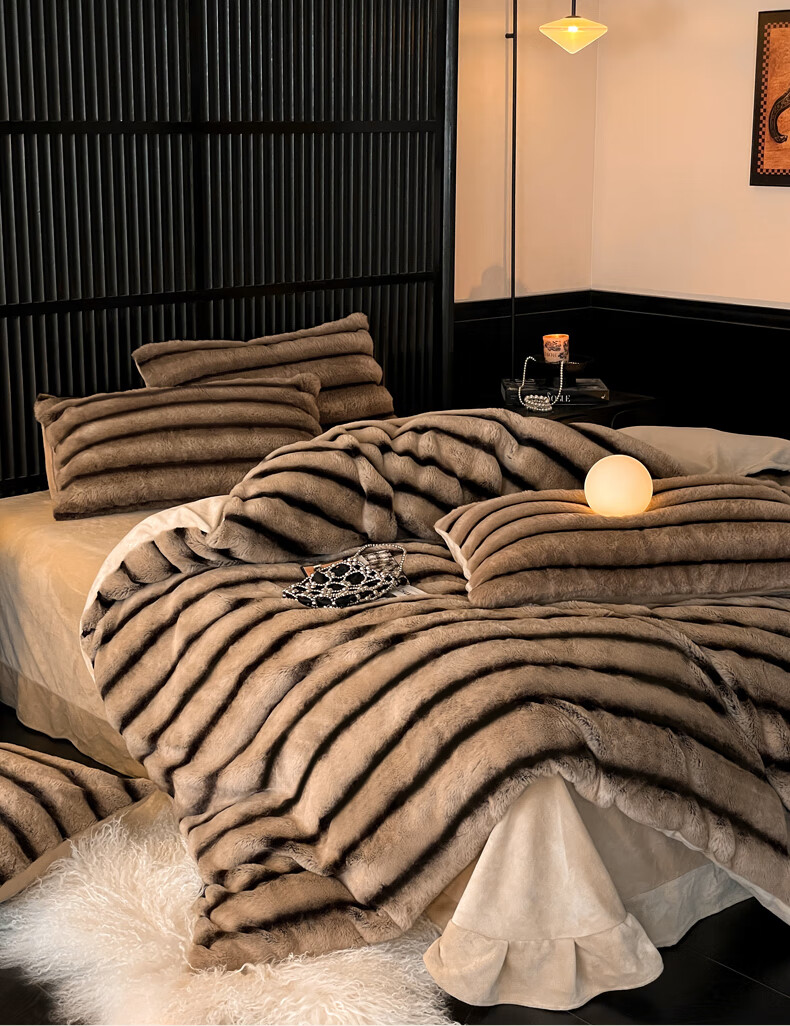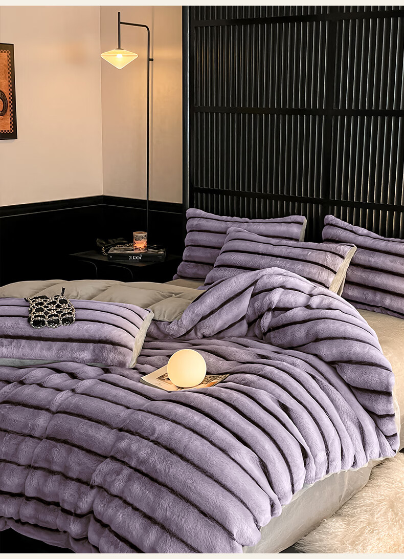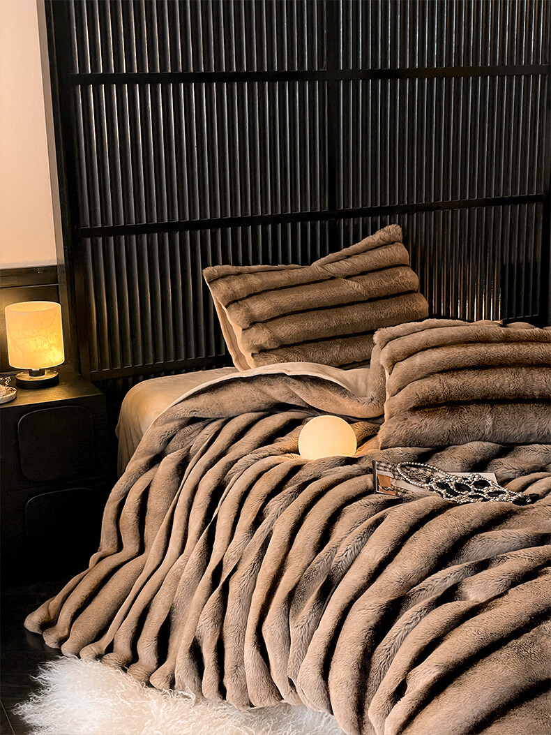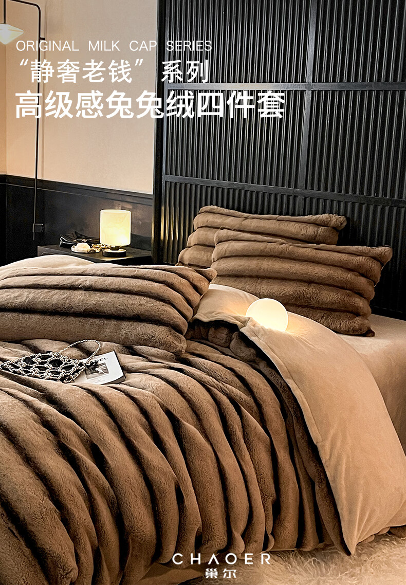 巢尔【摩卡】牛奶绒四件套秋冬款美拉德风仿兔兔绒加厚被套高档床品 A类【雪灰】加厚双面绒 无静电 1.8米床 床笠款 (被套200*230cm)