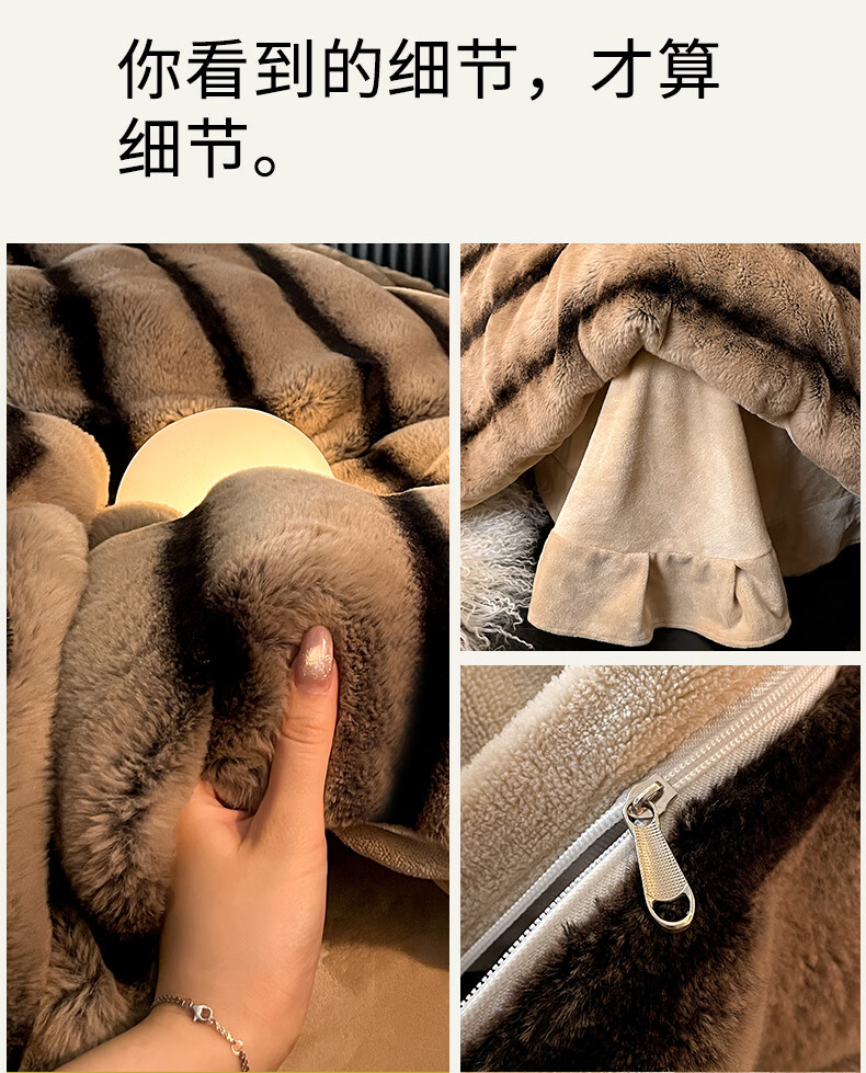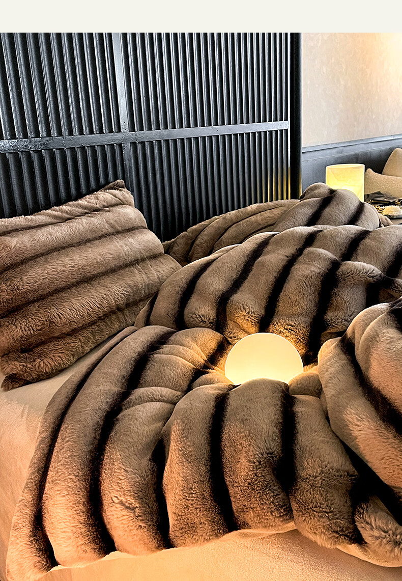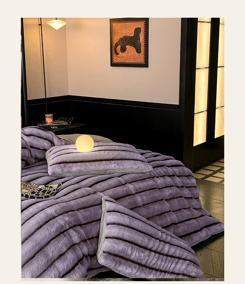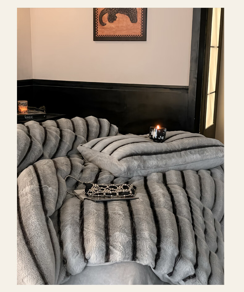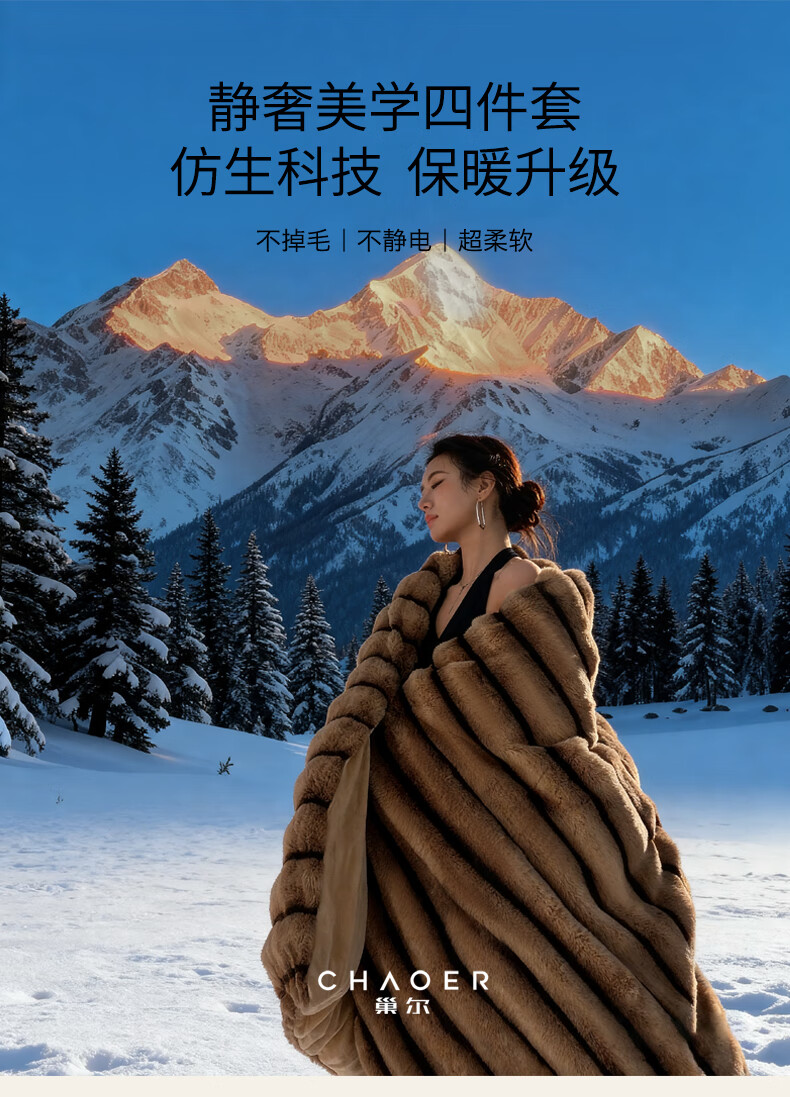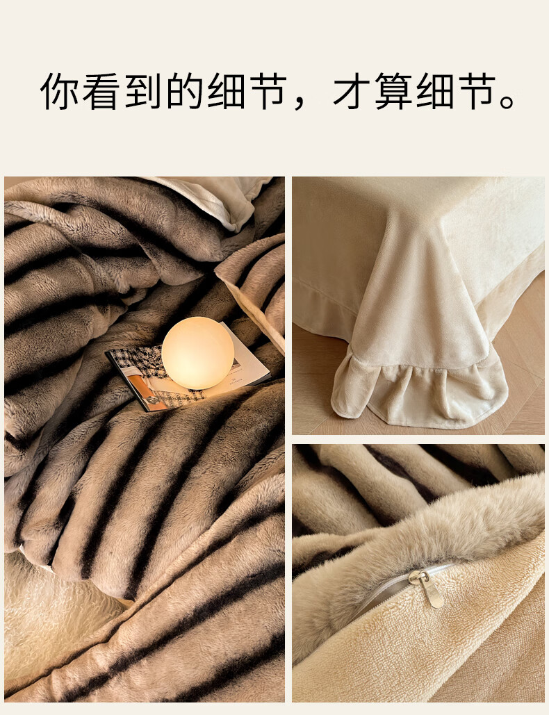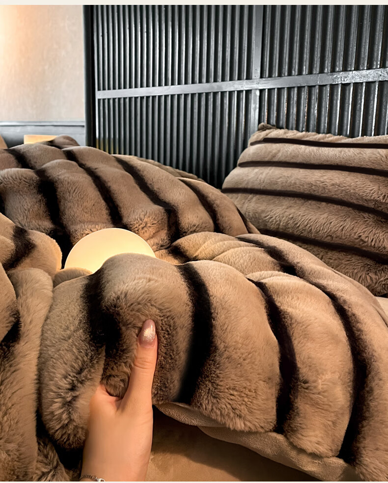 巢尔【摩卡】牛奶绒四件套秋冬款美拉德风仿兔兔绒加厚被套高档床品 A类【雪灰】加厚双面绒 无静电 1.8米床 床笠款 (被套200*230cm)