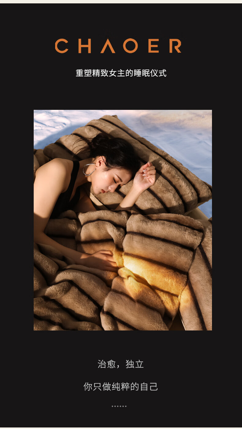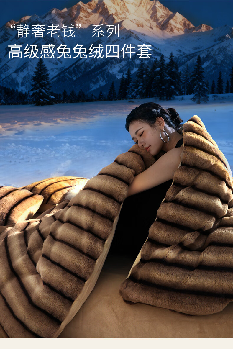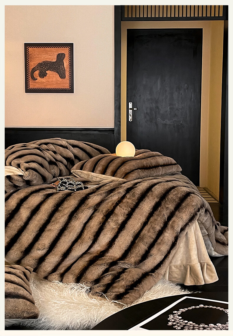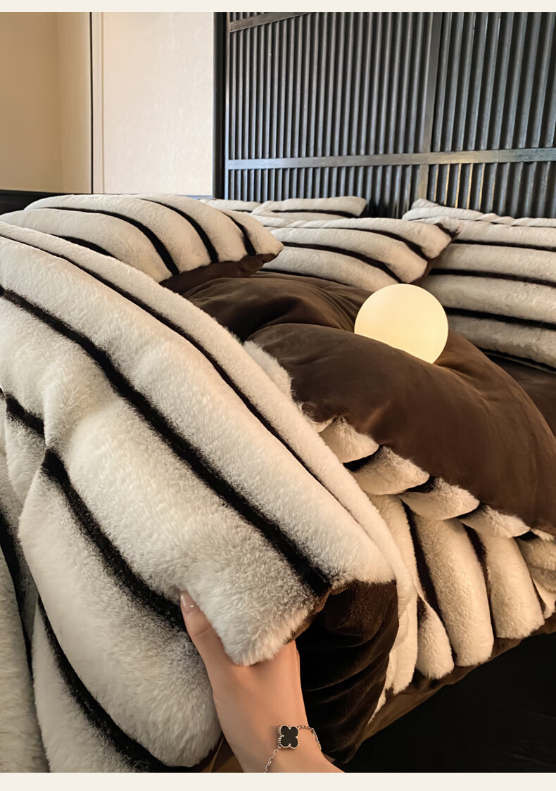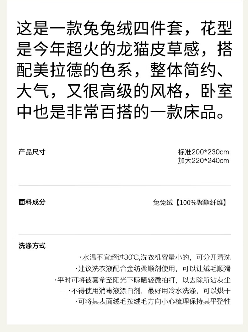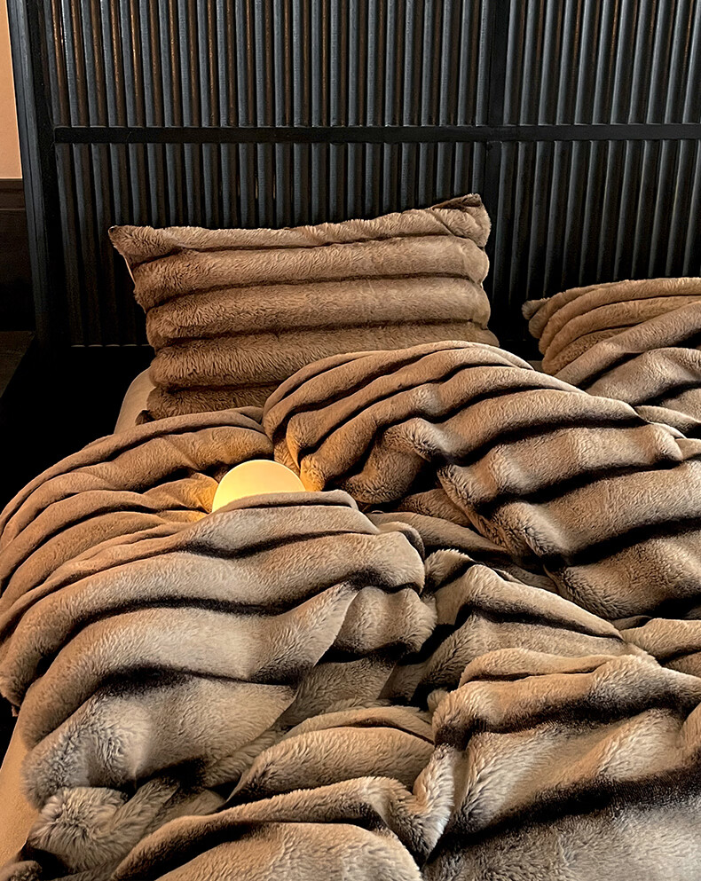 巢尔【摩卡】牛奶绒四件套秋冬款美拉德风仿兔兔绒加厚被套高档床品 A类【雪灰】加厚双面绒 无静电 1.8米床 床笠款 (被套200*230cm)