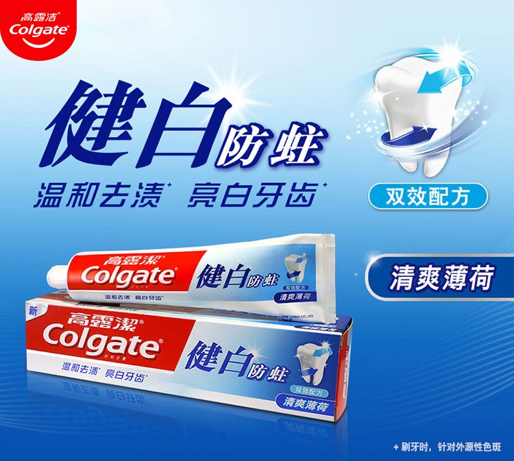 高露洁健白防蛀牙膏家庭装双效配方牙齿清爽薄荷清新口气 健白防蛀 90g*2支 +冰爽120g*2