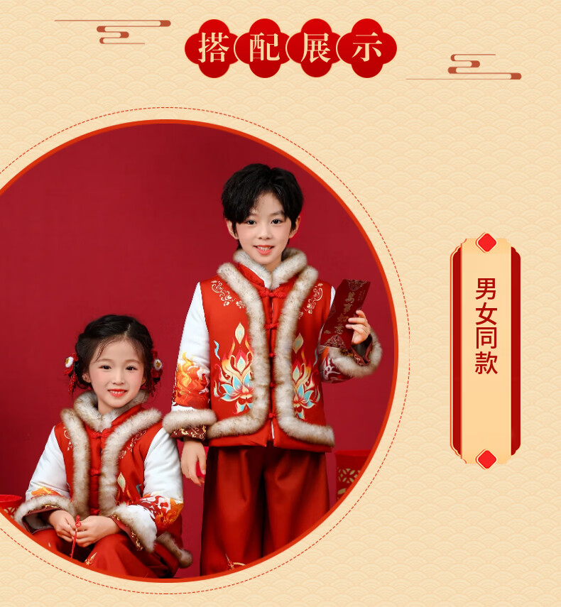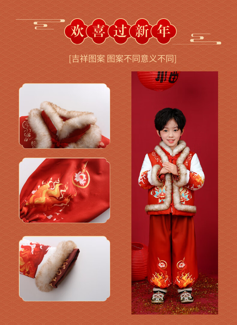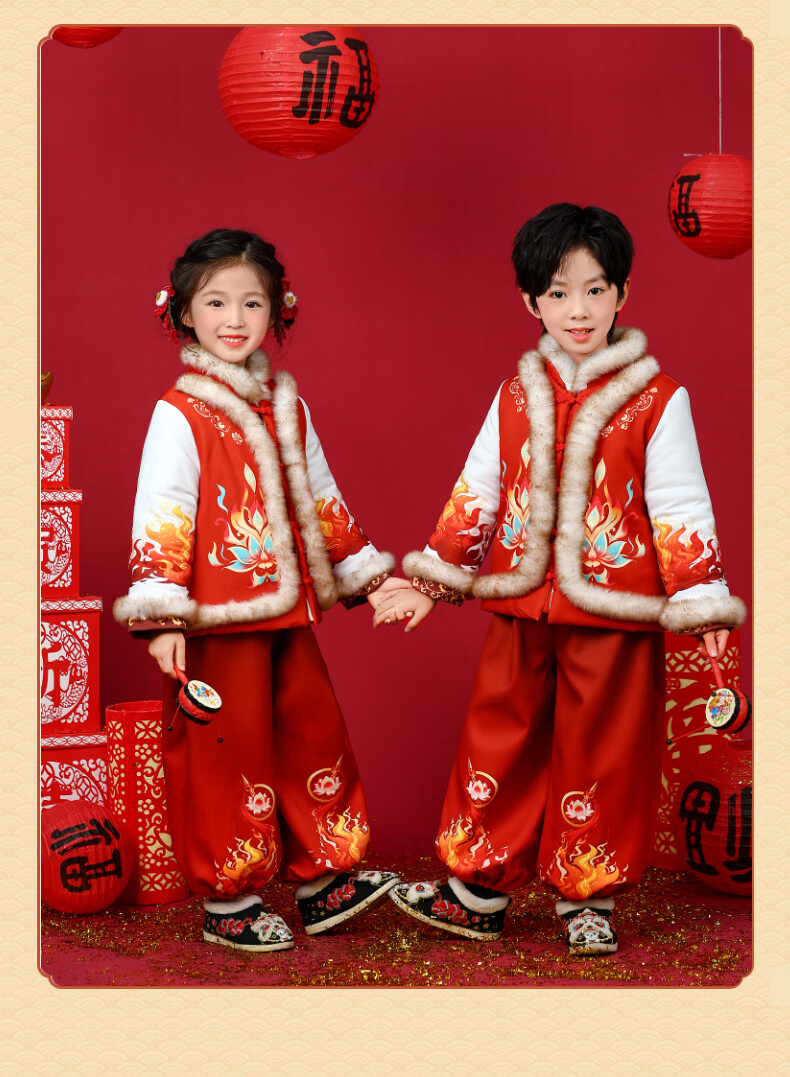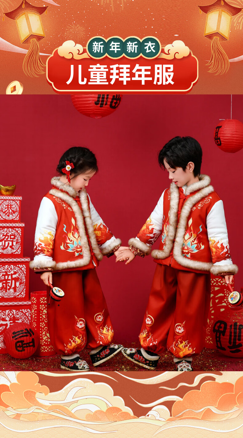 贝婴初(BEIYINGCHU)男女童拜年服2026新款加厚加绒过年衣服宝宝春节喜周岁庆礼服套装 女童拜年服(全身加绒加厚) 110 (建议身高100-110cm)