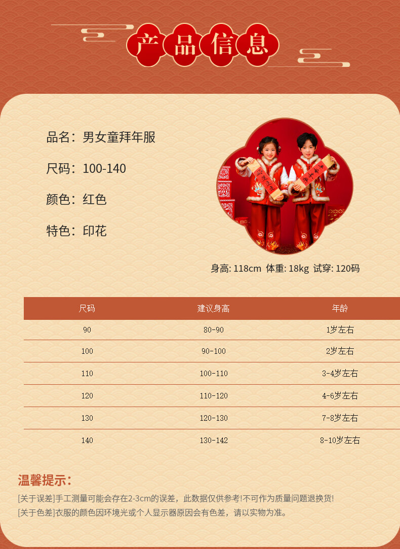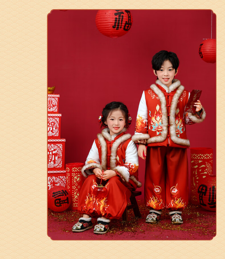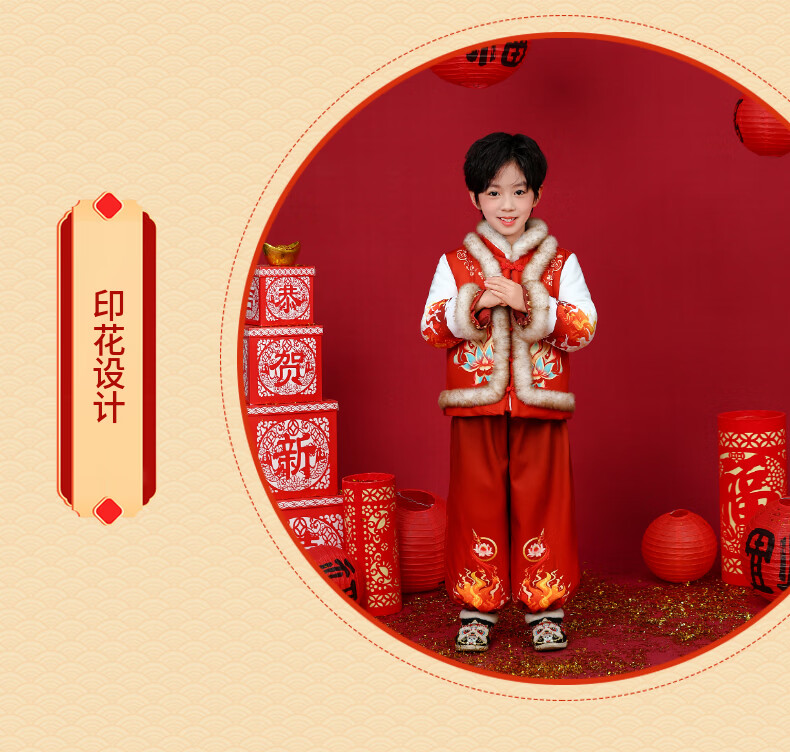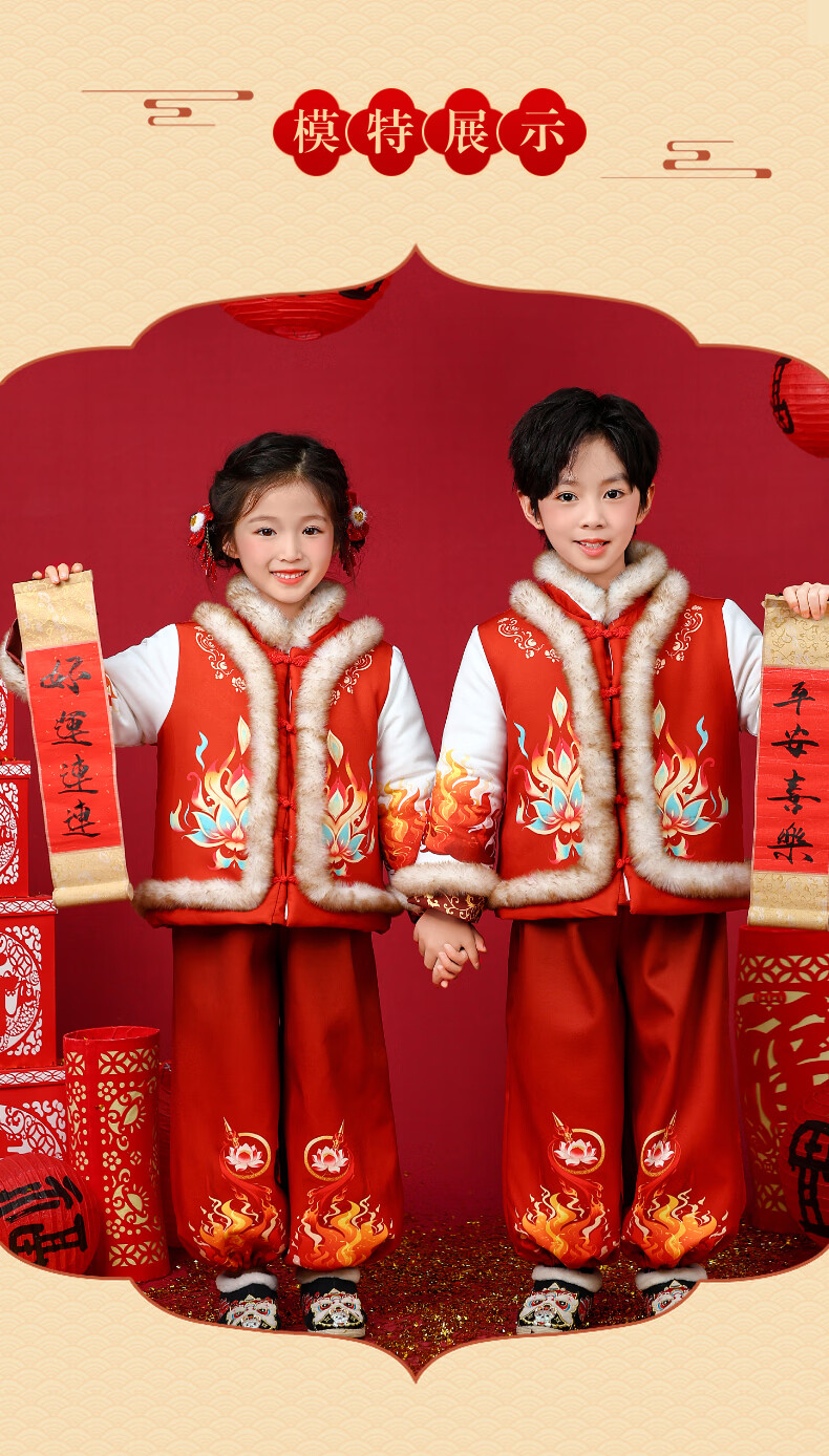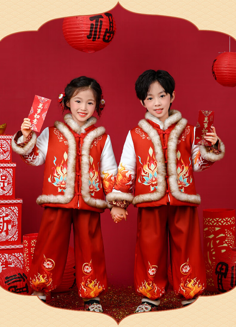 贝婴初(BEIYINGCHU)男女童拜年服2026新款加厚加绒过年衣服宝宝春节喜周岁庆礼服套装 女童拜年服(全身加绒加厚) 110 (建议身高100-110cm)