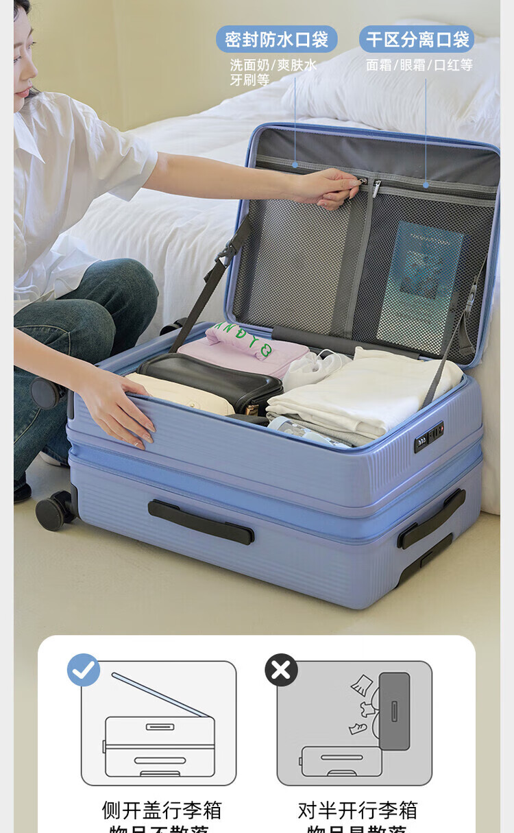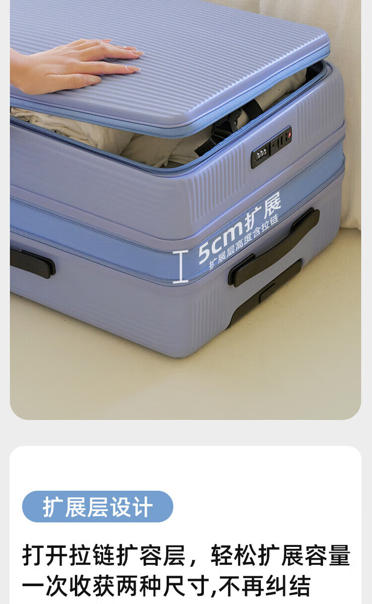 地平线8号大容量行李箱2025新款耐用拉杆箱前开口带扩展密码旅行箱男 樱花粉 可扩展 28寸 托运箱 (适合长途/上学/出国等*大容量放