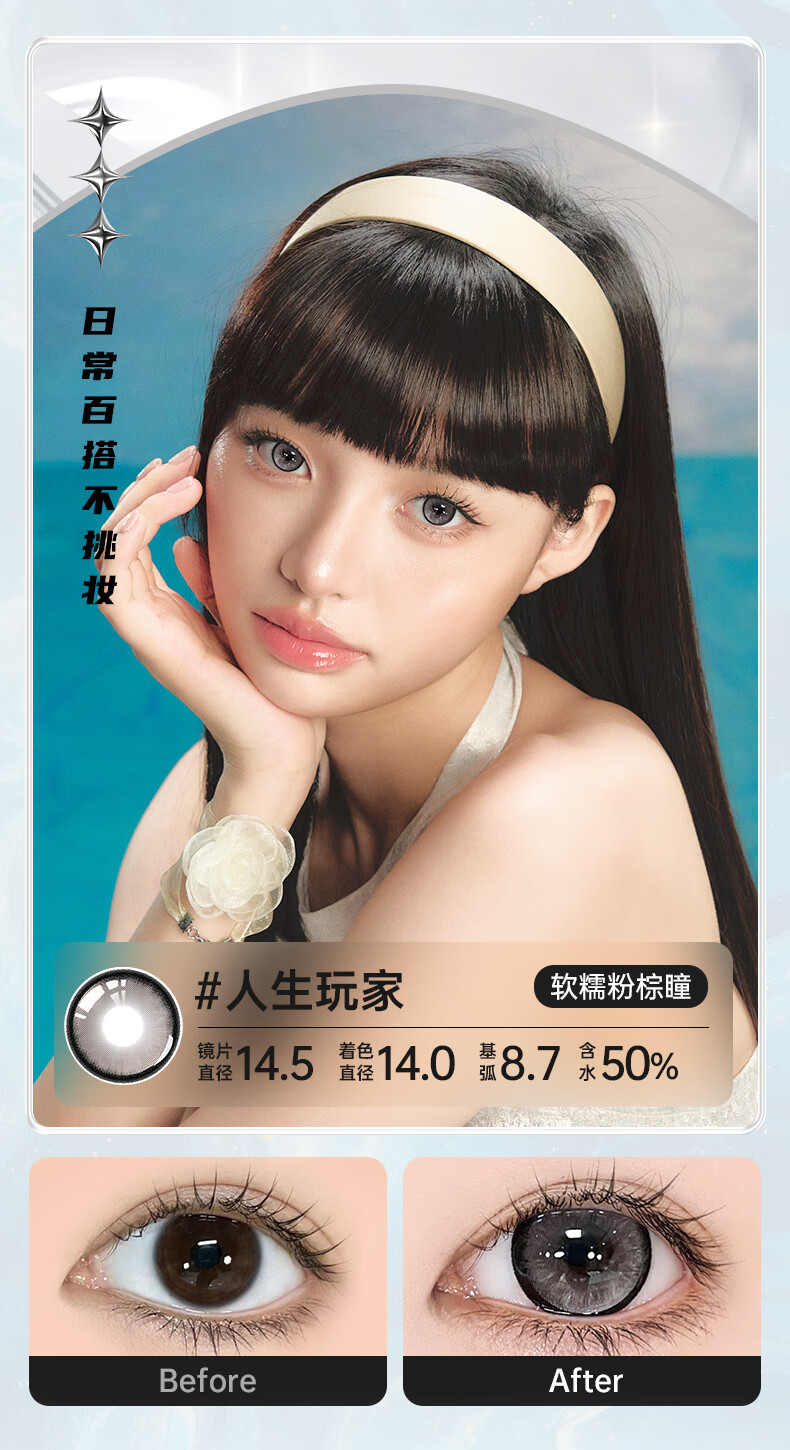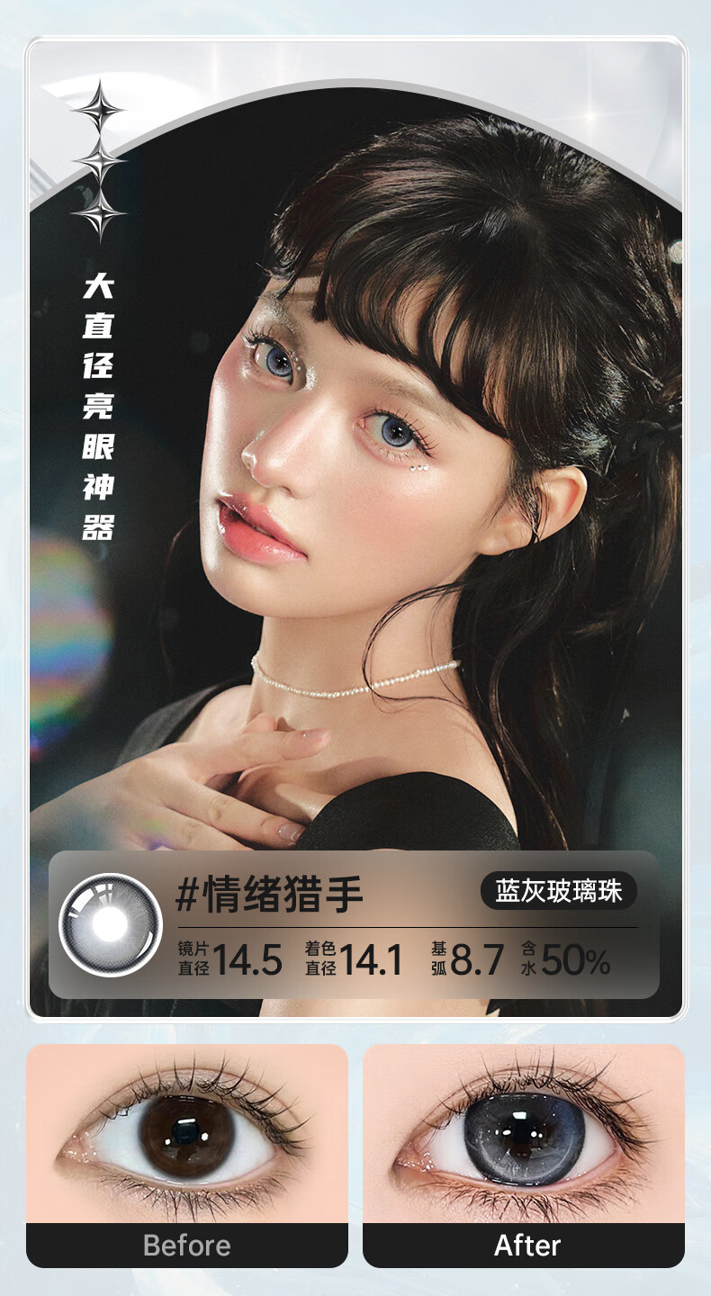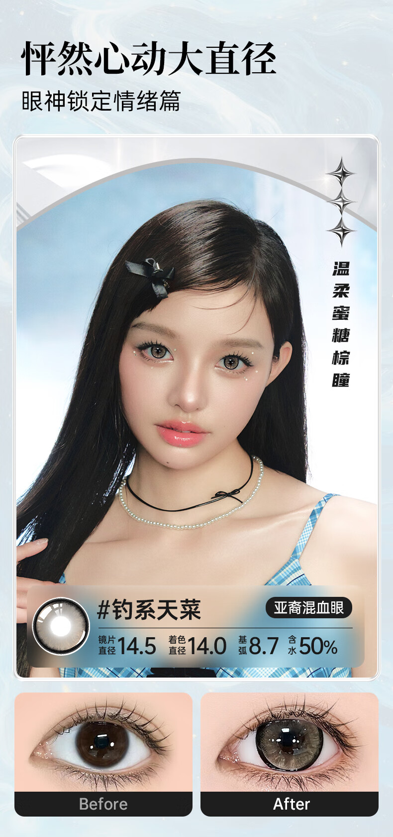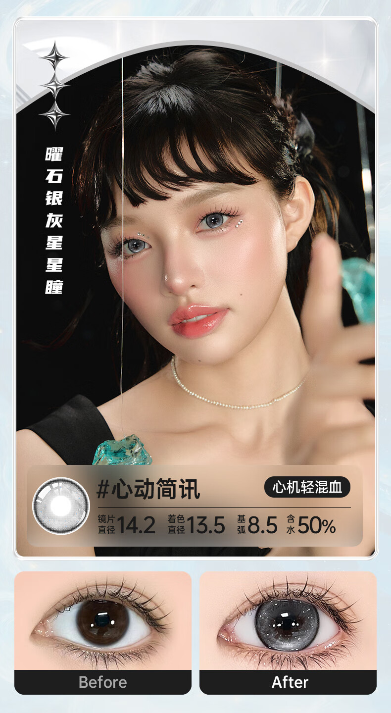 伊娃爱美瞳光的假想日抛10片中大直径隐形眼镜女三明治工 【郑燕姿同款】晋级爱神14.5丨粉灰高光渐变 0度