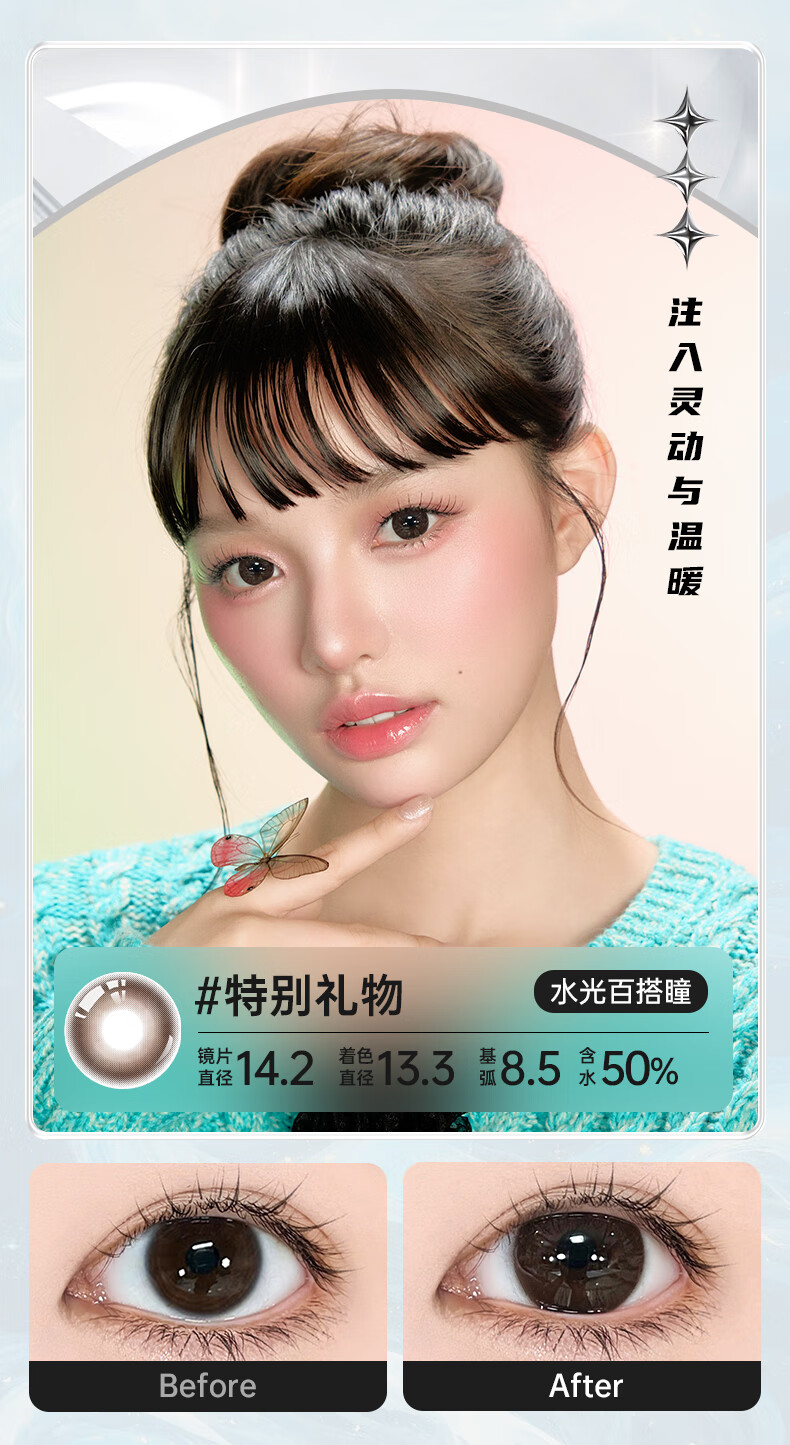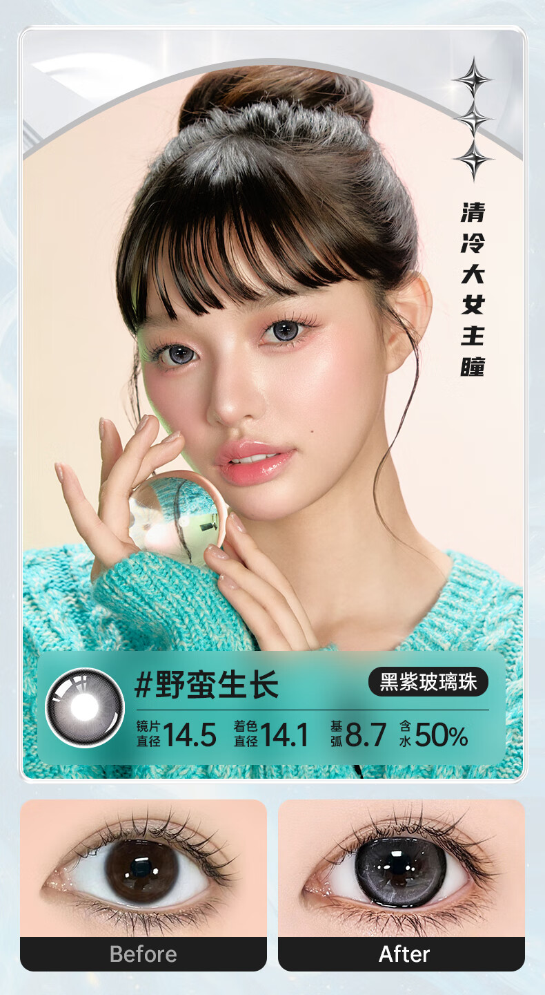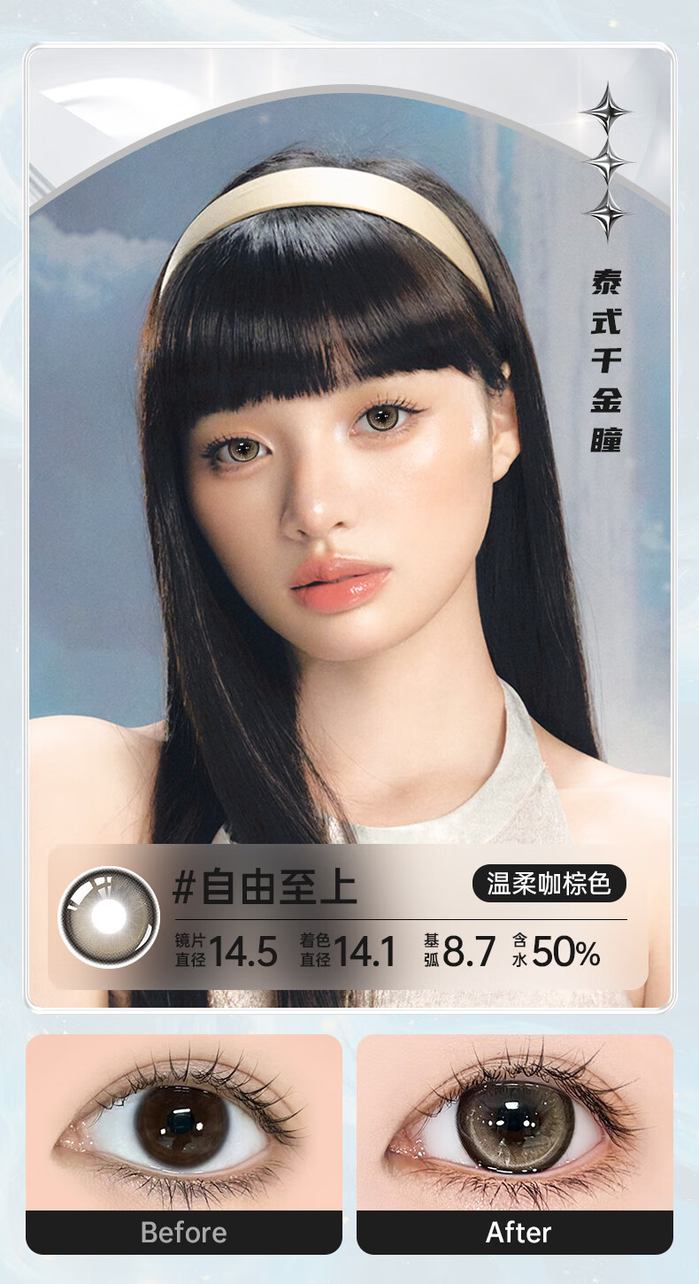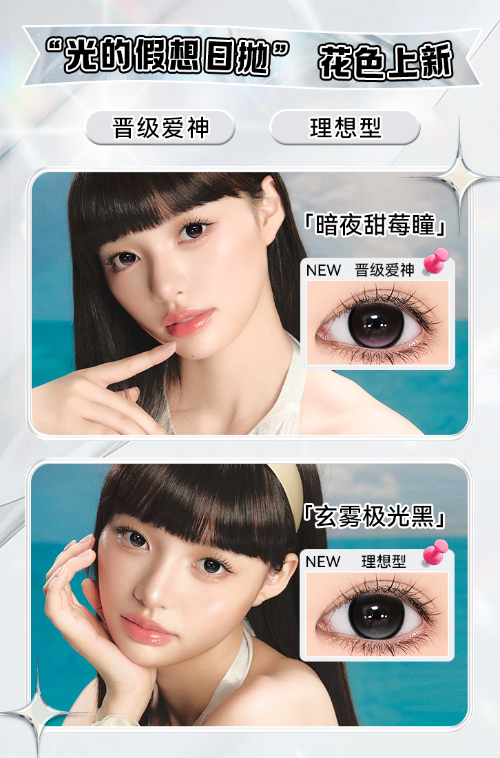 伊娃爱美瞳光的假想日抛10片中大直径隐形眼镜女三明治工 【郑燕姿同款】晋级爱神14.5丨粉灰高光渐变 0度