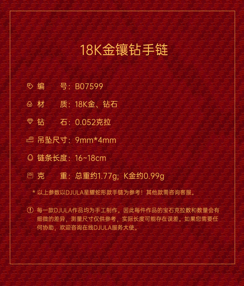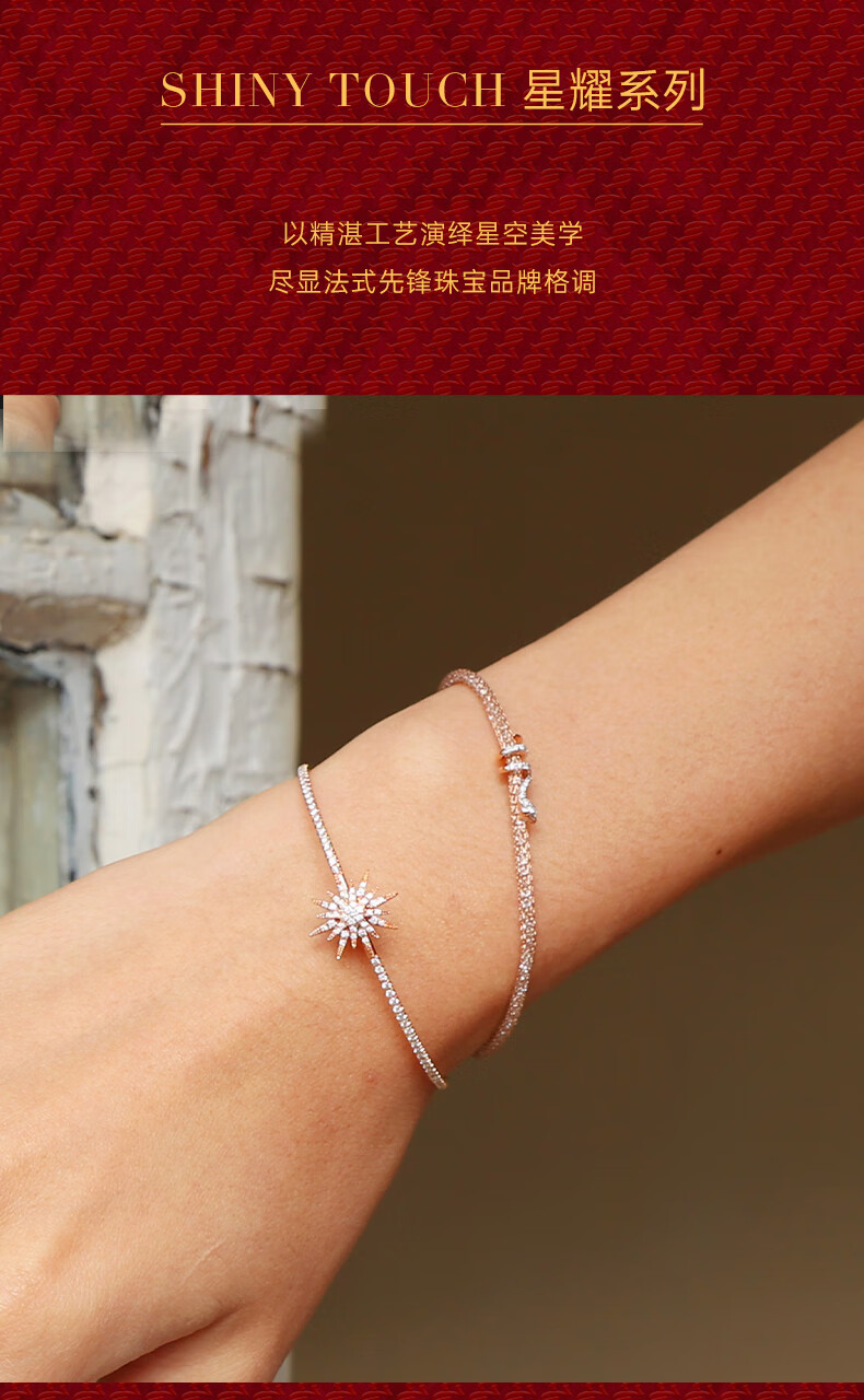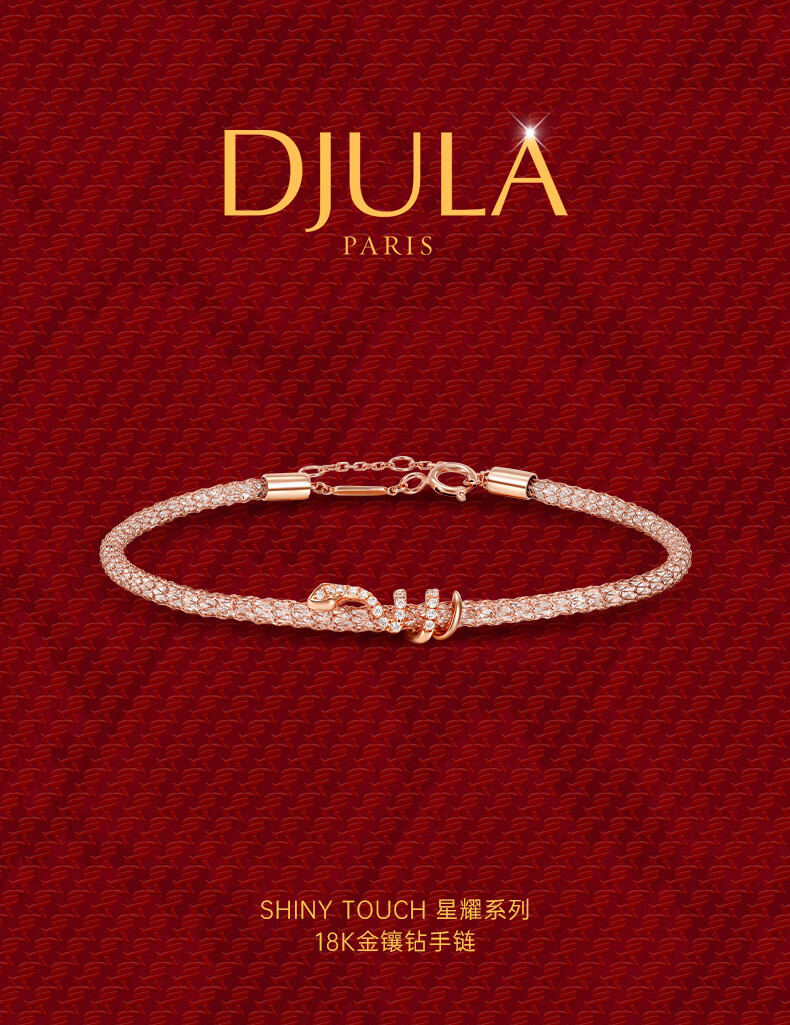 DJULA【明星同款】茱蕊星耀法式轻奢小众18K金镶钻高级感手链送女生 18K金玫瑰金(蛇形)