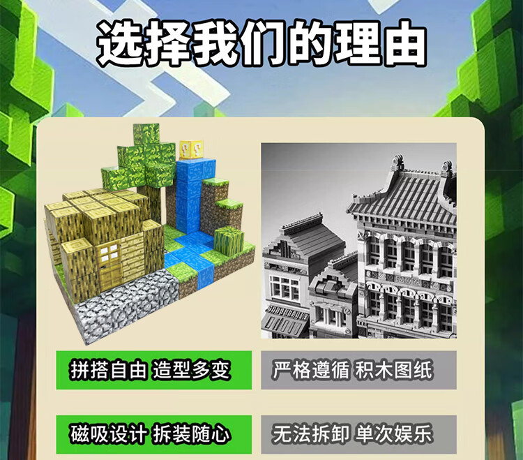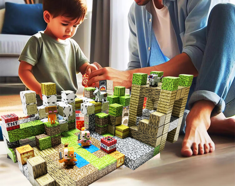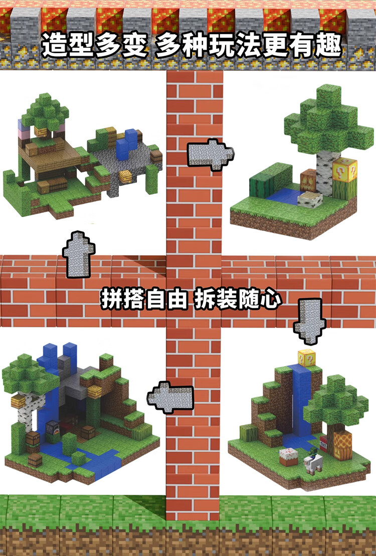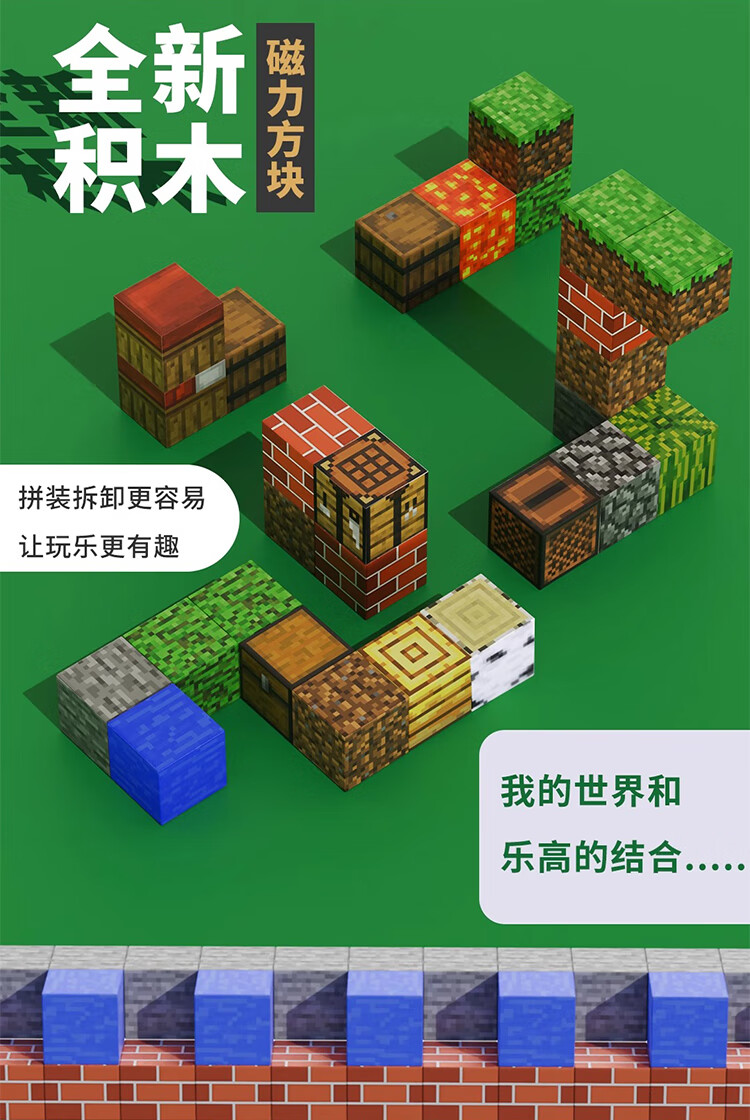 糜鸿我的世界磁力方块 块磁性磁铁积木为男孩建立全套儿童玩具礼物 磁力方块随机450颗粒30公仔/送52武器