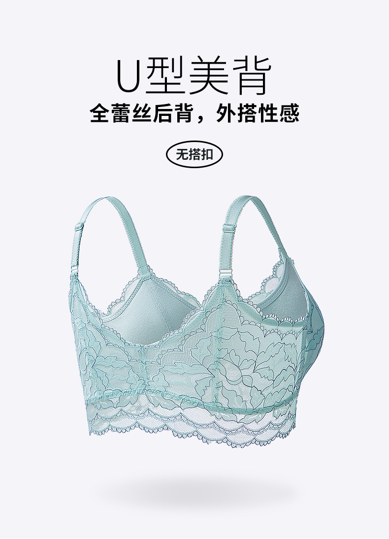 千奈美断码清仓薄款美背文胸大胸显小运动抹胸文胸收副乳胸罩 冰绿色 80A L (BC)