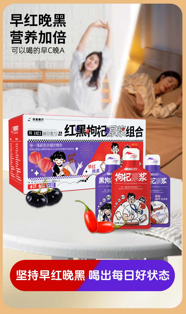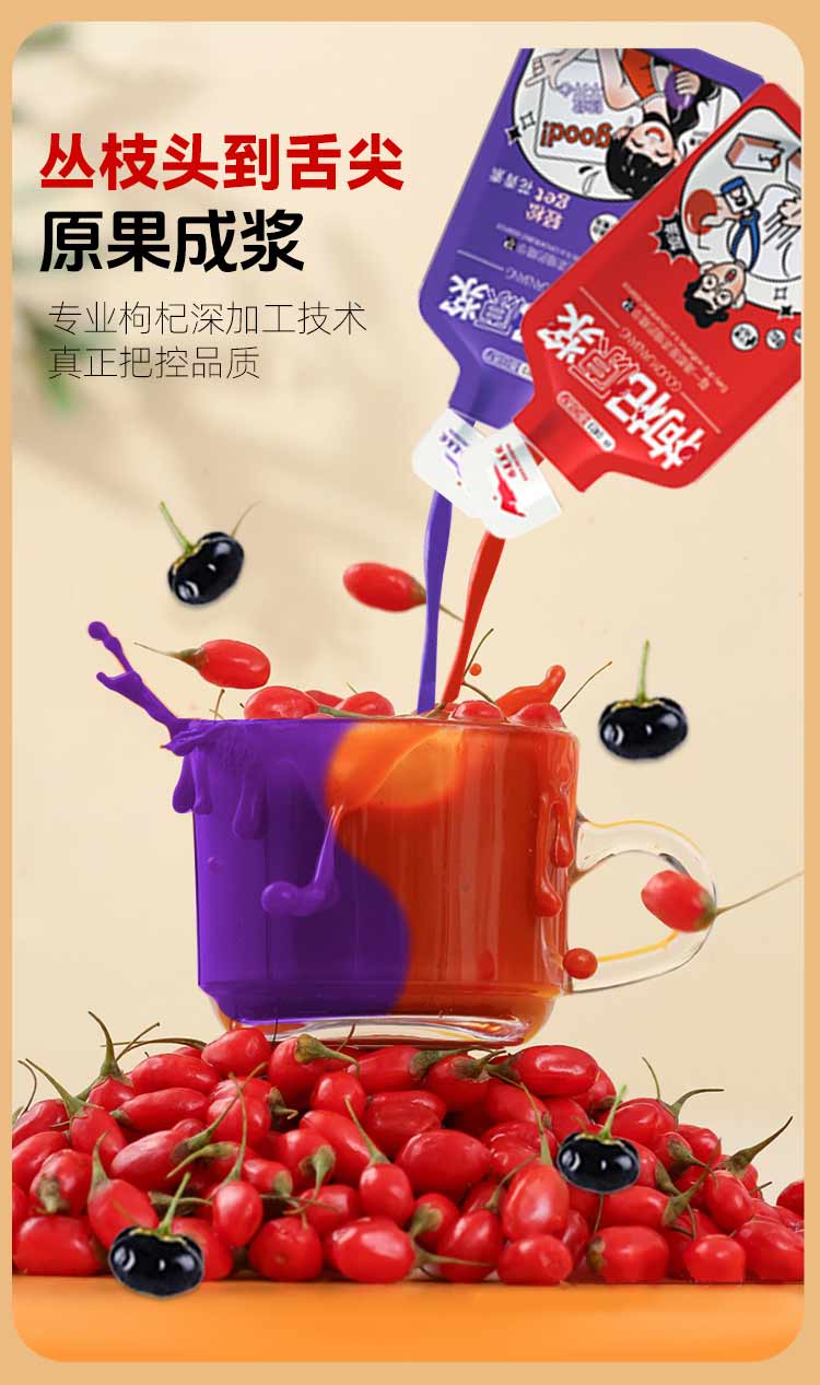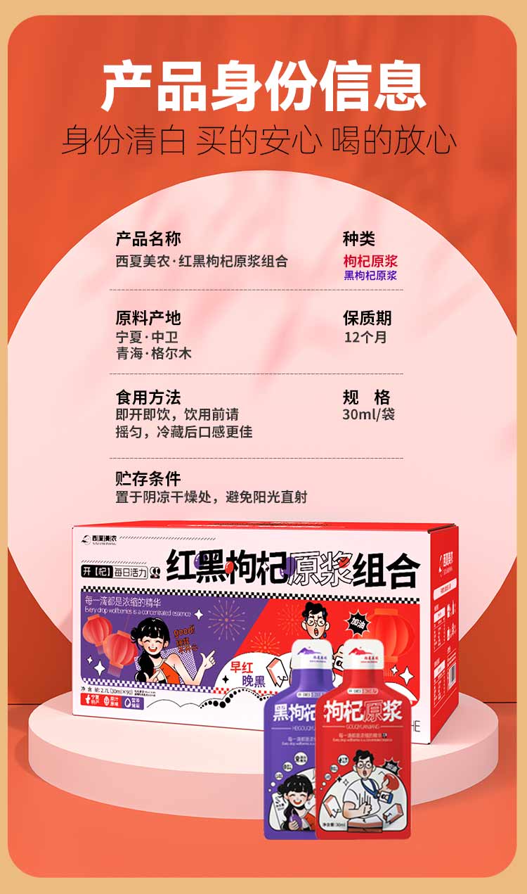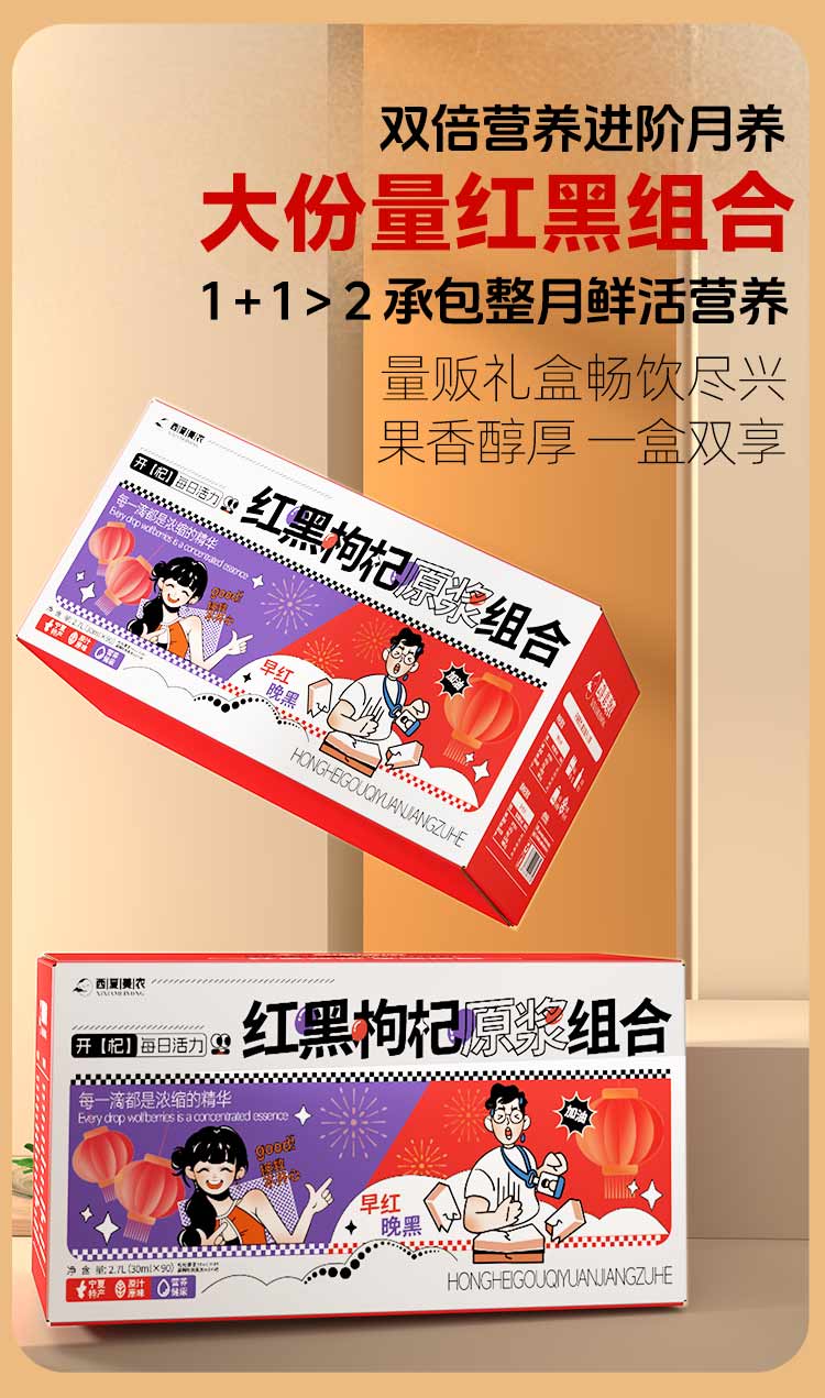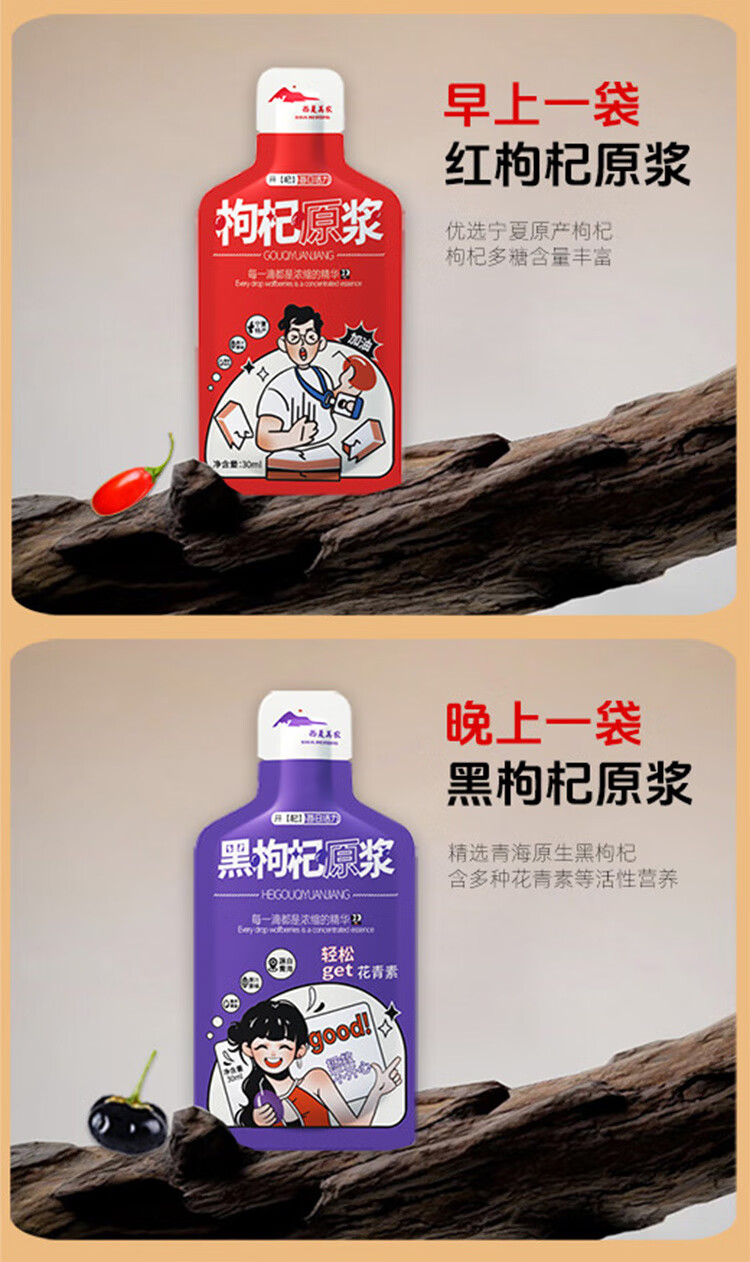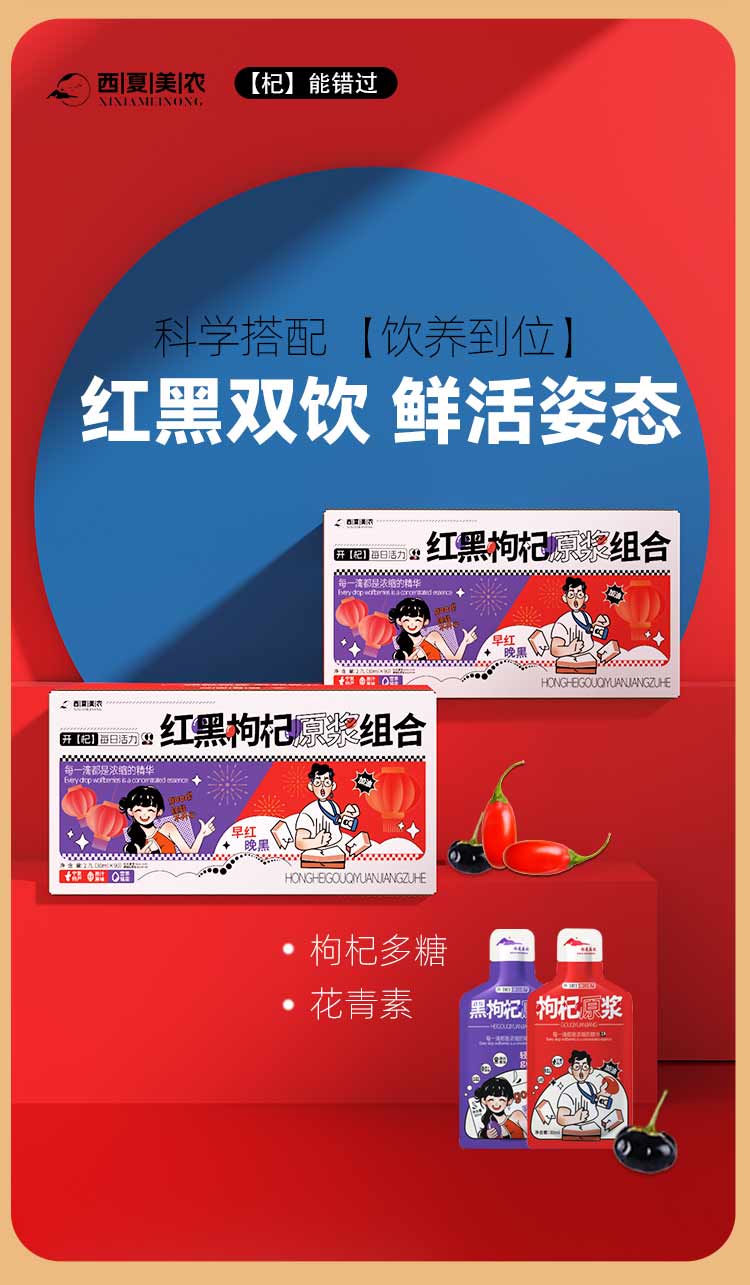 西夏美农枸杞原浆正宗宁夏大果枸杞子枸杞汁红枸杞原液年货礼盒 红黑原浆组合30ml*100袋
