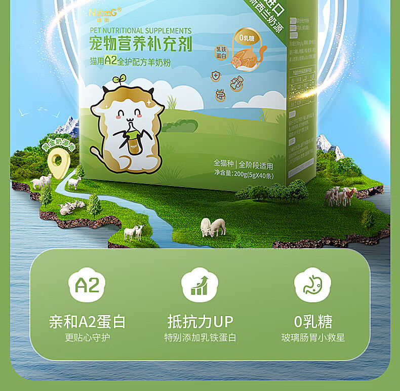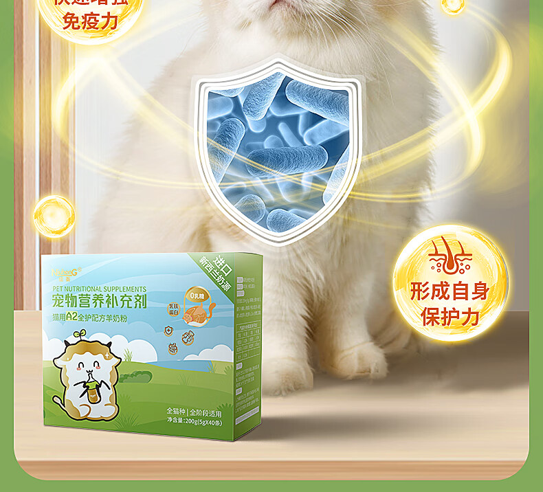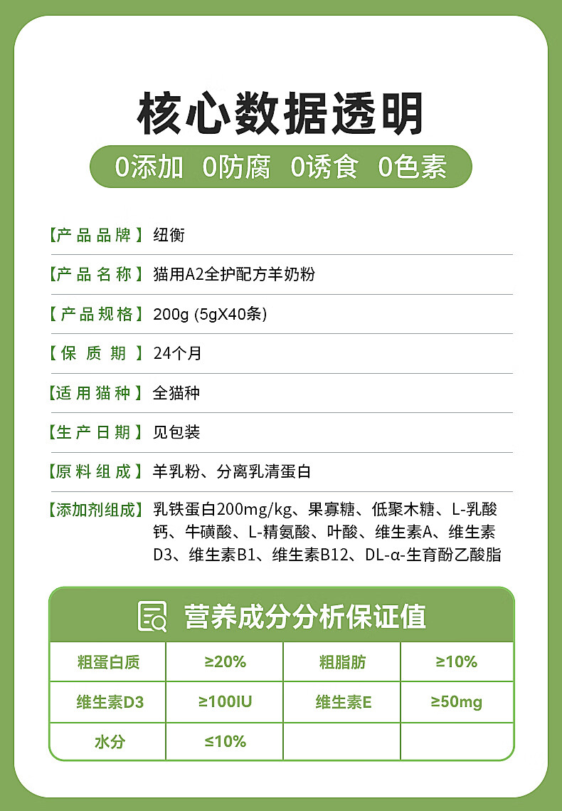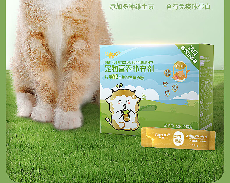 纽衡(NiuhenG)0乳糖宠物羊奶粉乳铁蛋白幼猫成猫幼犬成犬猫咪专用孕猫新生奶粉 猫咪专用羊奶粉200g【5g*40条】