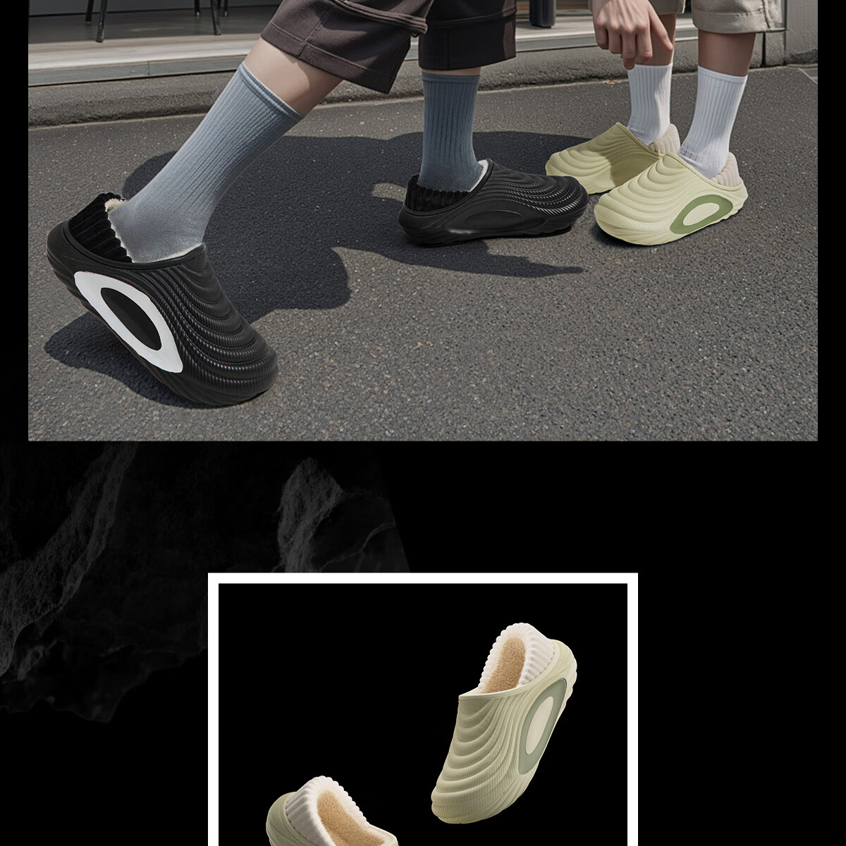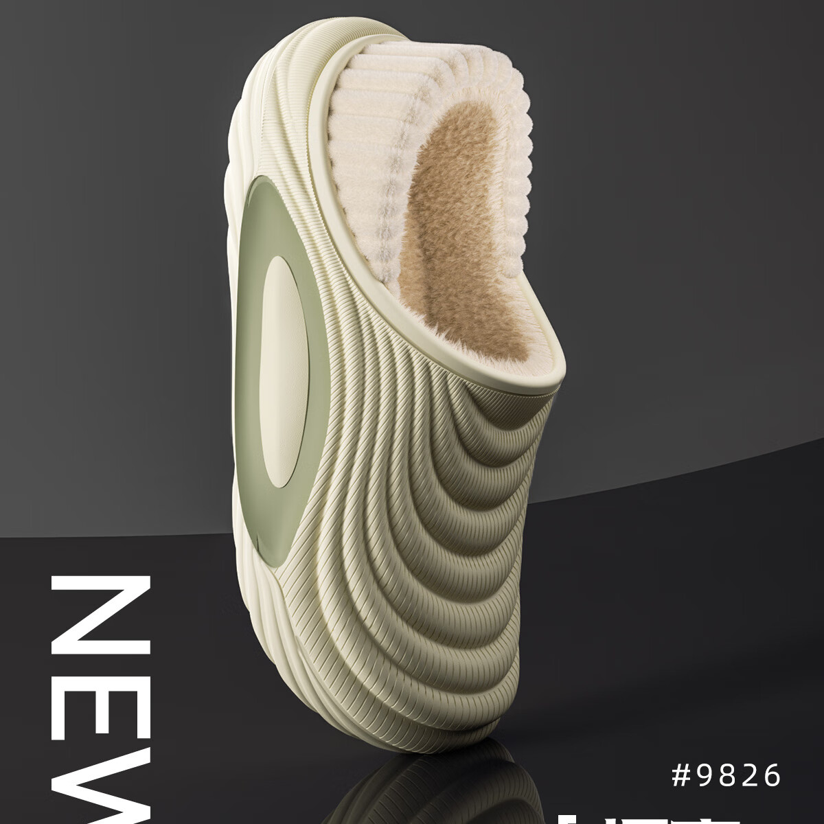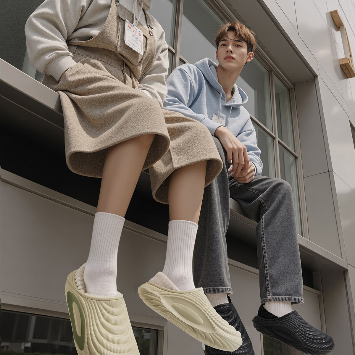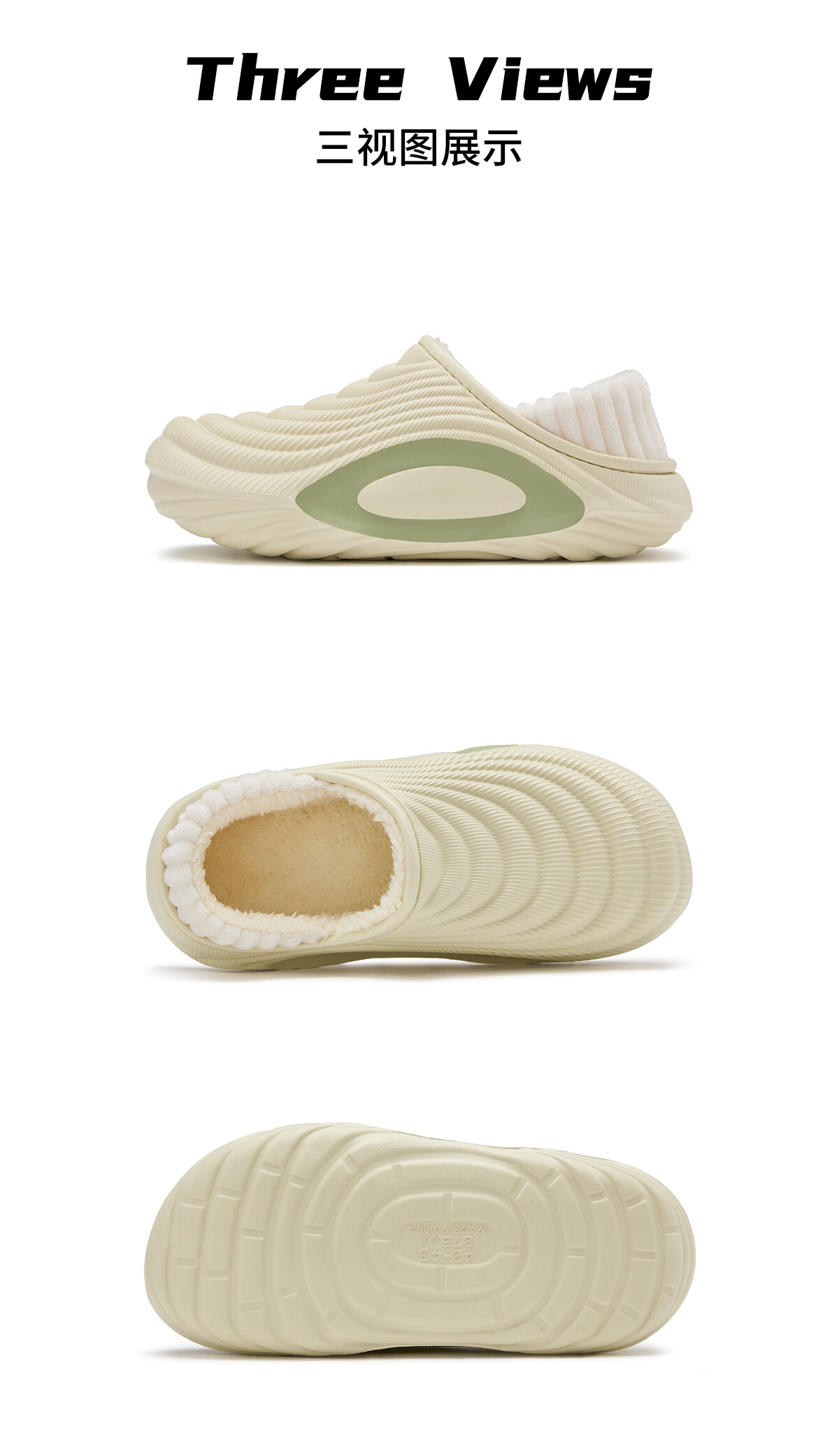 洁丽雅防水棉拖鞋男士秋冬季外穿防滑防臭居家室内加绒保暖全包跟棉鞋女 月光白 【防水保暖 一鞋两穿】 42-43 【标准码】