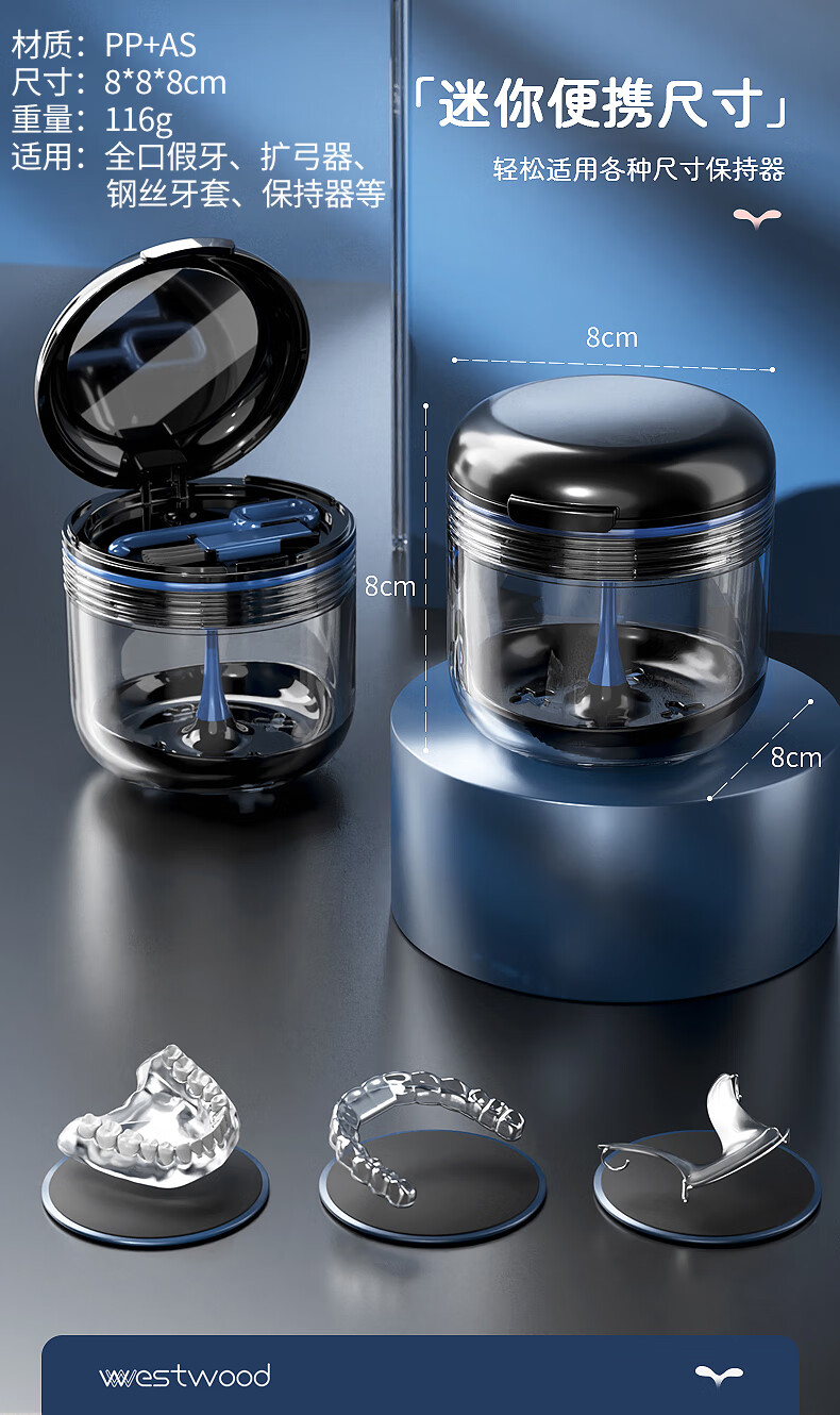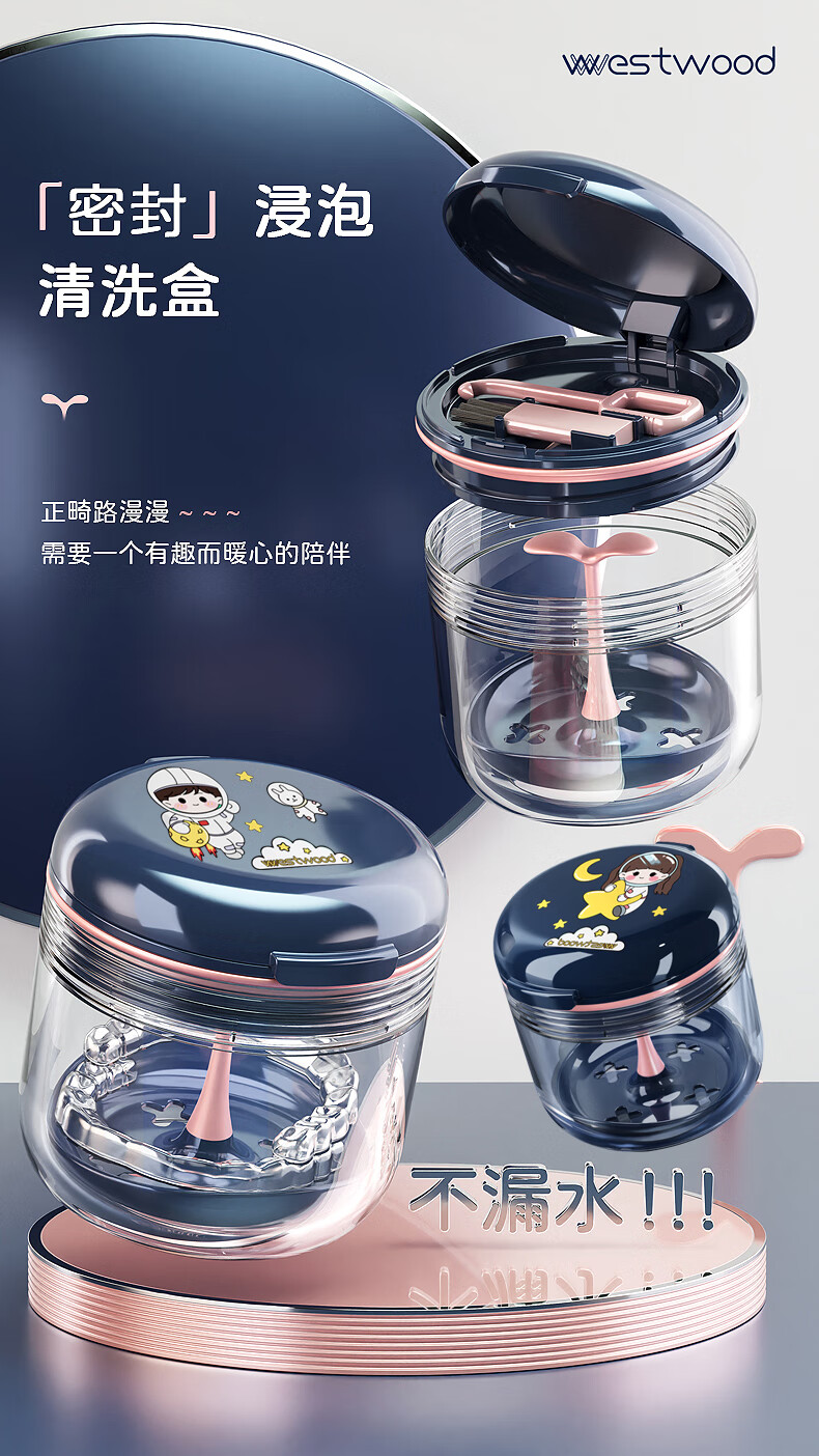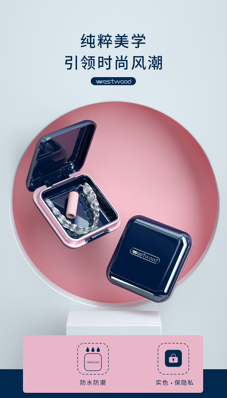 westwood牙套盒隐形牙套收纳盒保持器便携式收纳盒隐适美正畸矫正器清洁盒 带镜子牙套盒-宝石蓝+小刷