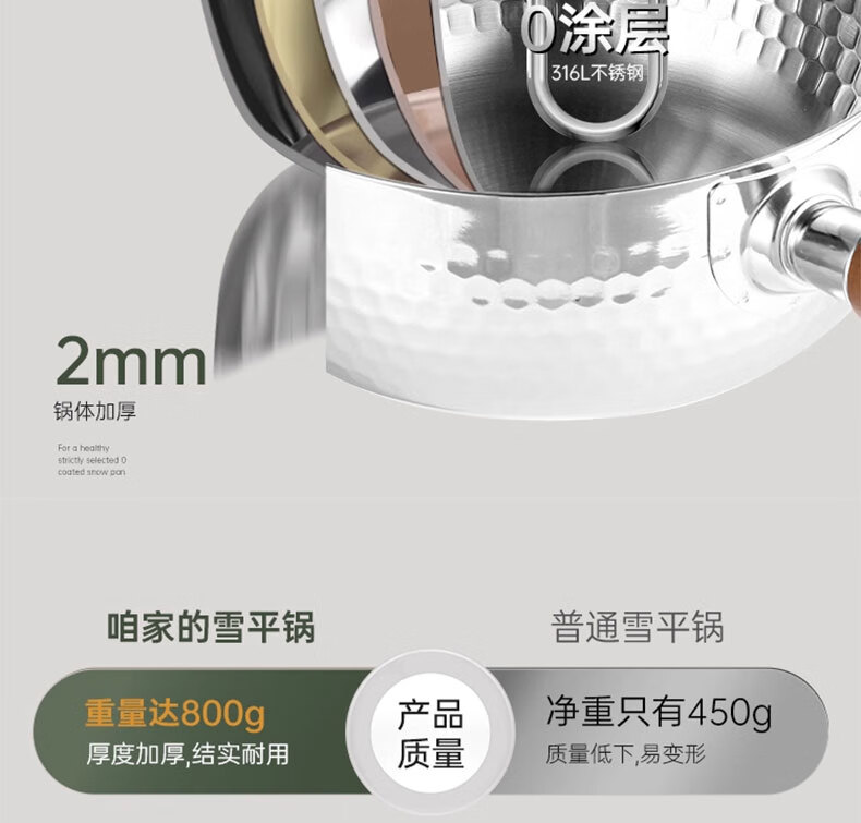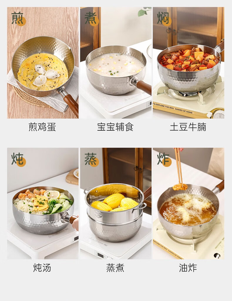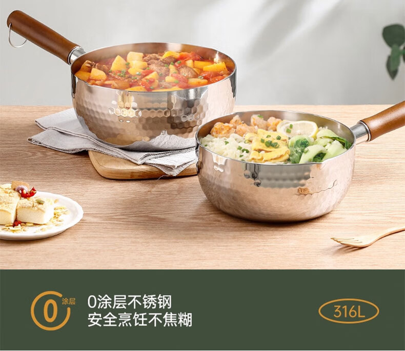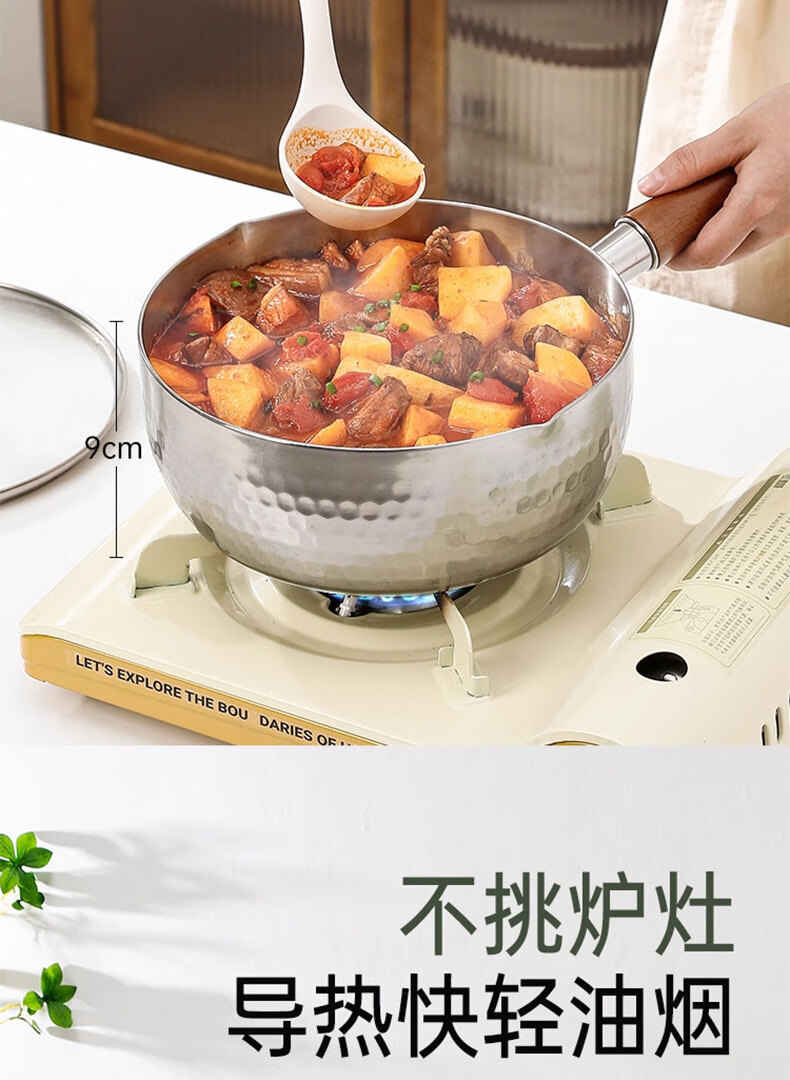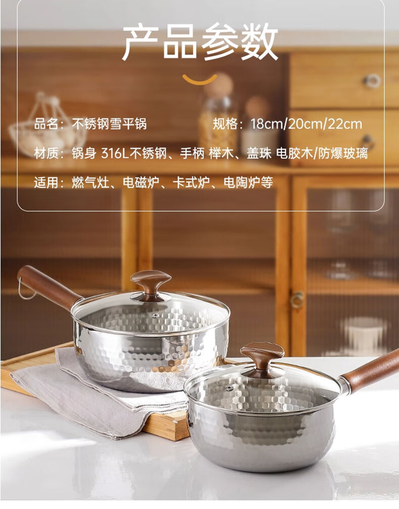吱凡日本雪平锅无涂层316l小奶锅一人食小锅不锈钢家用宝宝泡面锅汤锅 【20CM】带盖-316L不锈钢【0涂层】 20cm