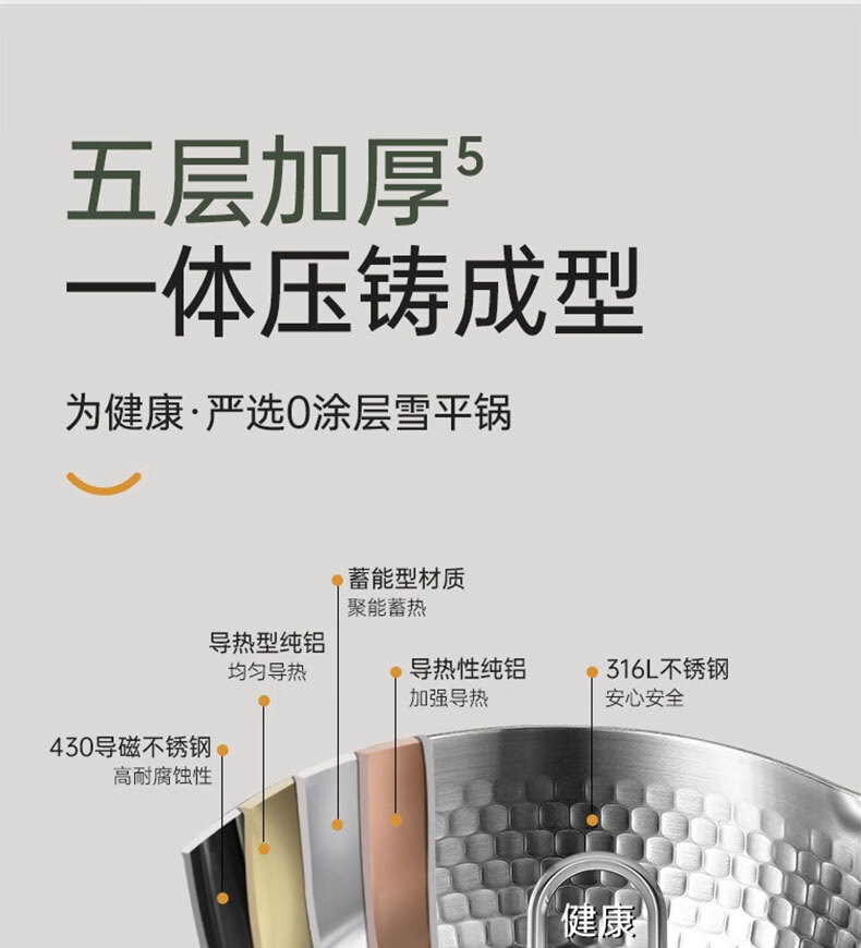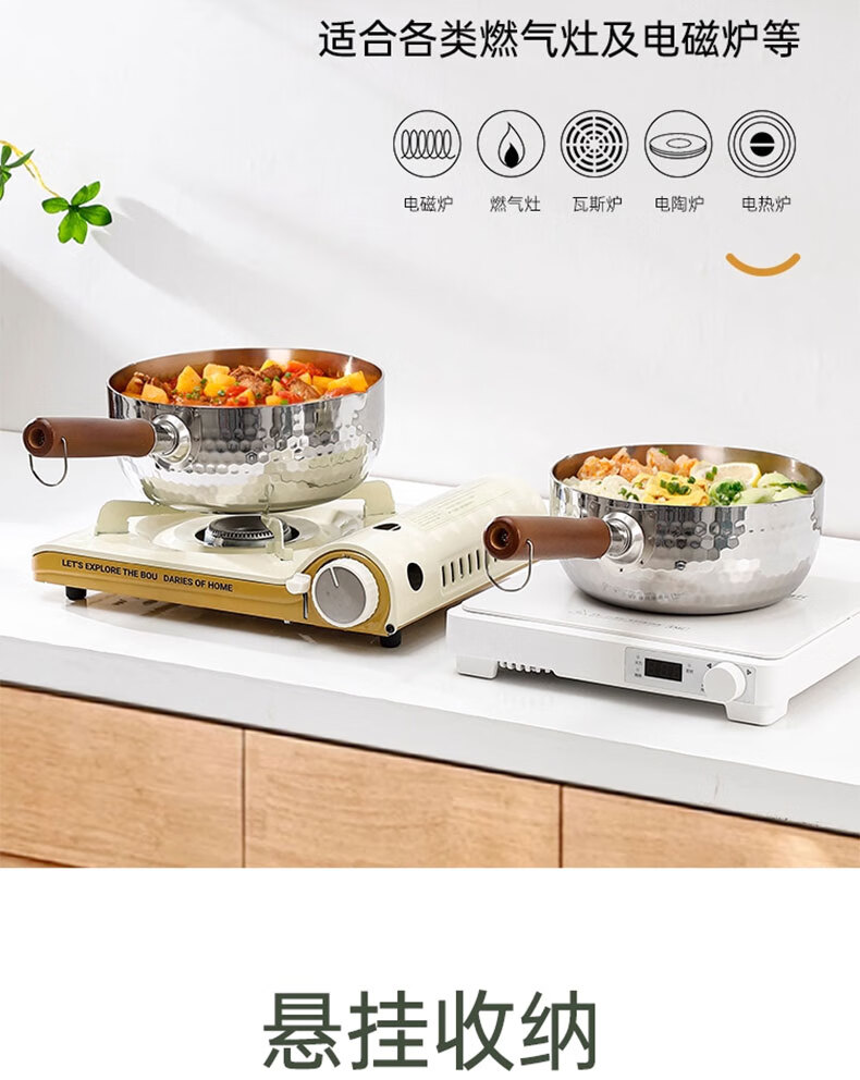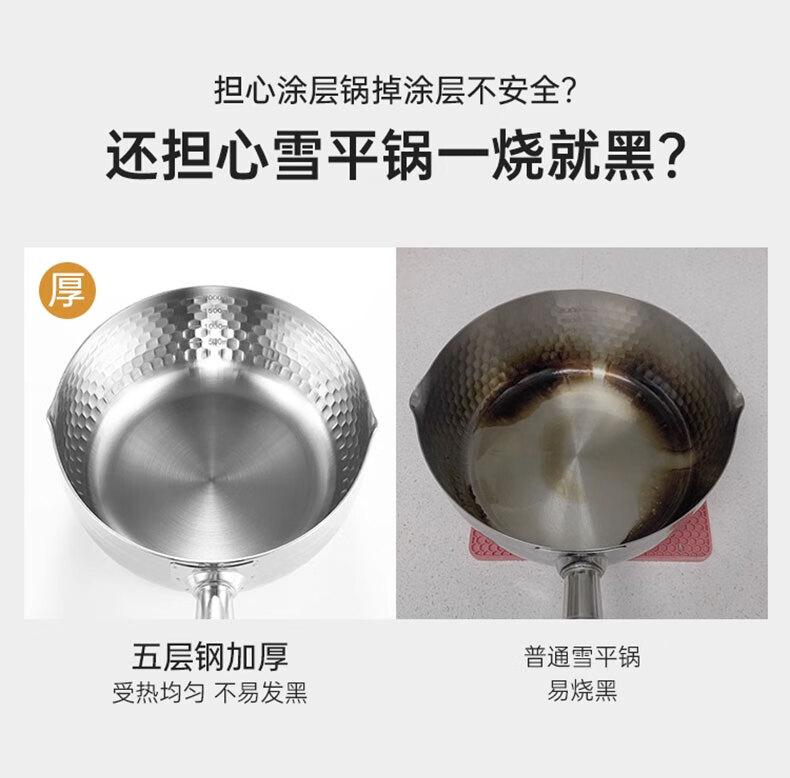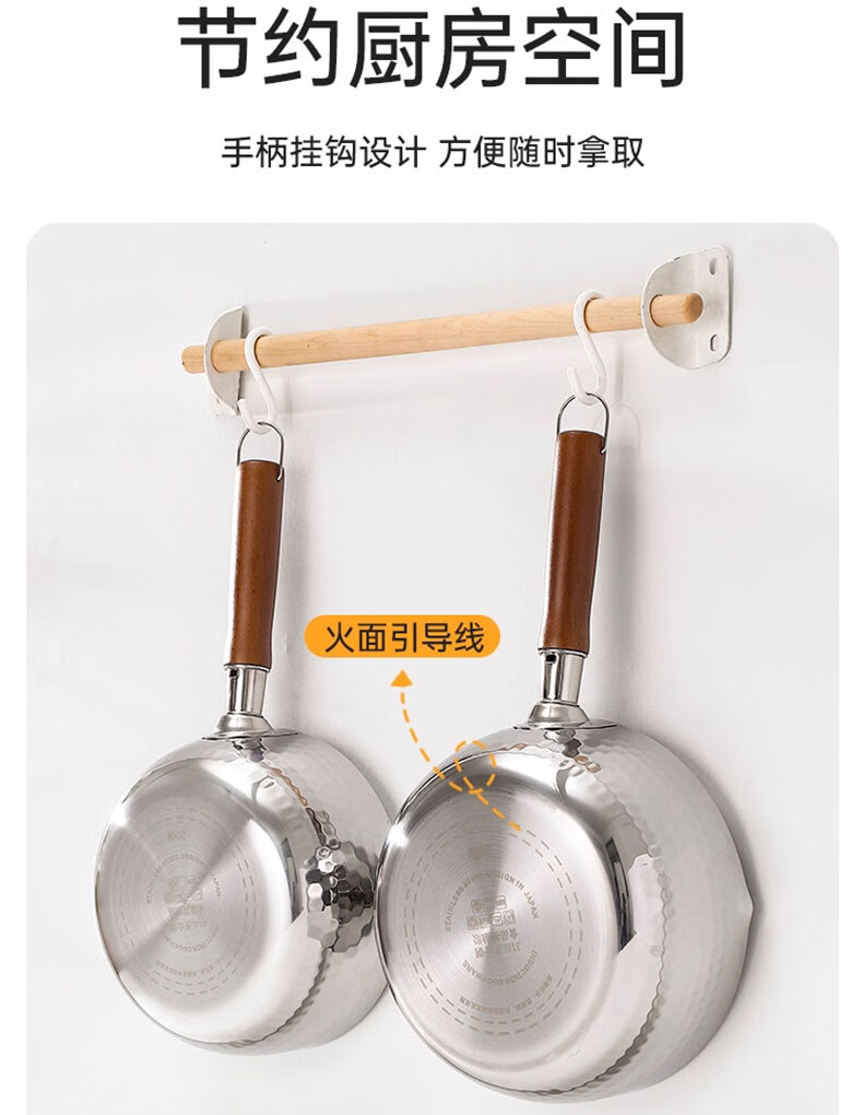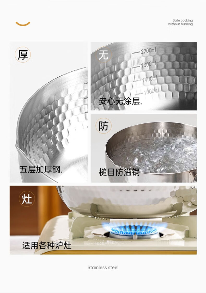 吱凡日本雪平锅无涂层316l小奶锅一人食小锅不锈钢家用宝宝泡面锅汤锅 【20CM】带盖-316L不锈钢【0涂层】 20cm