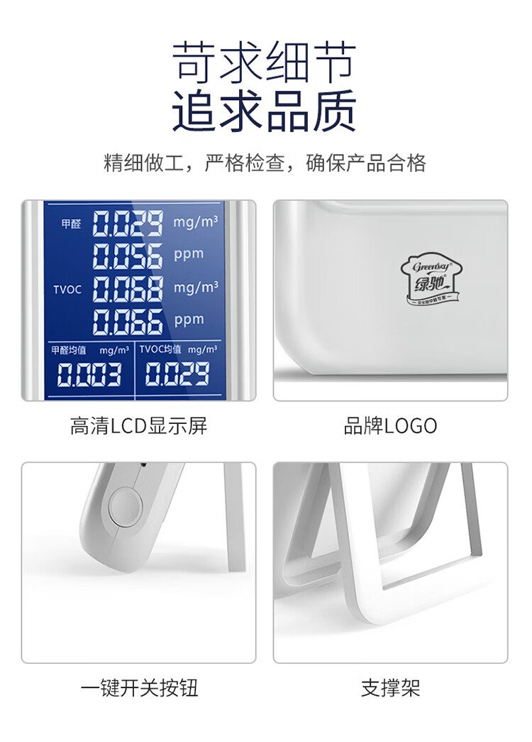 绿驰 测甲醛检测仪器高精度 家用空气质量检测仪温湿度计非苯测试盒纸