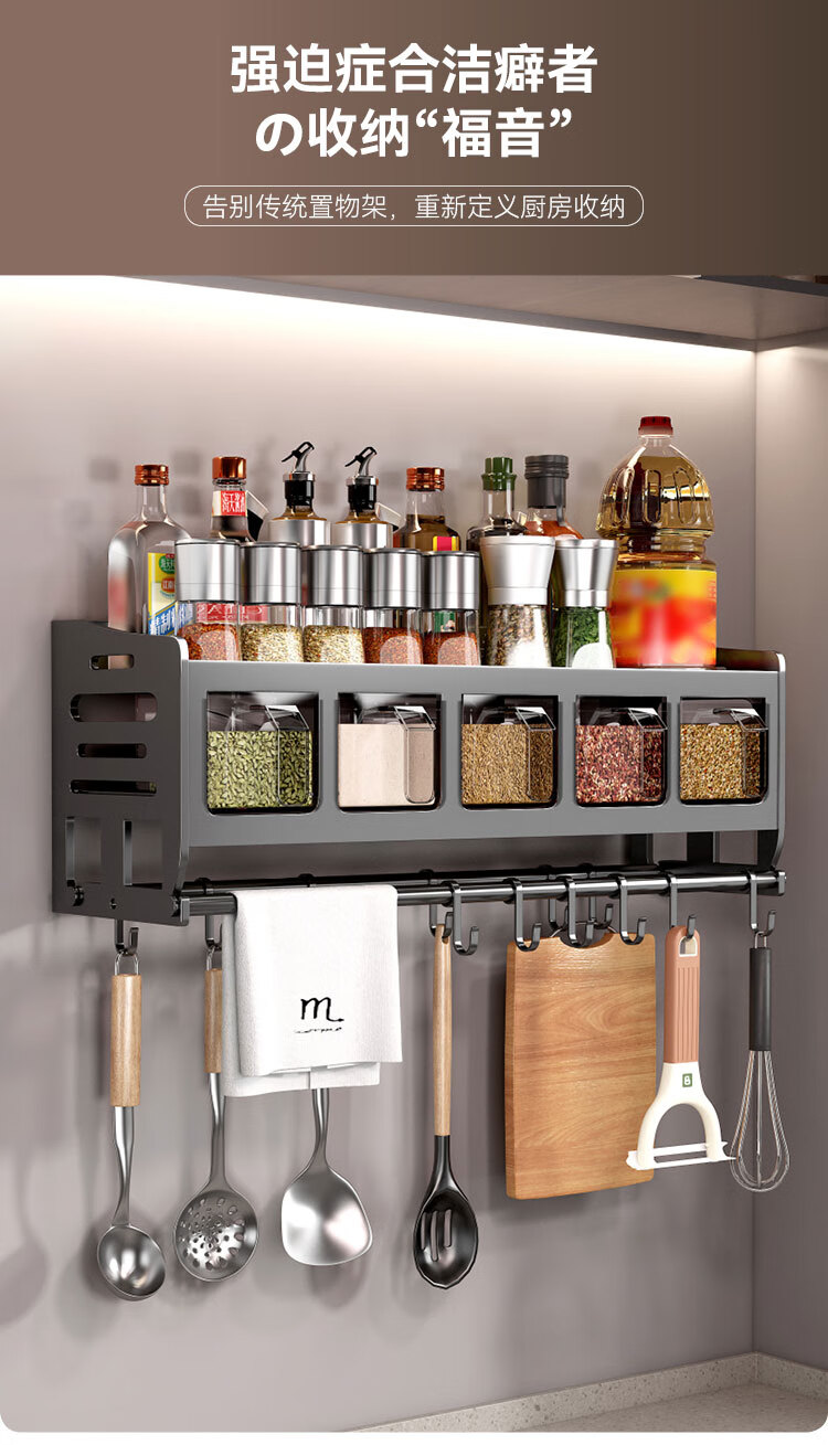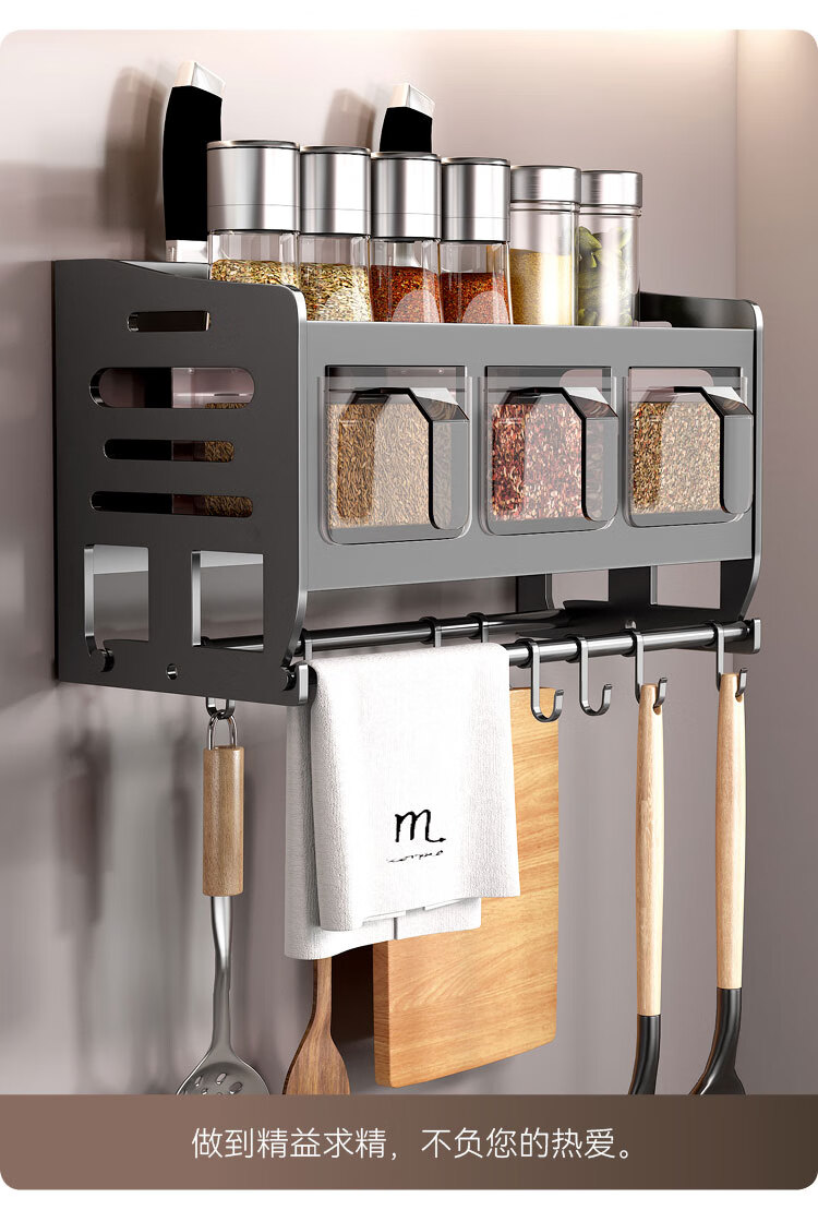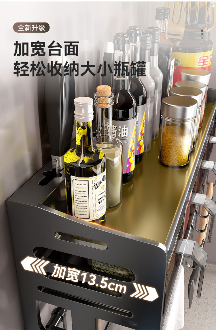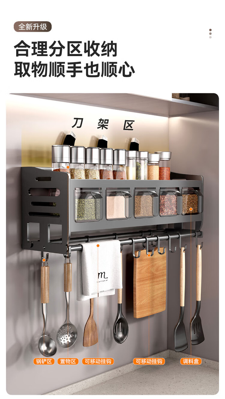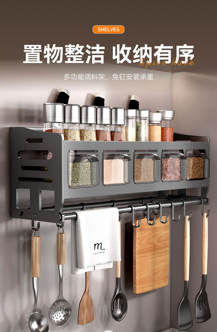 居厨厨厨房置物架多功能厨房架置物架家用厨房调料置物架免打孔刀架 【两件套】50cm+5盒+2杆12钩
