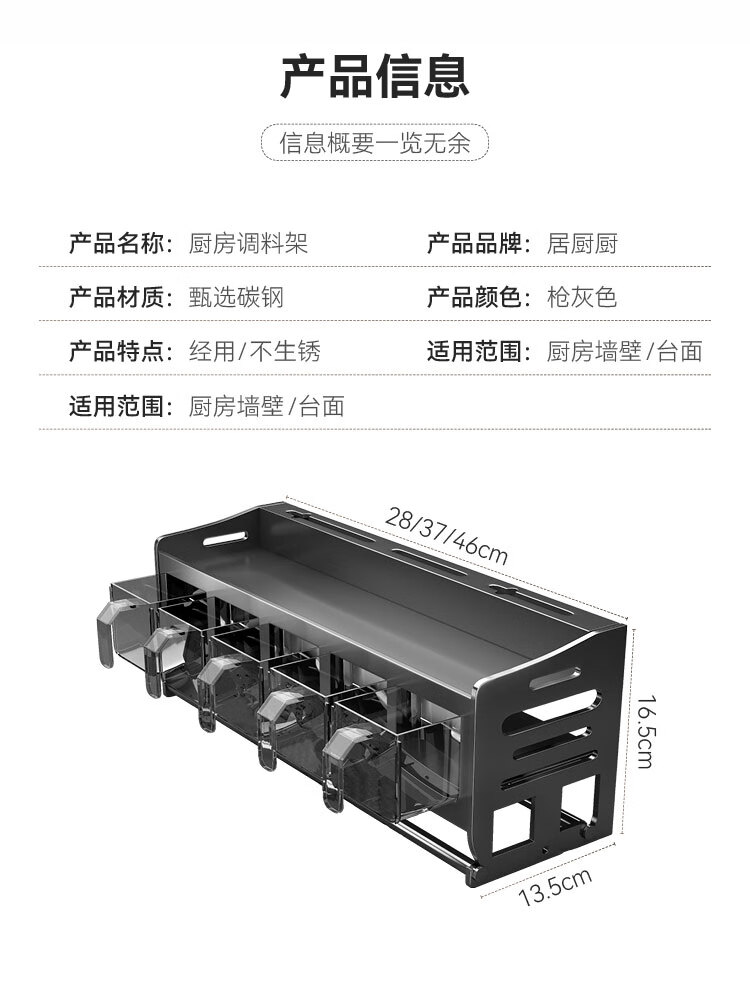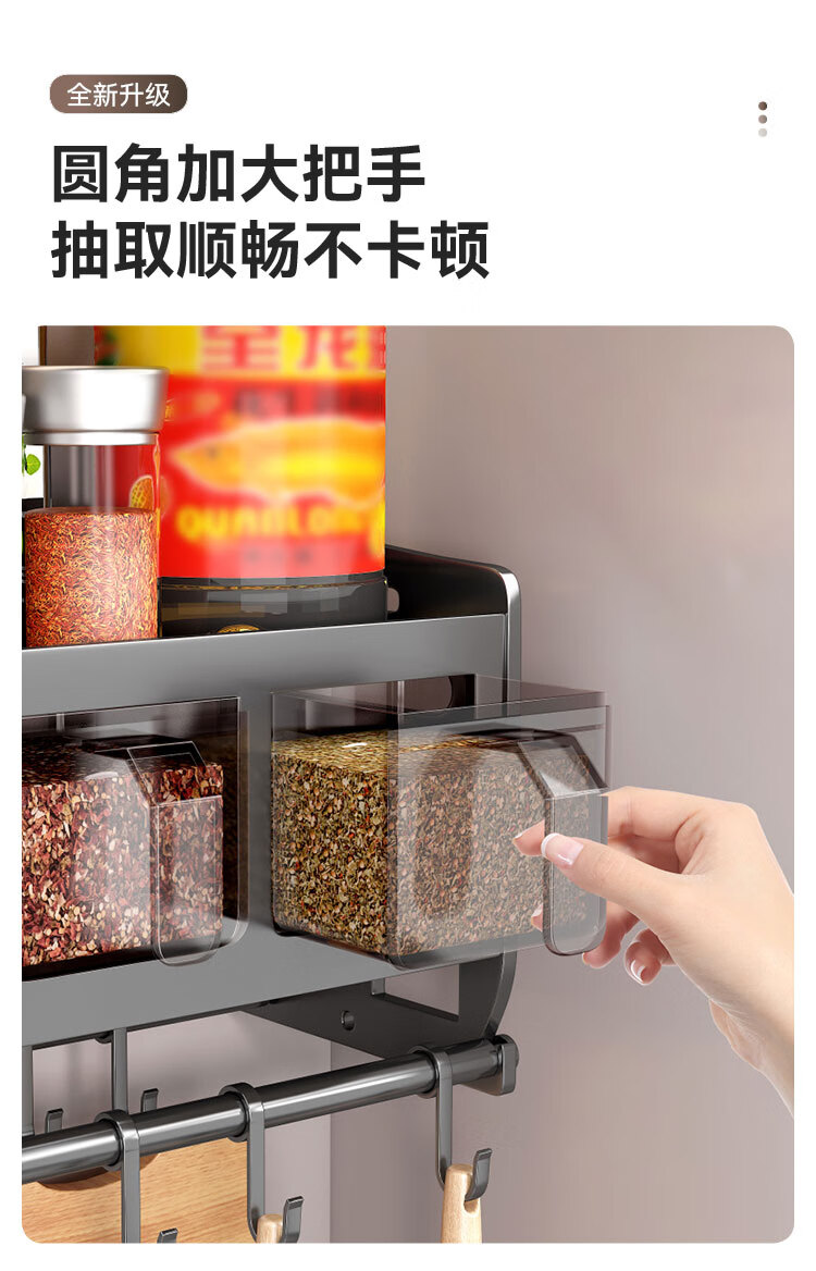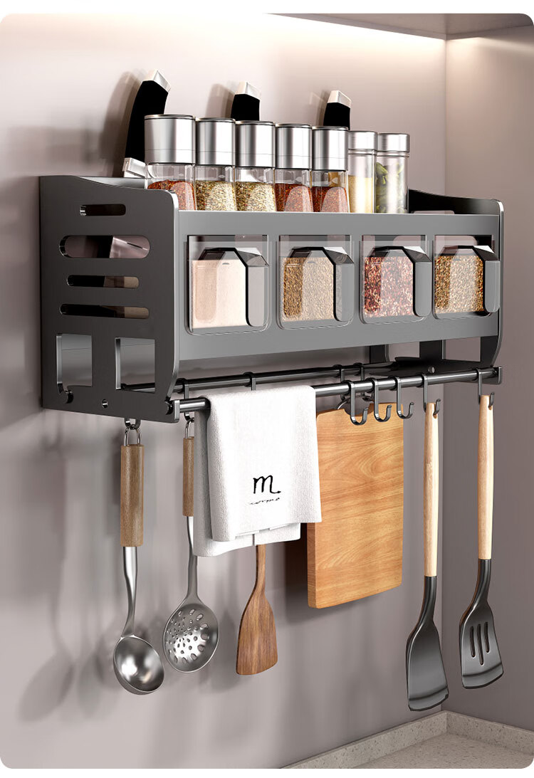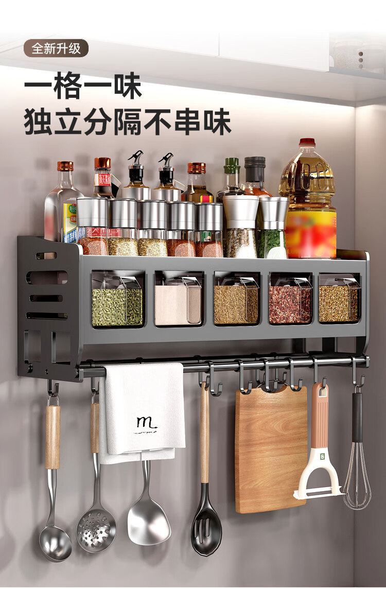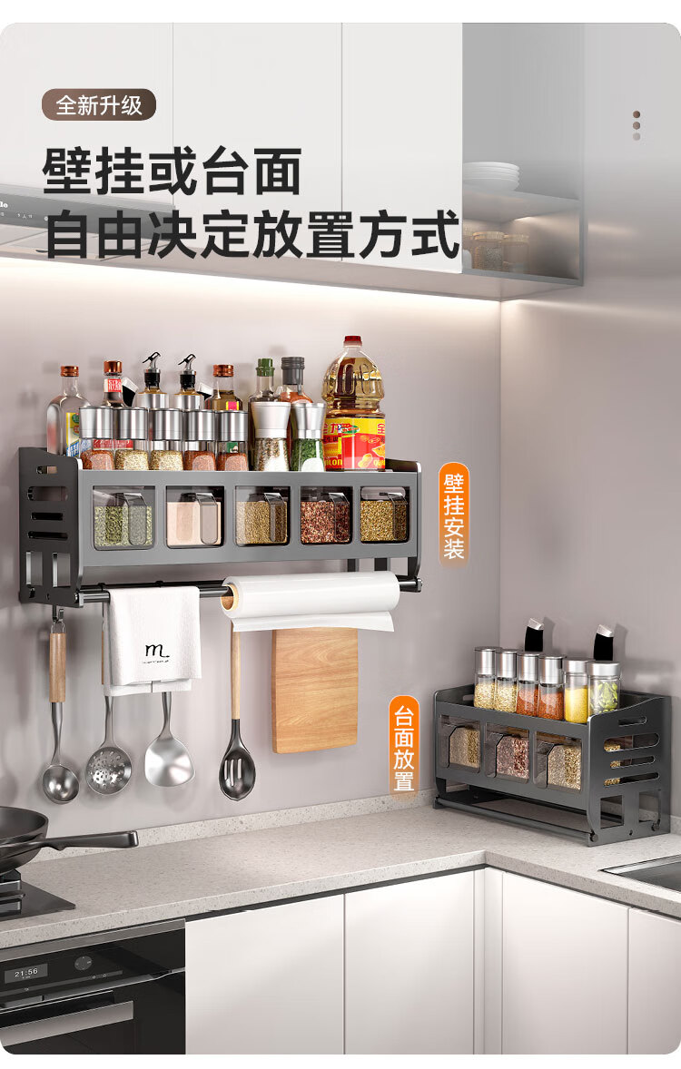 居厨厨厨房置物架多功能厨房架置物架家用厨房调料置物架免打孔刀架 【两件套】50cm+5盒+2杆12钩