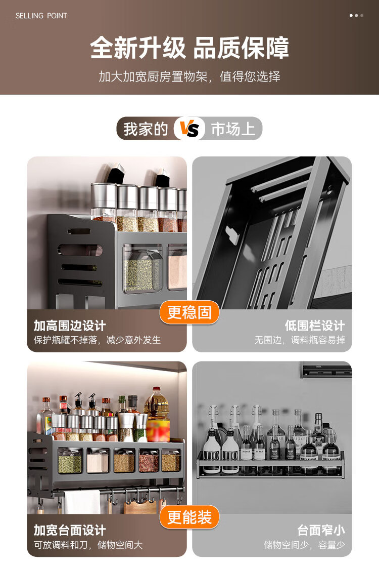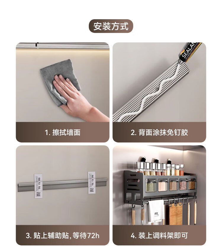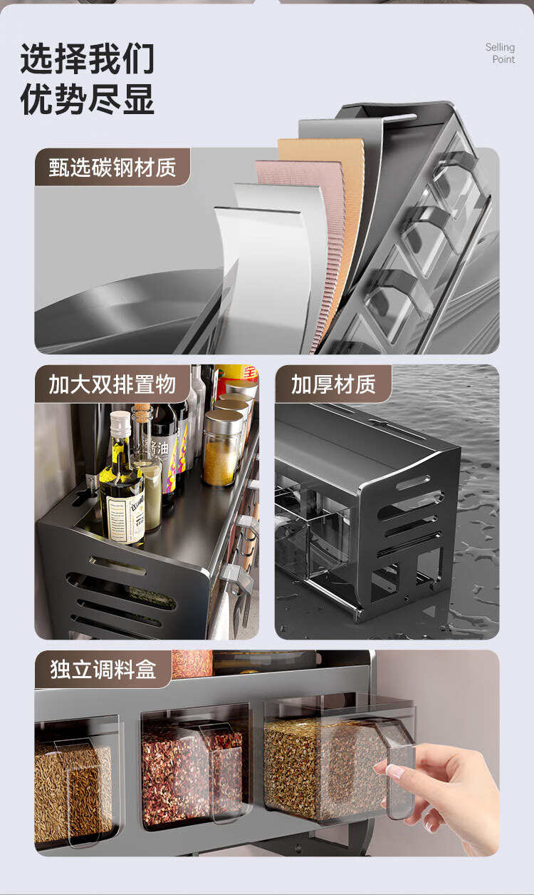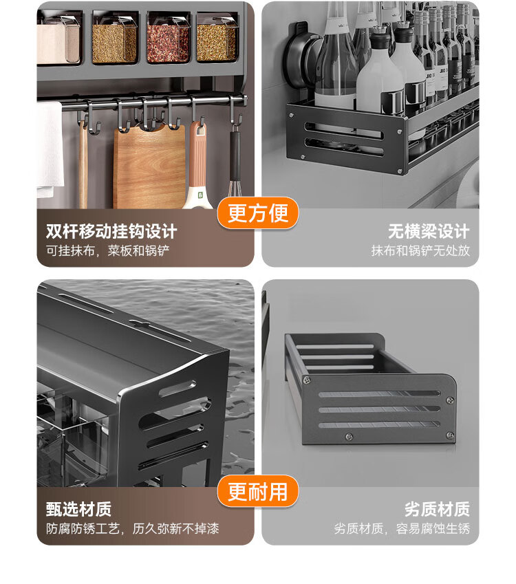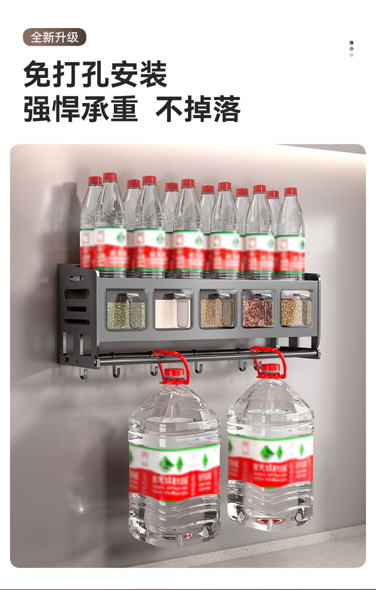 居厨厨厨房置物架多功能厨房架置物架家用厨房调料置物架免打孔刀架 【两件套】50cm+5盒+2杆12钩