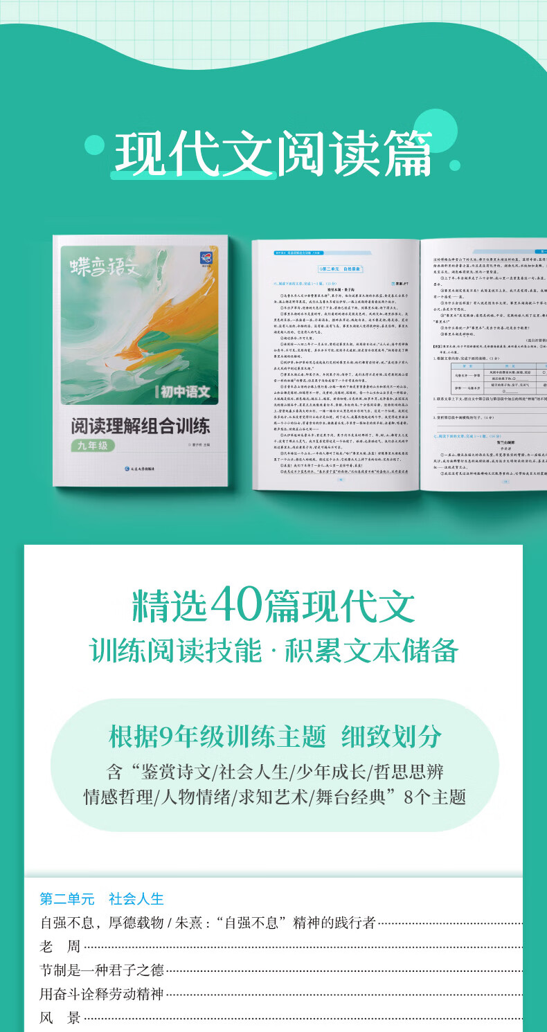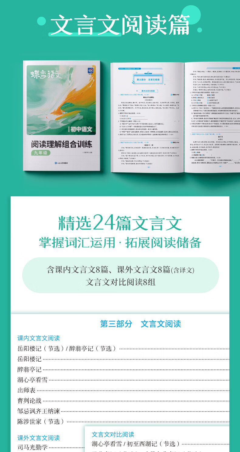 蝶变学园2025秋 九年级语文阅读理解专项训练 初一语文三合一阅读理解 古诗文 现代文 文言文 记叙文 说明文 议论文 非连续性文本专项训练 全国通用 九年级文言文全解与训练