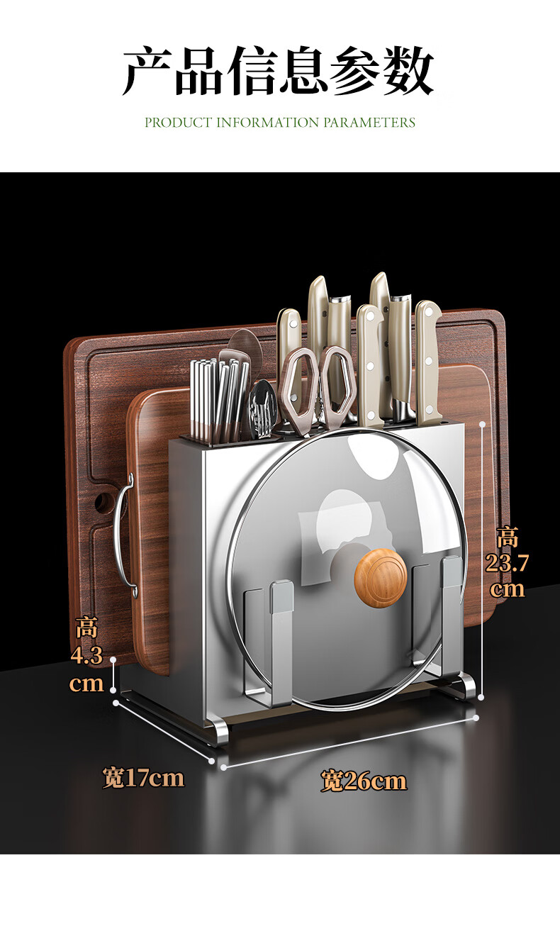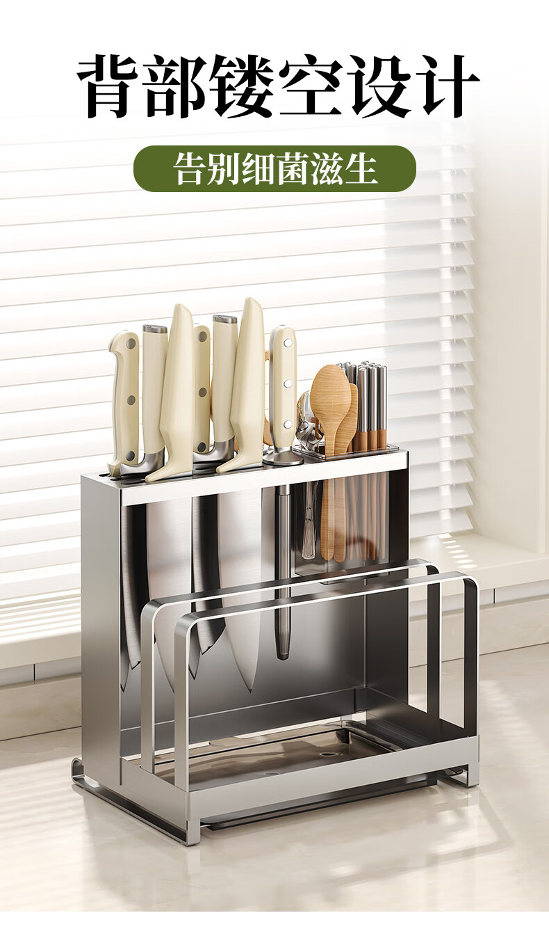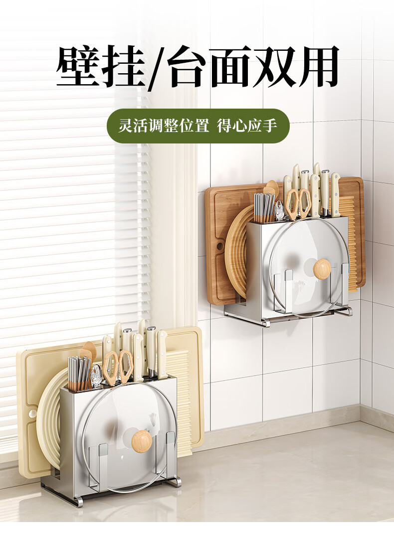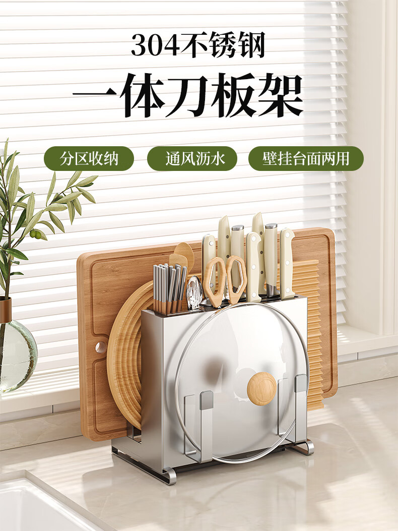 炊大皇304不锈钢厨房刀架置物架放菜刀筷子锅盖菜板架多功能刀具收纳架 A1【304枪灰色】台面款