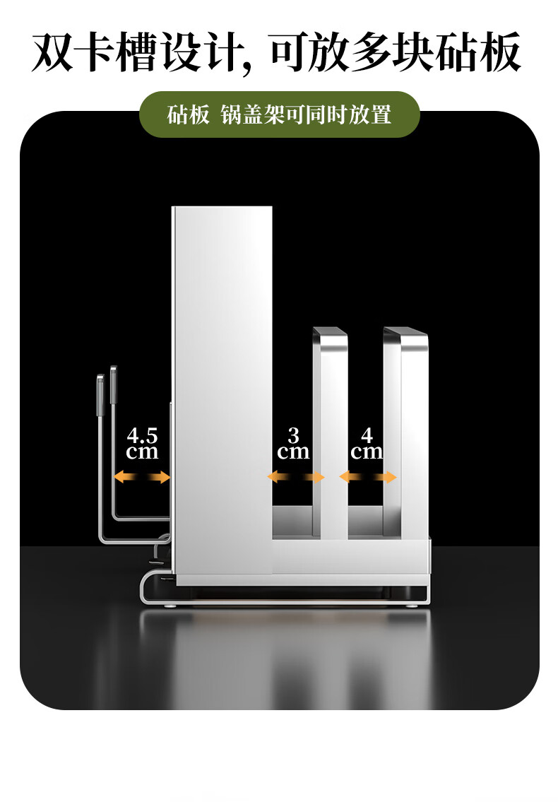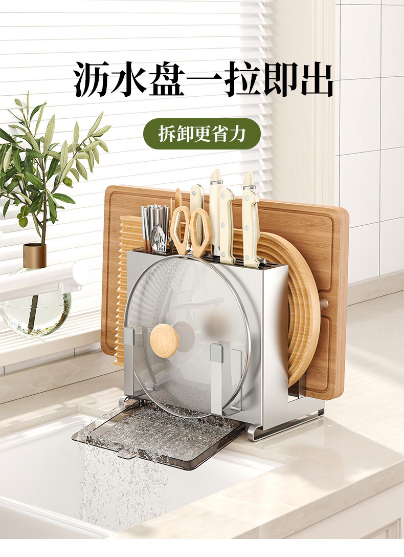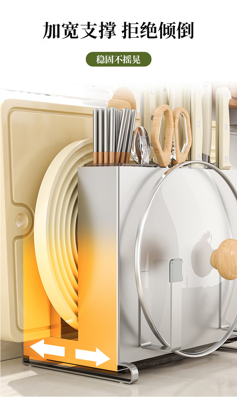 炊大皇304不锈钢厨房刀架置物架放菜刀筷子锅盖菜板架多功能刀具收纳架 A1【304枪灰色】台面款