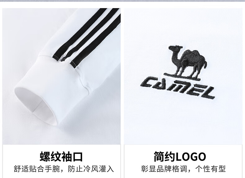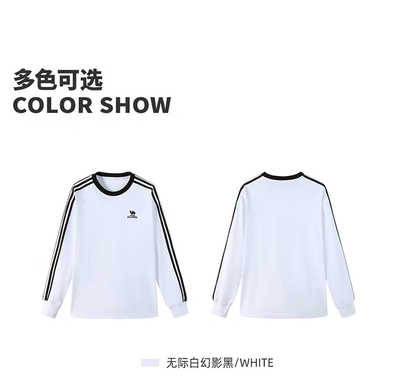 骆驼(CAMEL)纯棉t神圆领长袖T恤男女款休闲打底衫 C35BAXLN056D 无际白黑 M