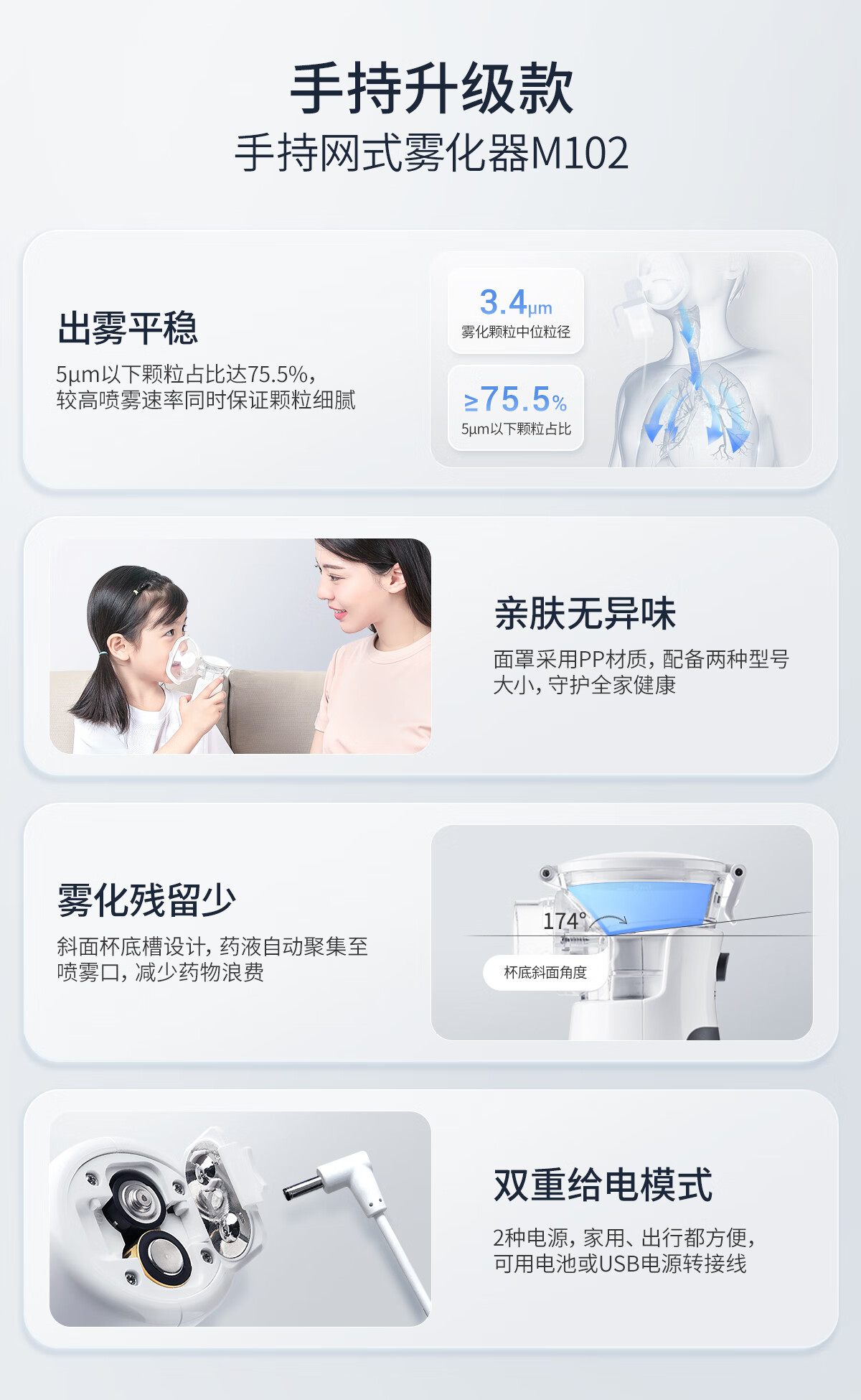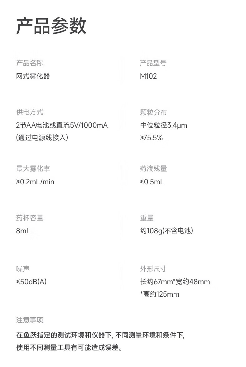 鱼跃(Yuwell)手持雾化器 儿童成人老人家用轻音低噪便携式医用网式雾化机M102