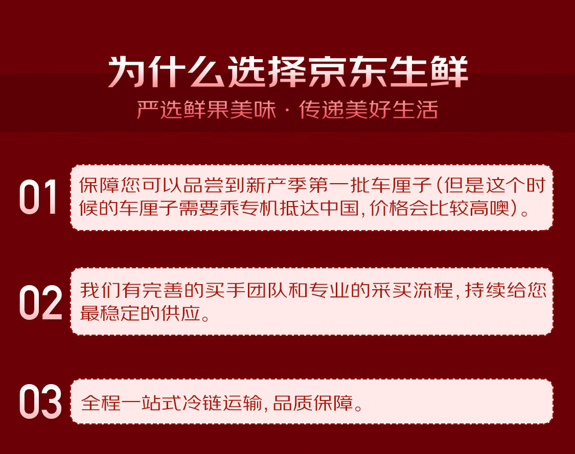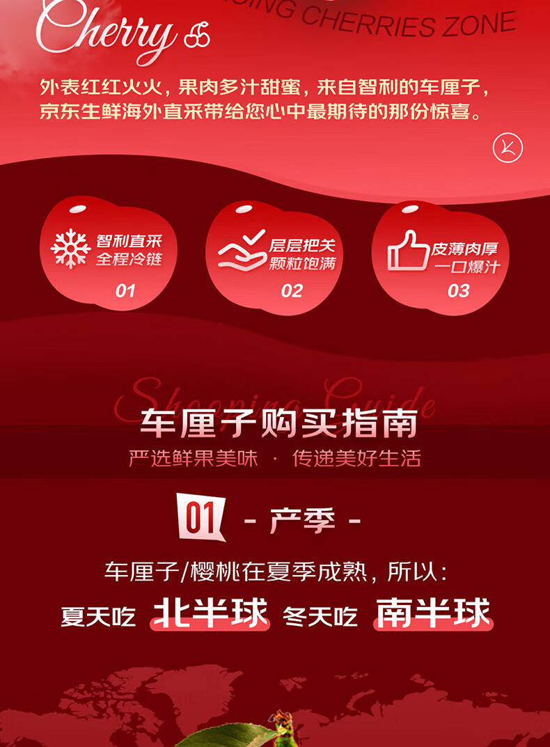 京溢鲜智利车厘子樱桃4J级【JD/顺丰-多地次日达】新鲜进口水果送礼物盒 5斤(净重) 蕞划算【80%人选择】 巨无霸3J 单果30-32mm