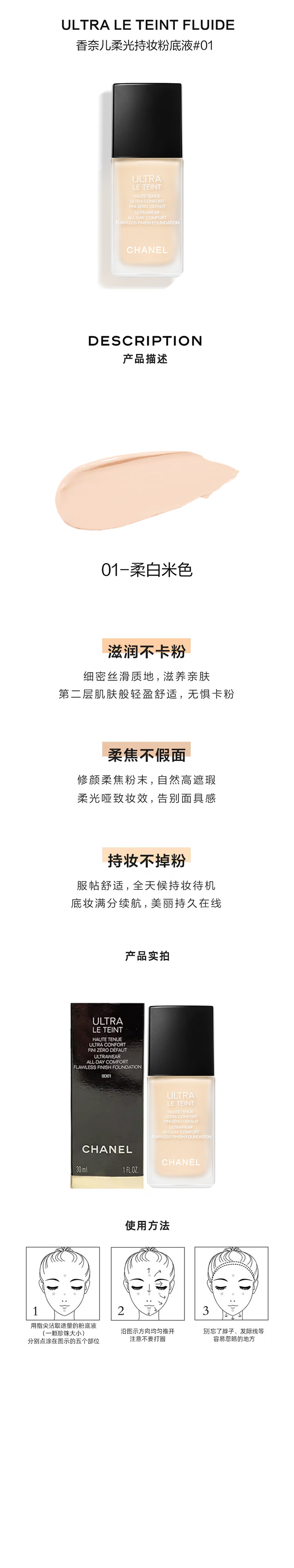 香奈儿(Chanel)柔光持妆粉底液30ml(BD01)小磨方持久遮瑕防水防汗控油圣诞节礼物