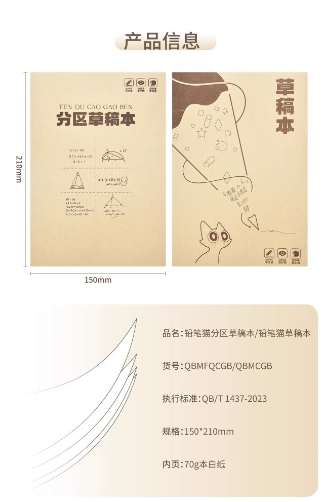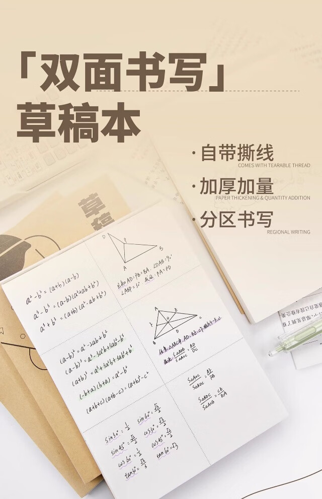 【80页巨能写】草稿本 分区草稿纸大学生用空白高中生演算纸加厚数学初中生打草纸白纸草稿 A5空白草稿本/1本(每本80页)
