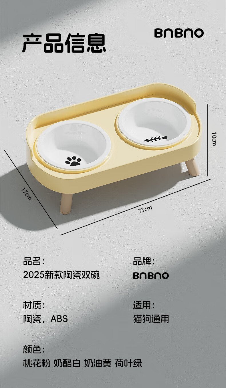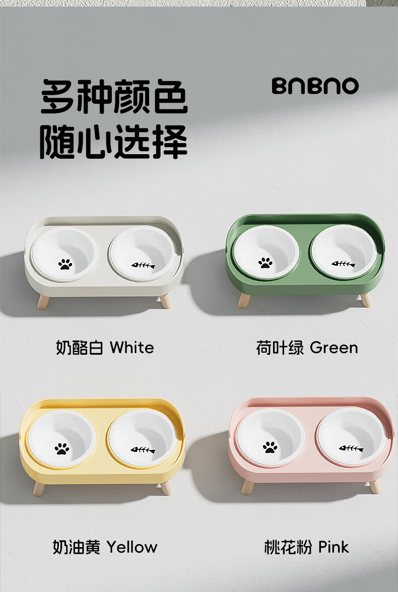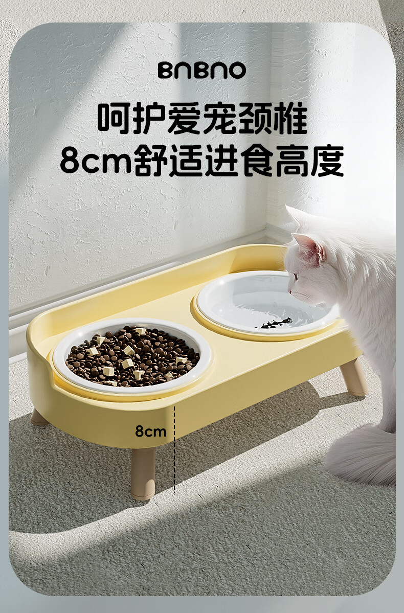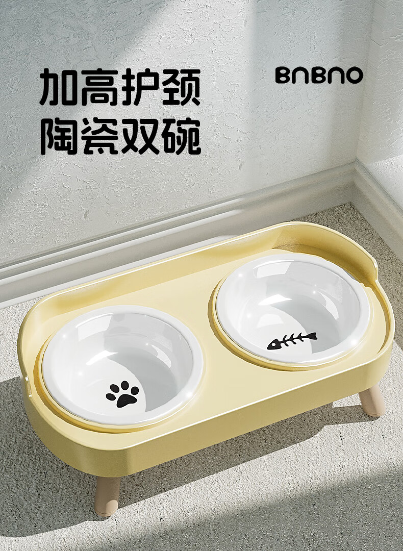 BNBNO猫碗狗碗陶瓷猫狗食盆猫咪饭碗喝水碗粮碗双碗不易打翻宠物碗护颈