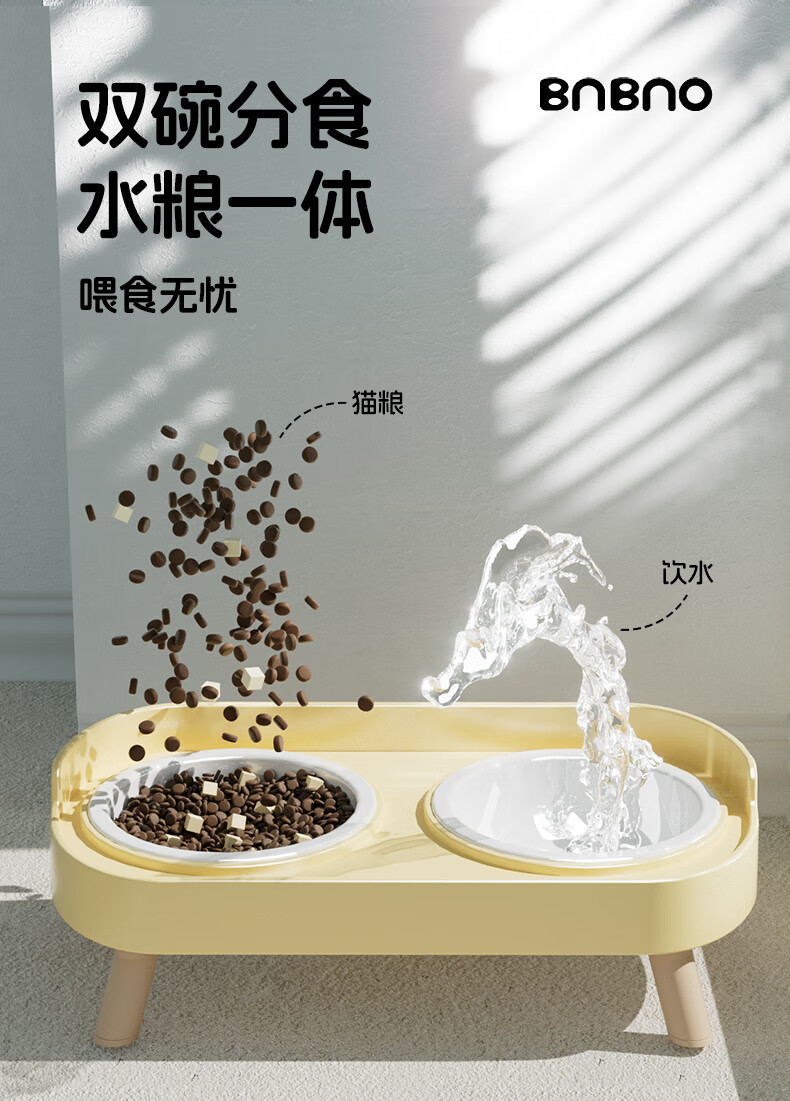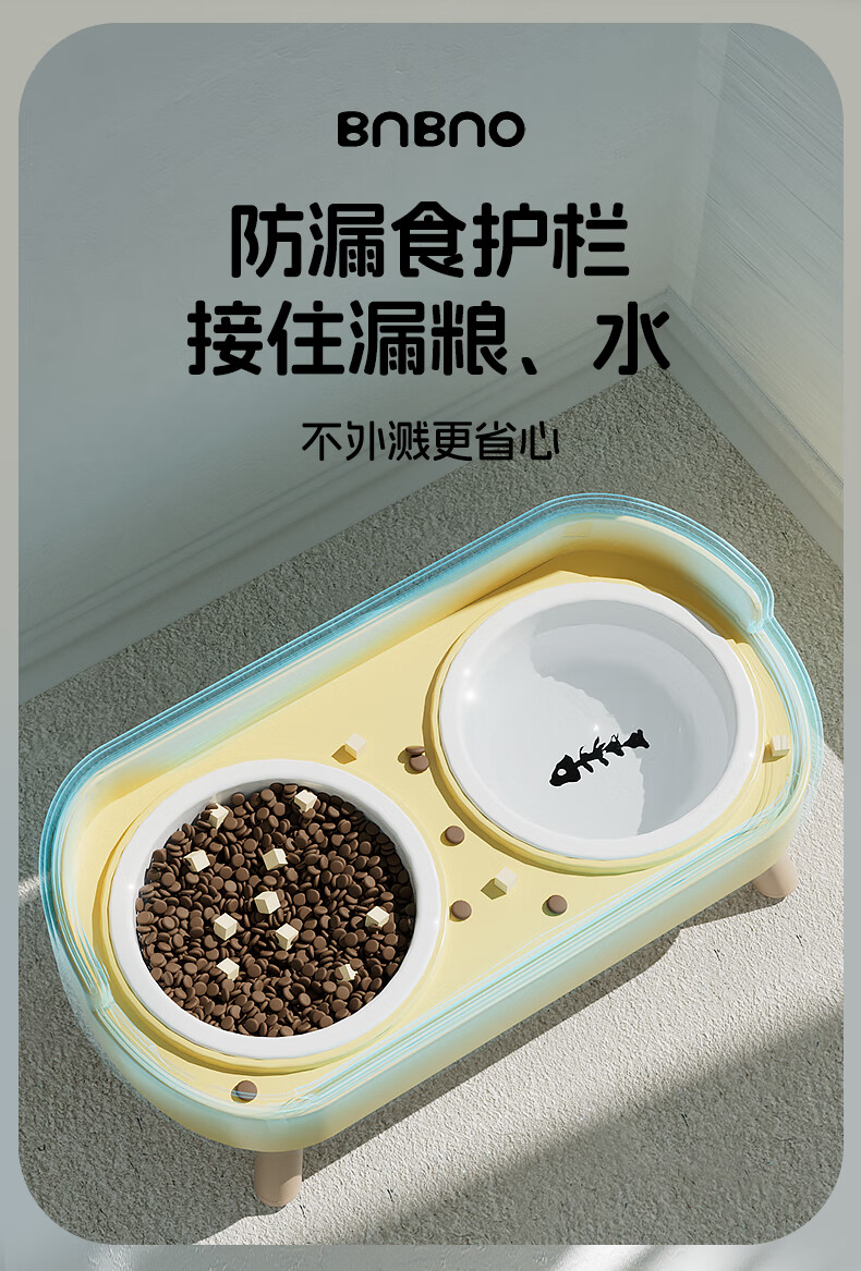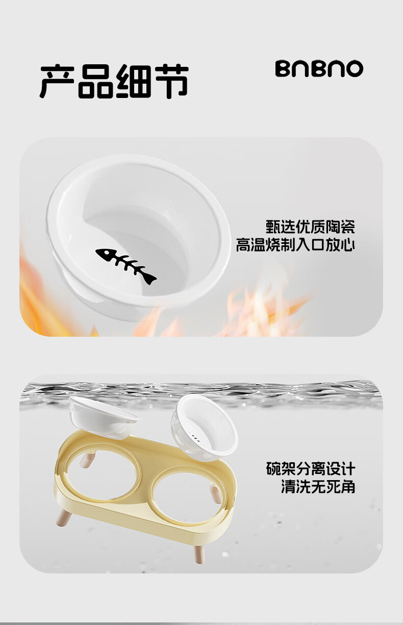 BNBNO猫碗狗碗陶瓷猫狗食盆猫咪饭碗喝水碗粮碗双碗不易打翻宠物碗护颈