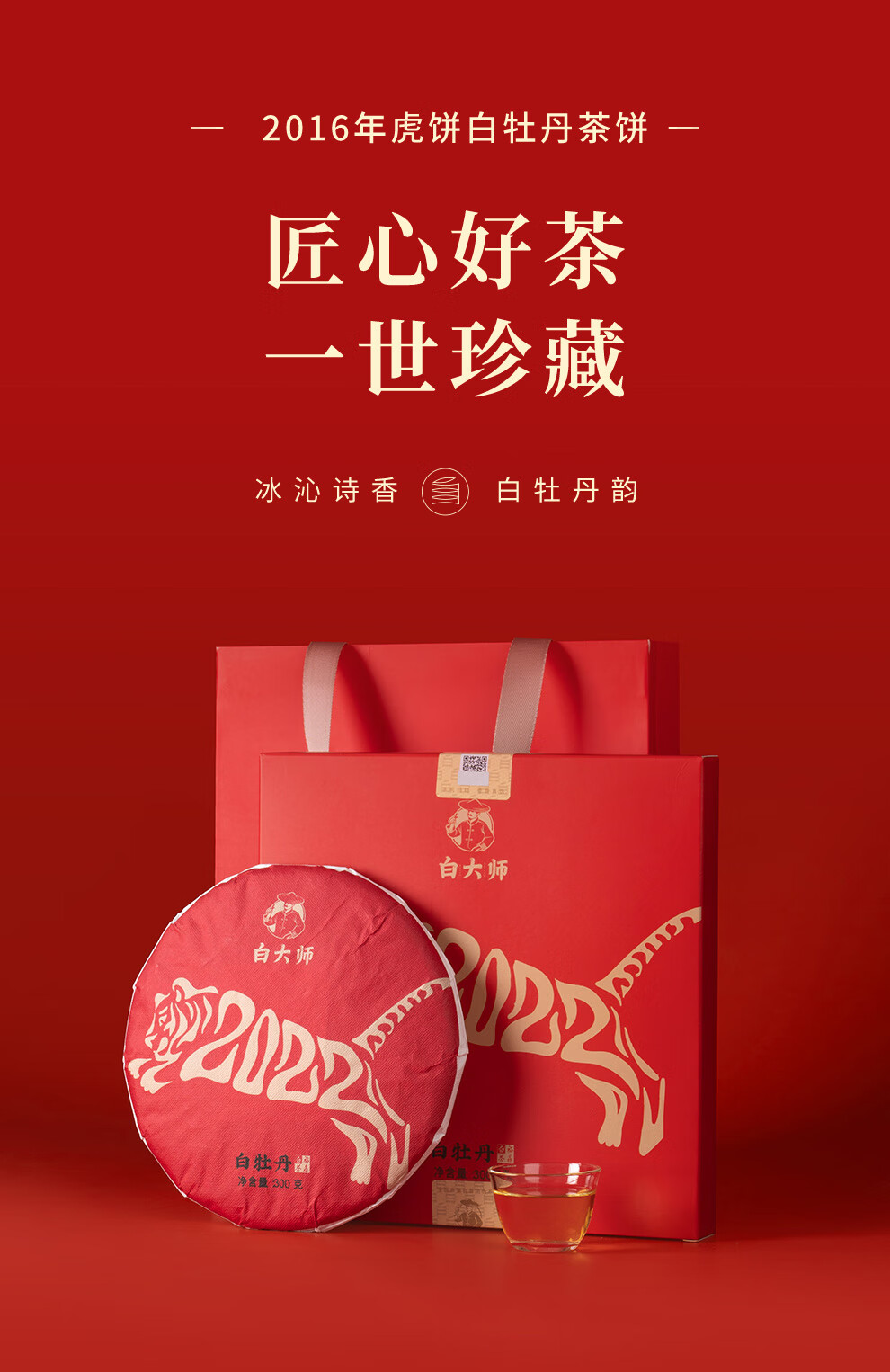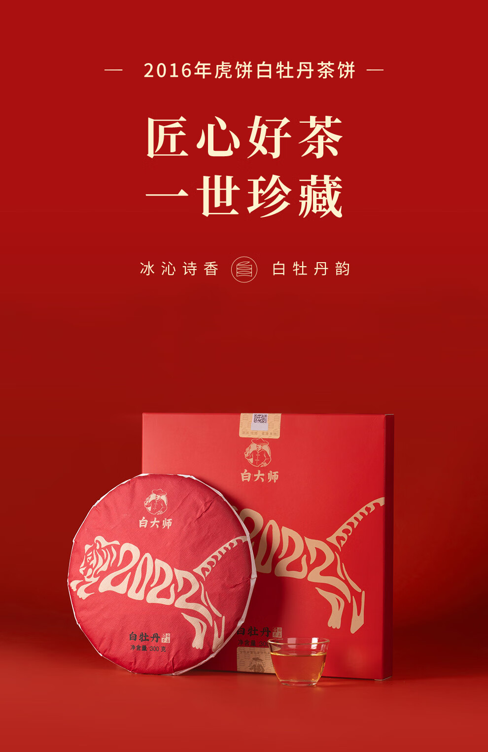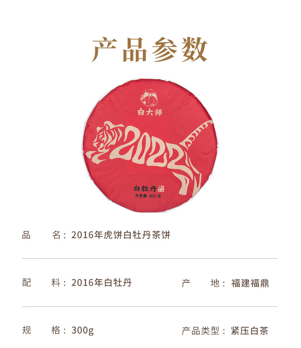 白大师茶叶白茶福鼎白茶2016年白牡丹纪念虎饼300g源头直发