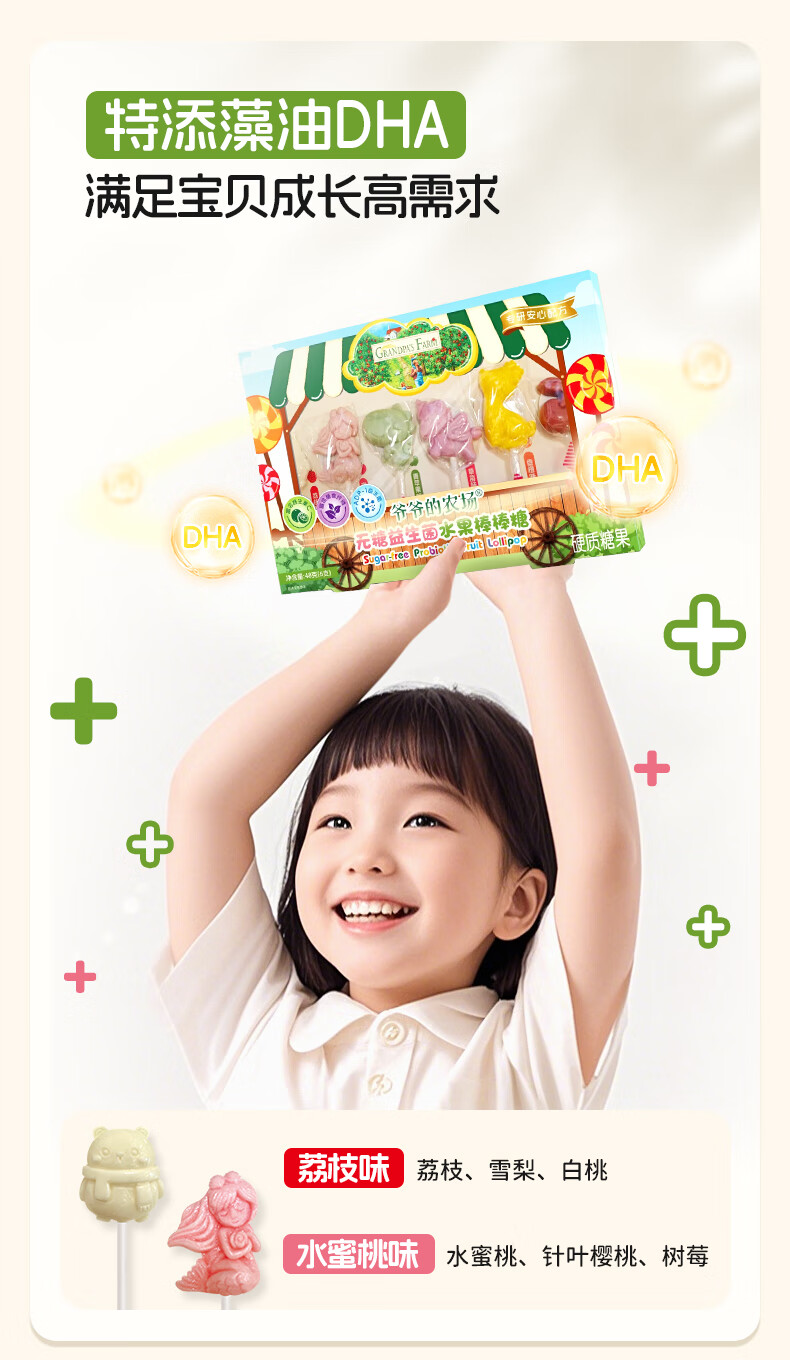 爷爷的农场儿童零食 无糖棒棒糖宝宝解馋糖果 辅食零食儿童食品 【新品】无糖棒棒糖48g
