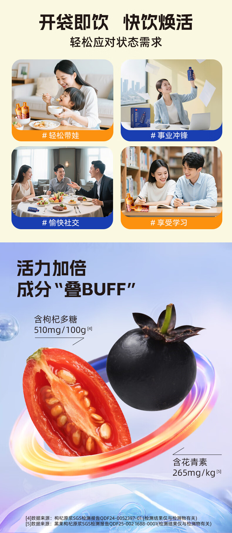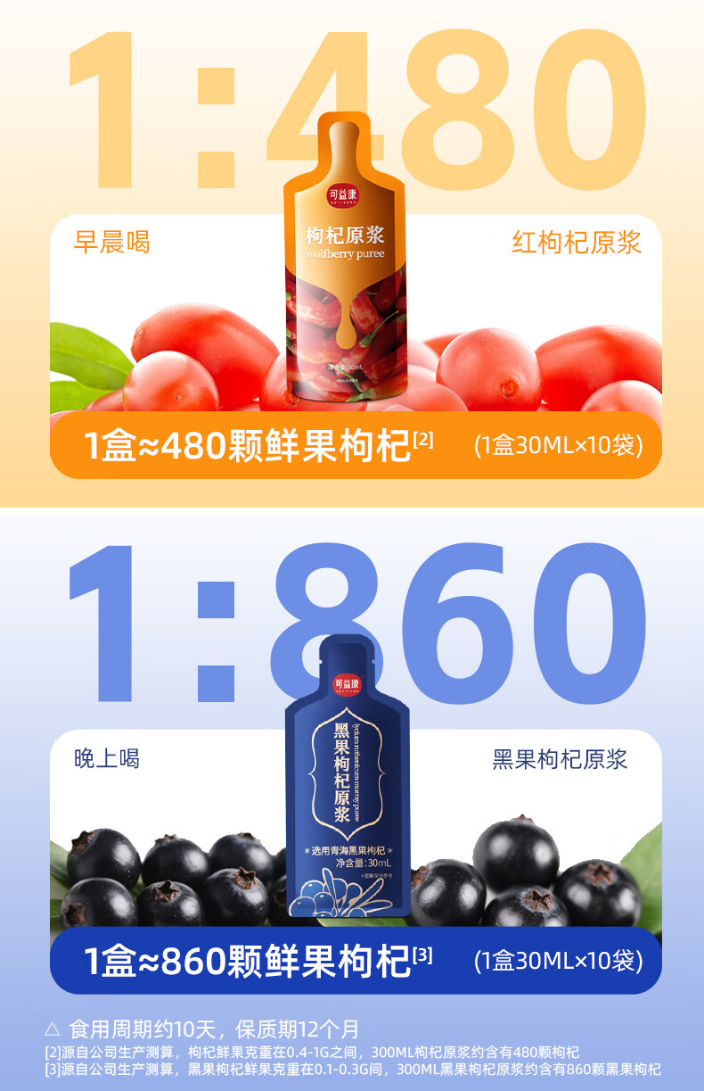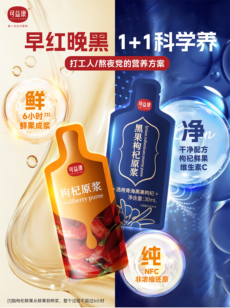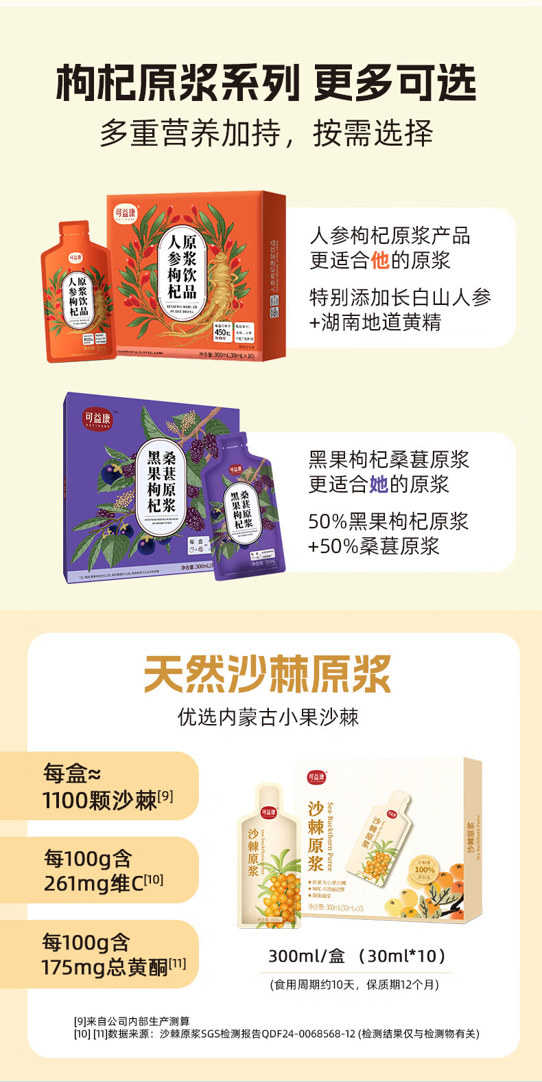 可益康5味原浆福袋 30ml/袋*5袋红枸杞黑枸杞蓝莓桑葚沙棘原浆