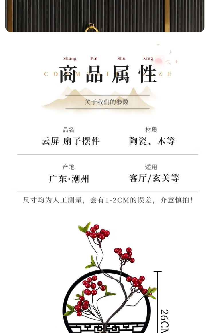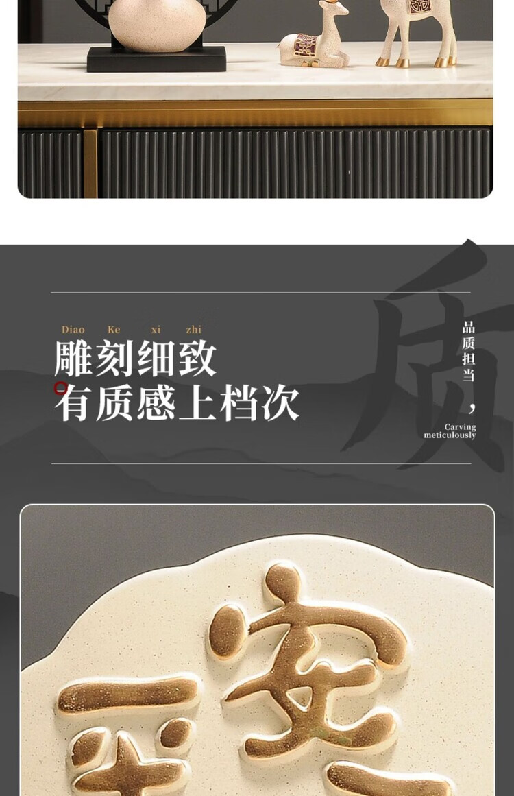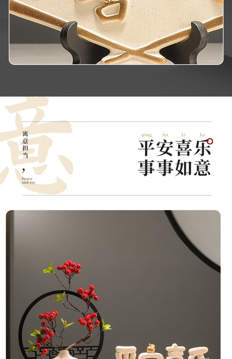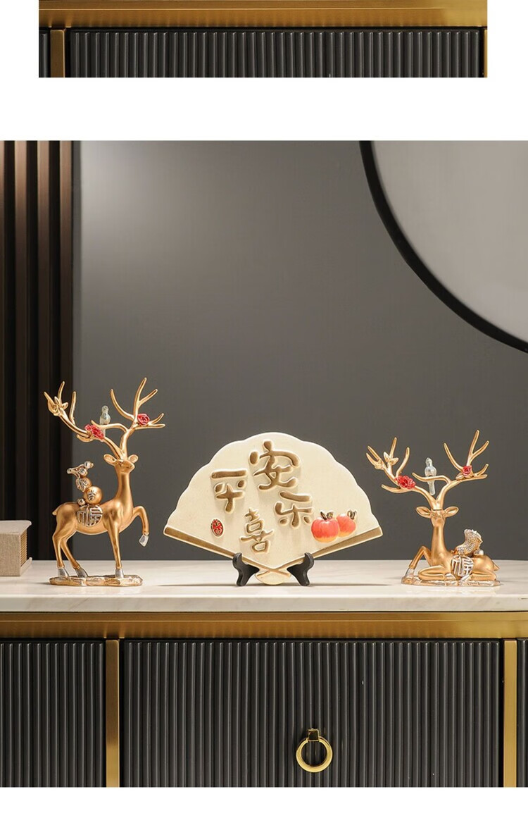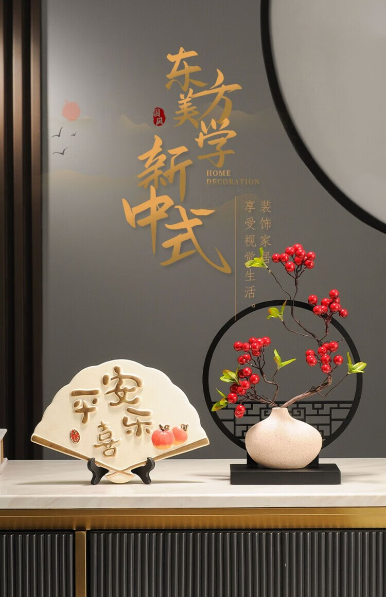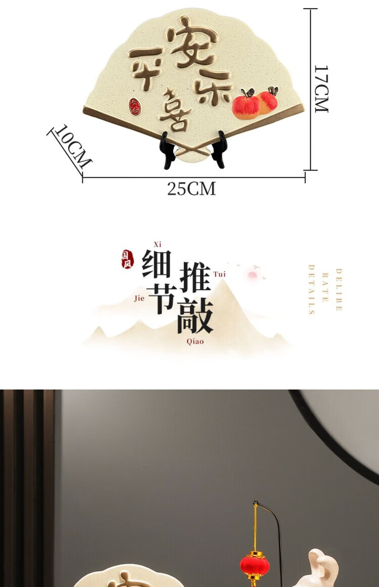 OYKTN新中式平安喜乐中国风扇子客厅玄关屏风电视柜摆件乔迁家居装跨境 平安喜乐扇
