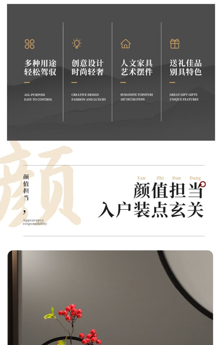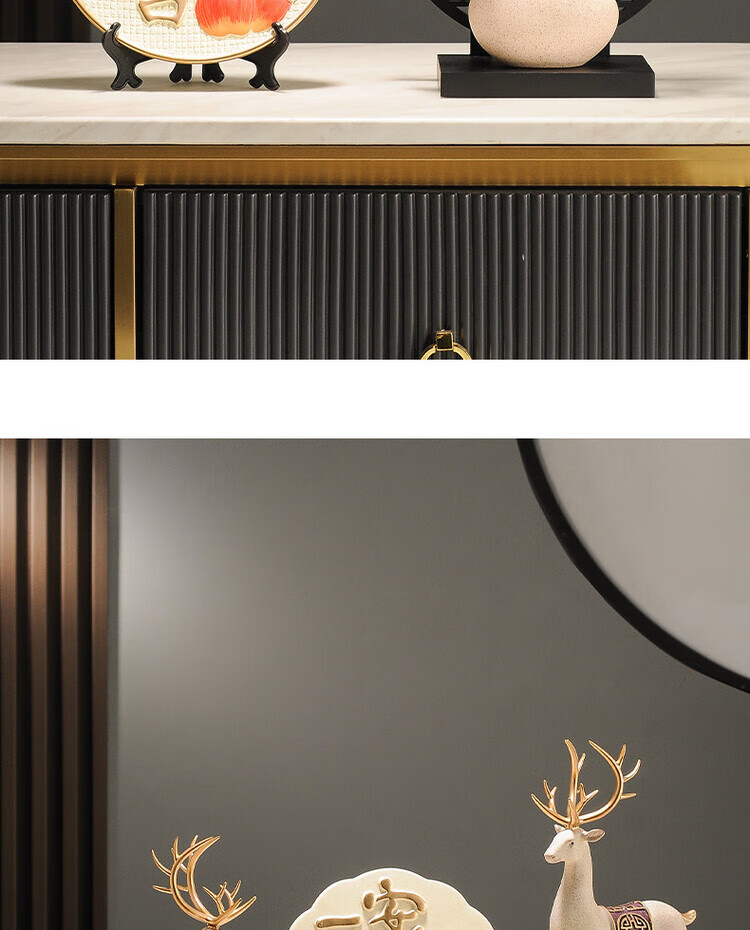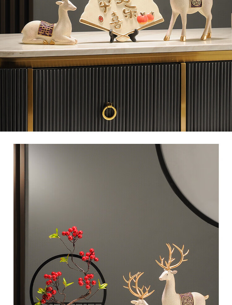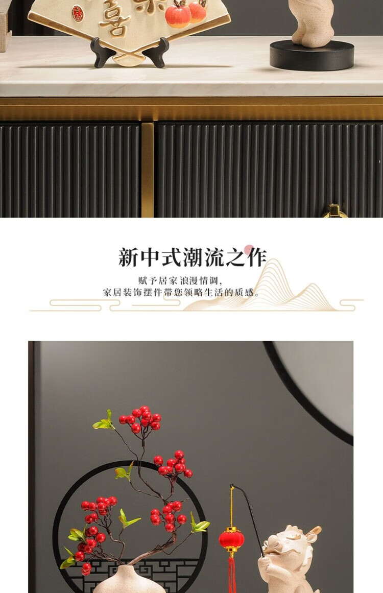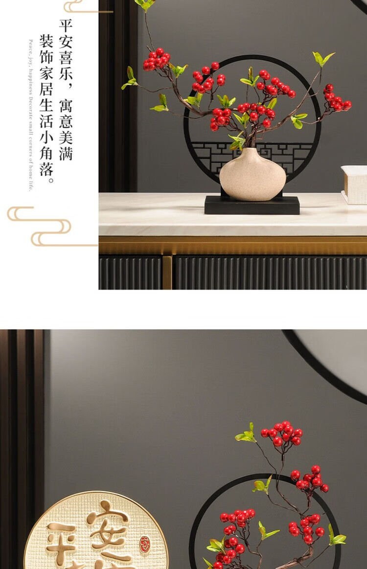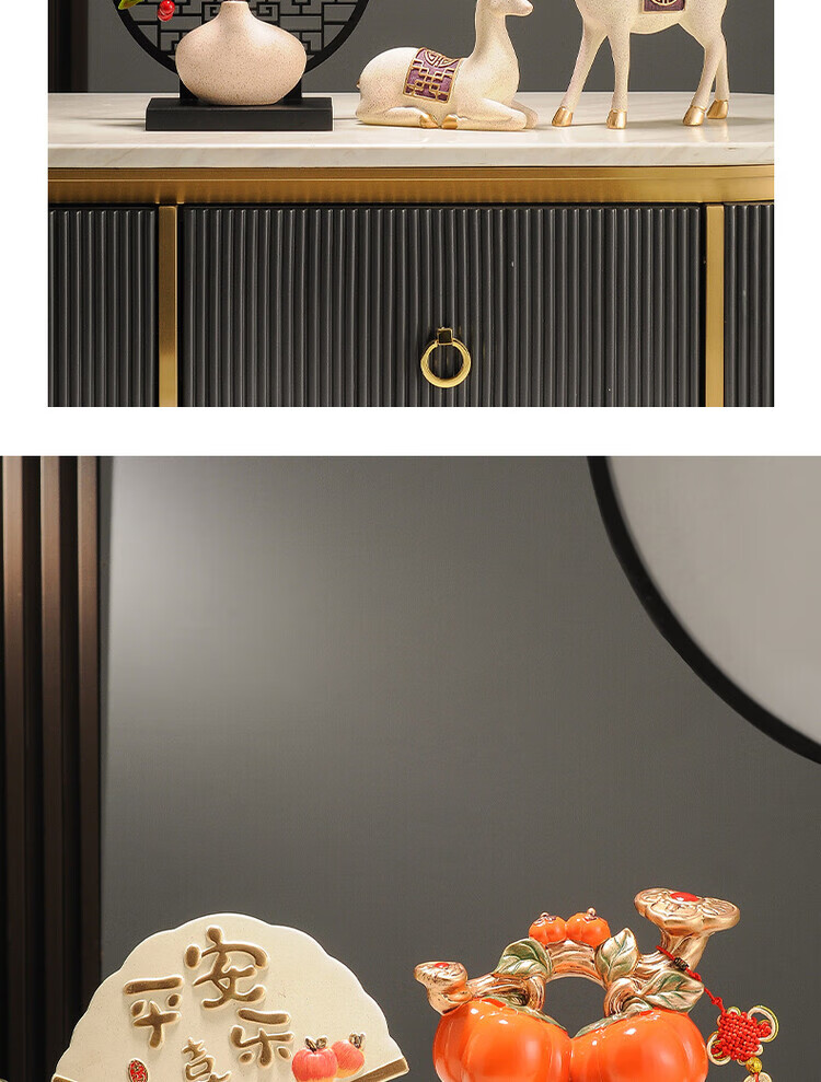 OYKTN新中式平安喜乐中国风扇子客厅玄关屏风电视柜摆件乔迁家居装跨境 平安喜乐扇