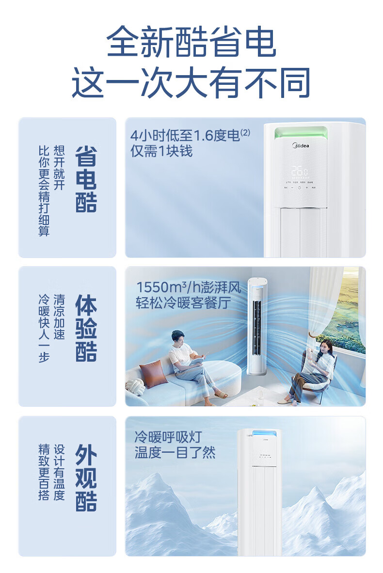 美的空调套装 酷省电系列 一套购齐 新一级能效 变频冷暖 智能省电 挂机+立式柜机组合 一室一厅(酷省电2025款+酷省电PRO柜机)