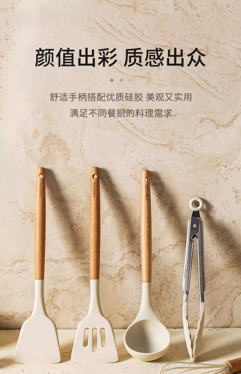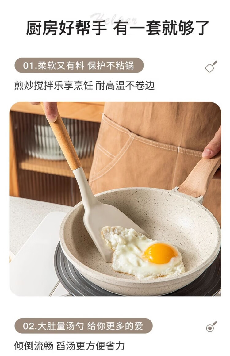 简漾硅胶铲子家用炒勺不粘锅专用炒菜硅胶锅铲不伤锅食品级厨具 5件套(菜铲+煎铲+汤勺+牛排夹+打蛋器)