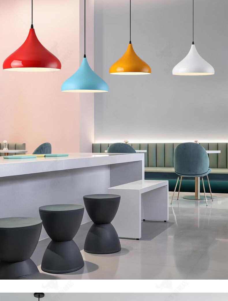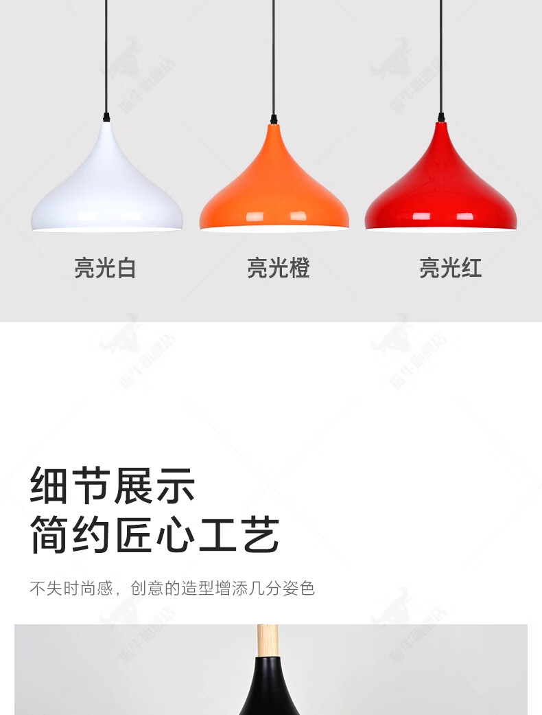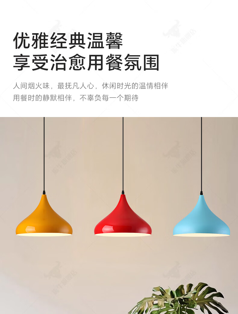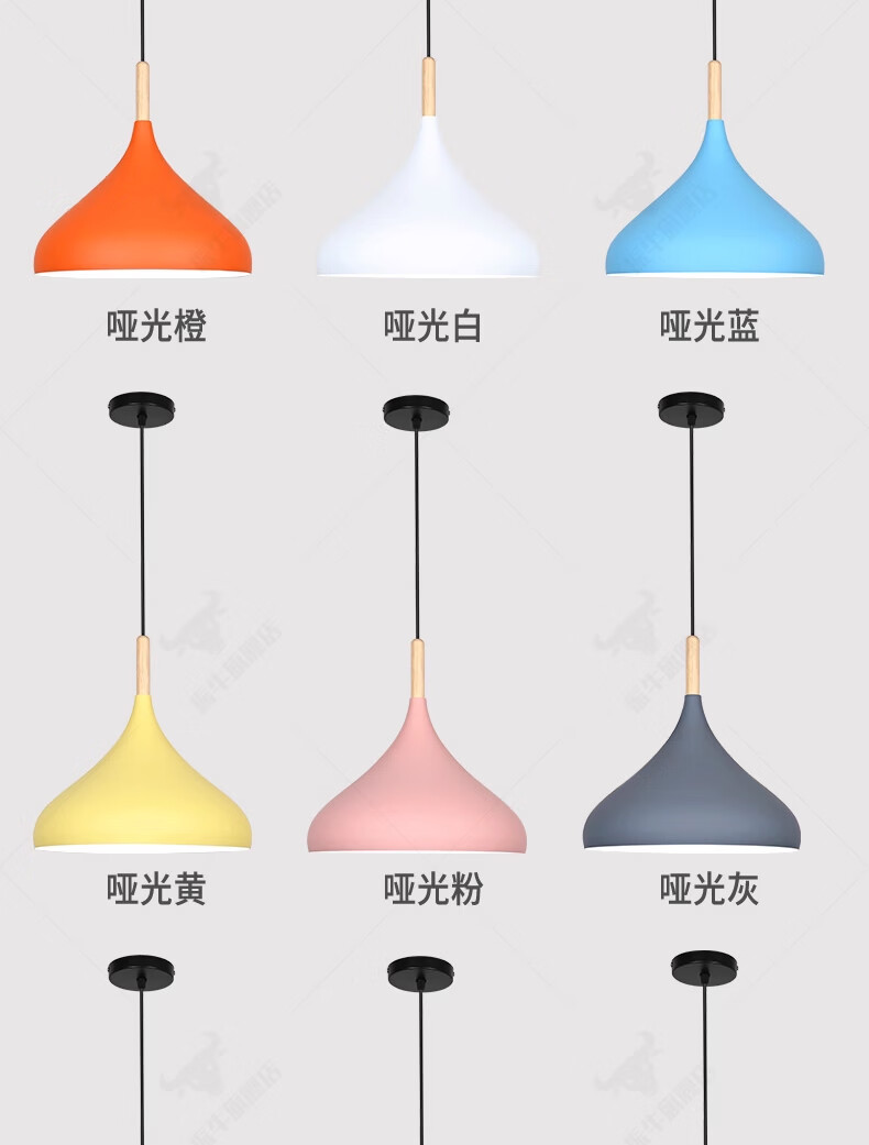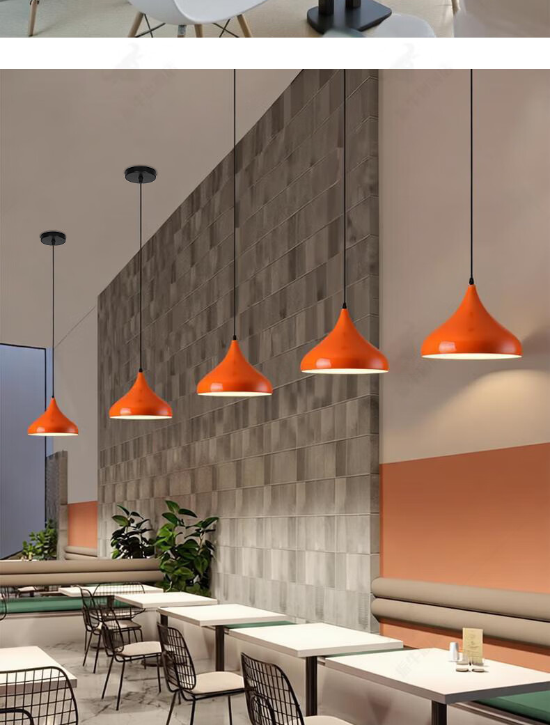 振牛吊灯工业风餐饮店餐厅餐馆火锅店铺专用灯具现代简约餐桌彩色灯罩 【17cm黑色】配10W暧光