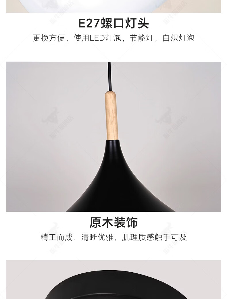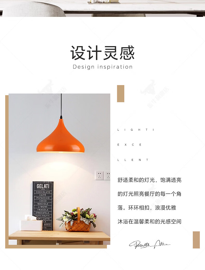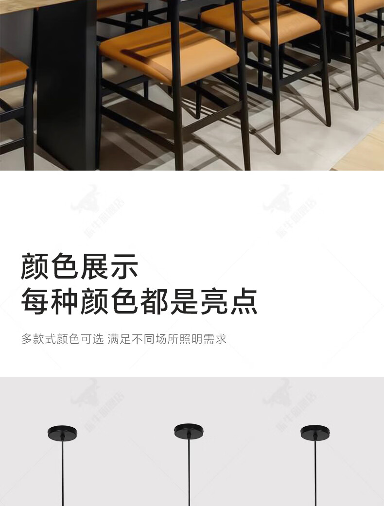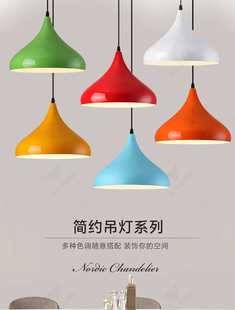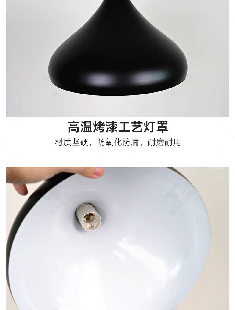 振牛吊灯工业风餐饮店餐厅餐馆火锅店铺专用灯具现代简约餐桌彩色灯罩 【17cm黑色】配10W暧光