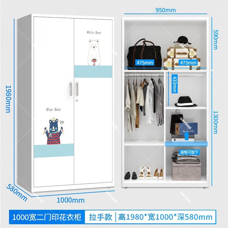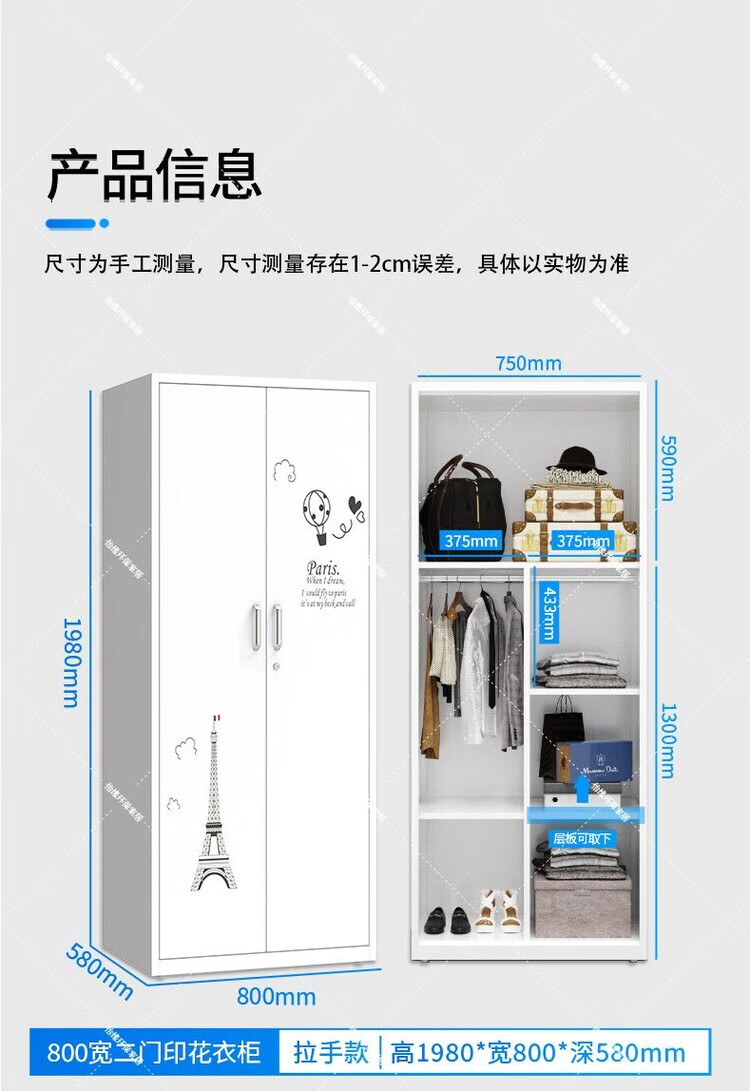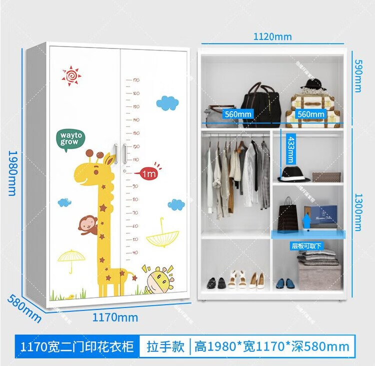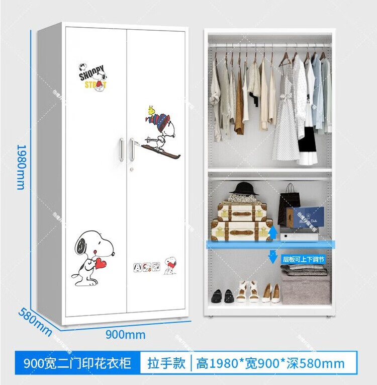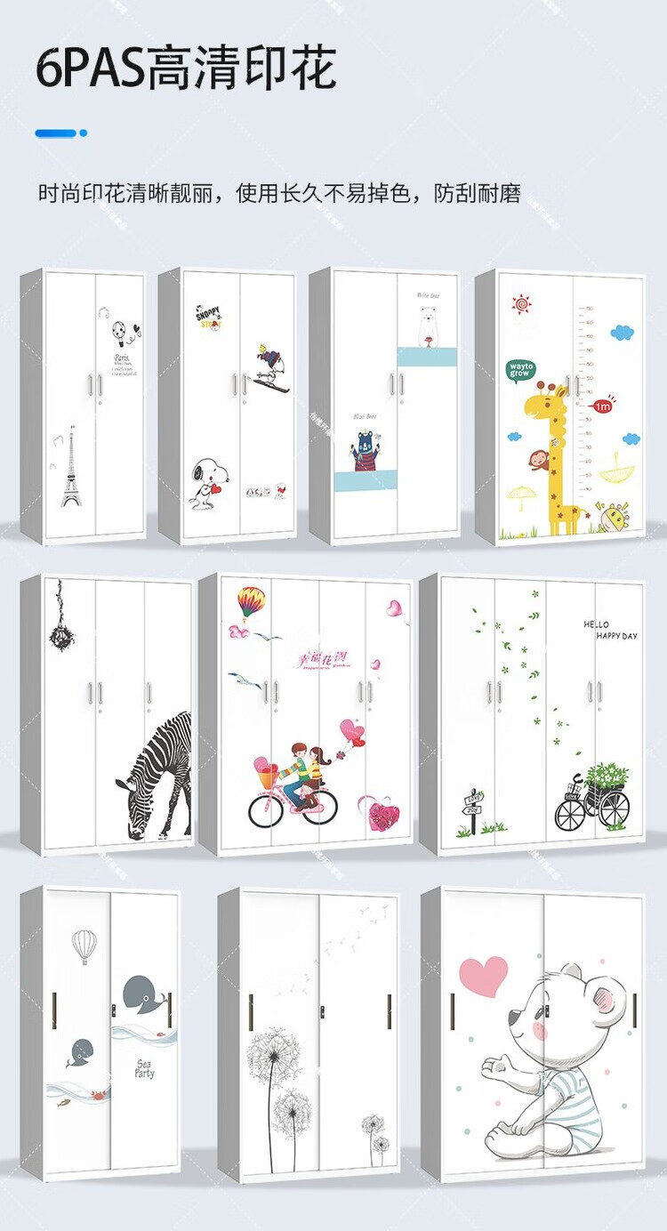 弘星隆钢制衣柜全钢加厚特厚卡通儿童房间出租房防潮防锈铁皮衣柜阳台柜 80CM*宽对开门(印花咨询客服) 自己安装