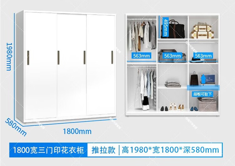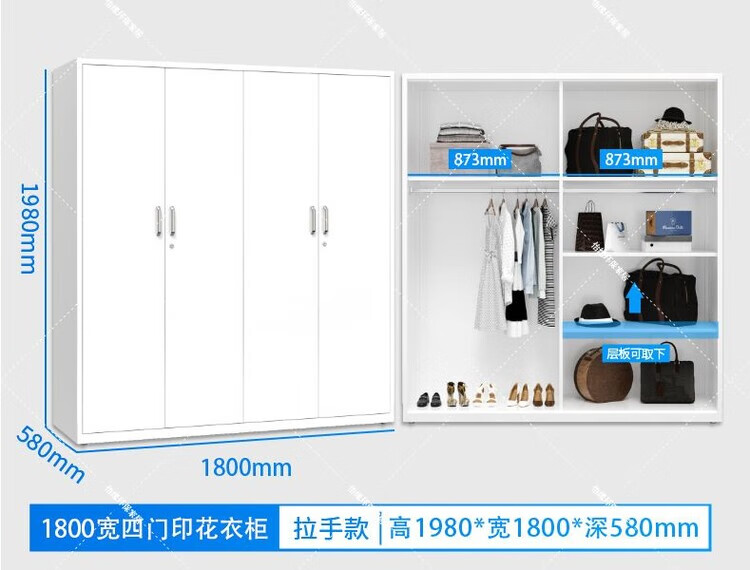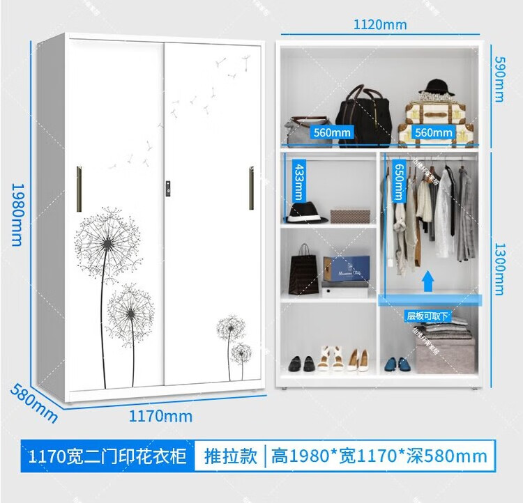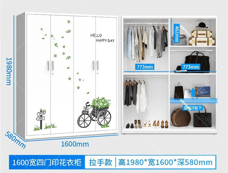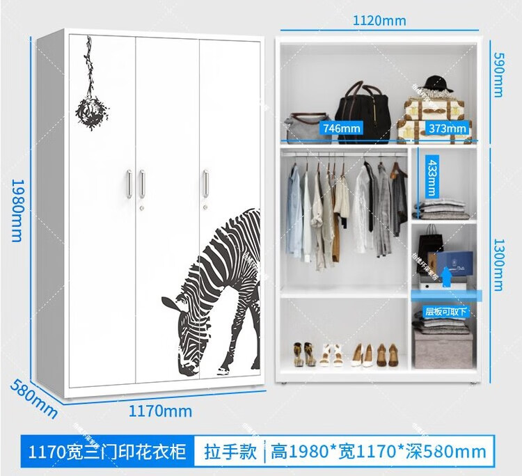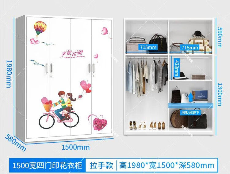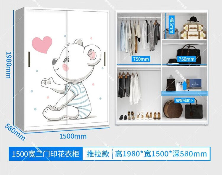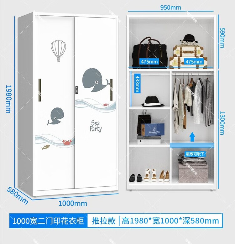 弘星隆钢制衣柜全钢加厚特厚卡通儿童房间出租房防潮防锈铁皮衣柜阳台柜 80CM*宽对开门(印花咨询客服) 自己安装