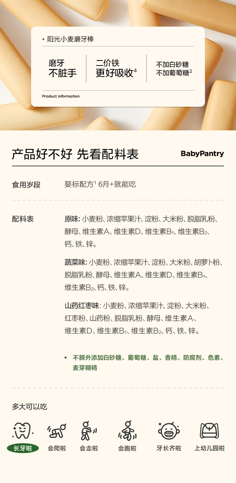 光合星球【带硅胶手持器】babycare儿童零食婴幼儿磨牙棒红枣山药味64g
