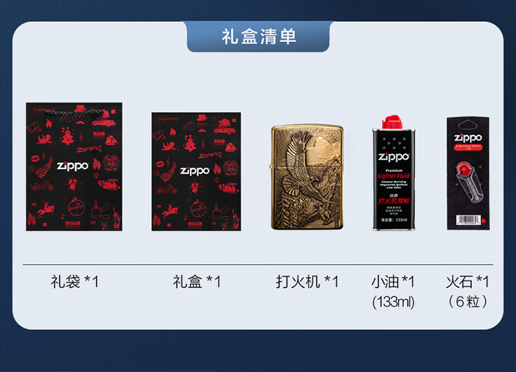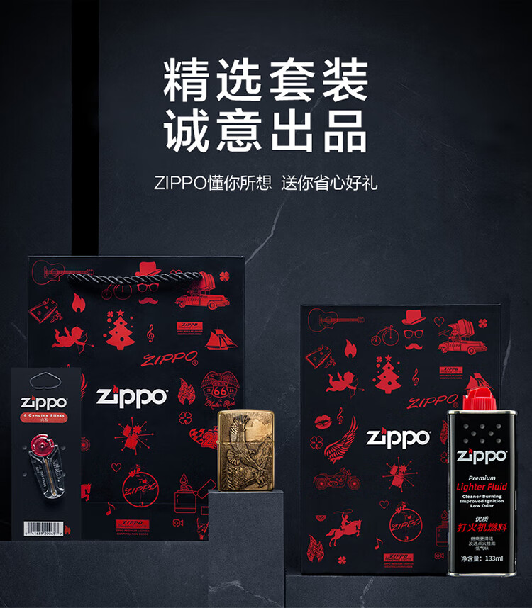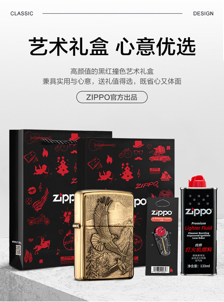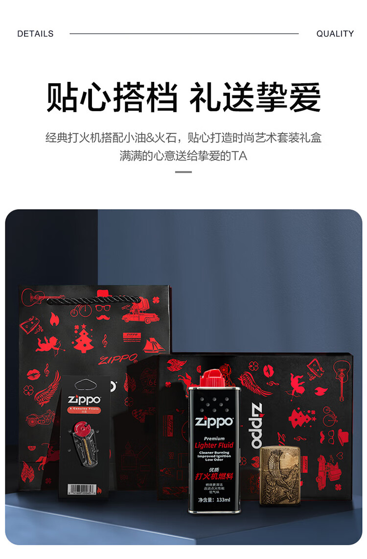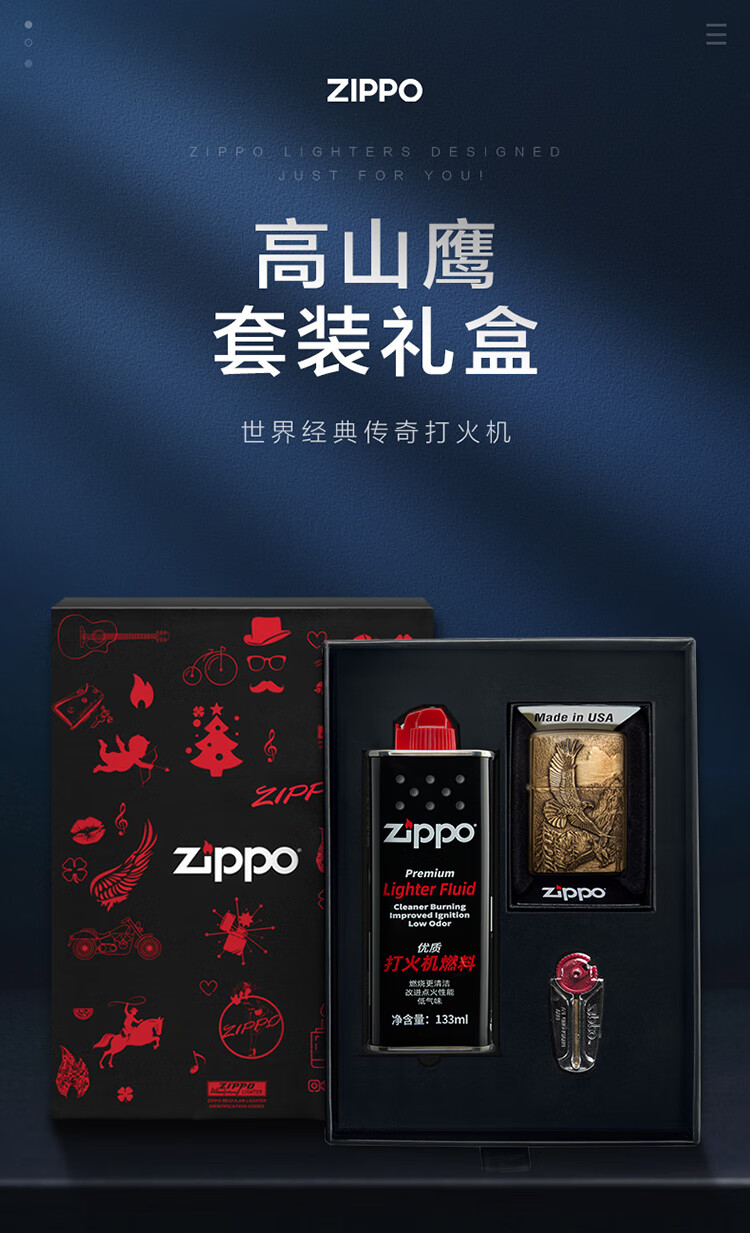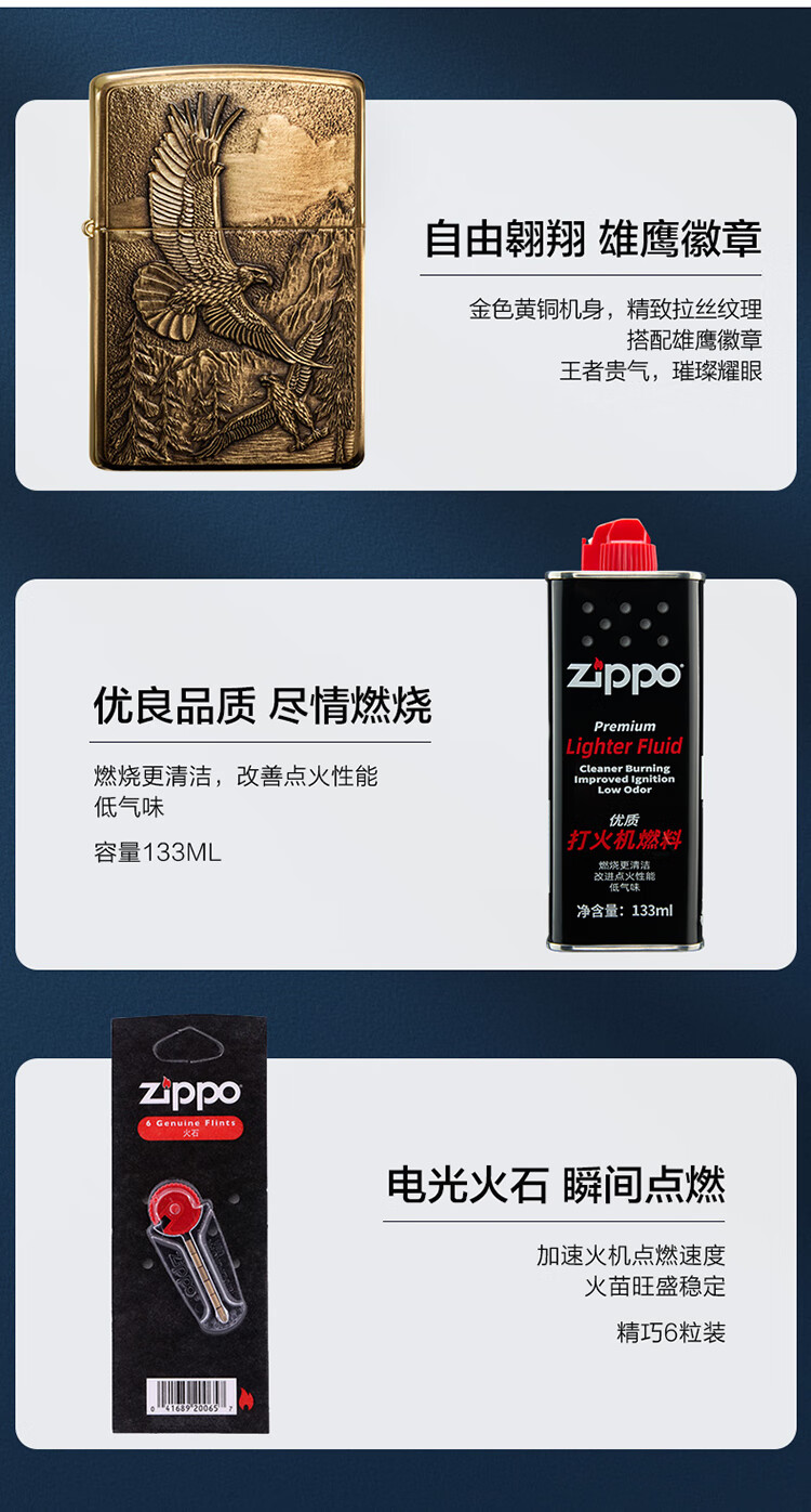 ZIPPO打火机之宝防风煤油 高山鹰 生日礼物男送男友 含油套装