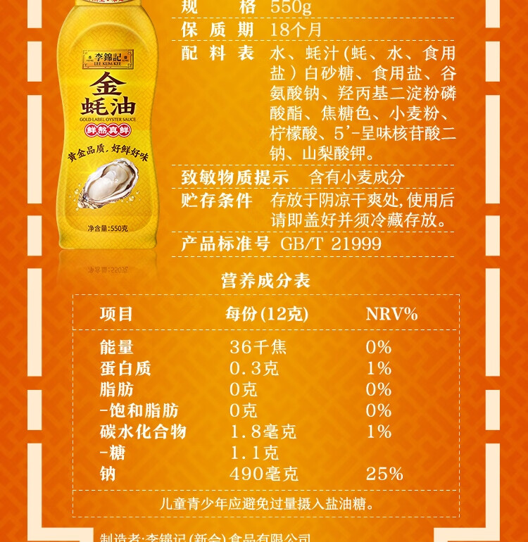 李锦记 金蚝油550g 挤挤装 鲜蚝熬煮 火锅蘸料炒菜凉拌 上等提鲜调味