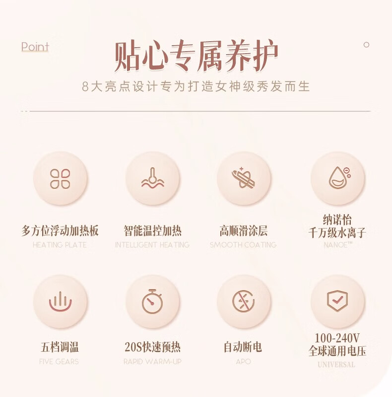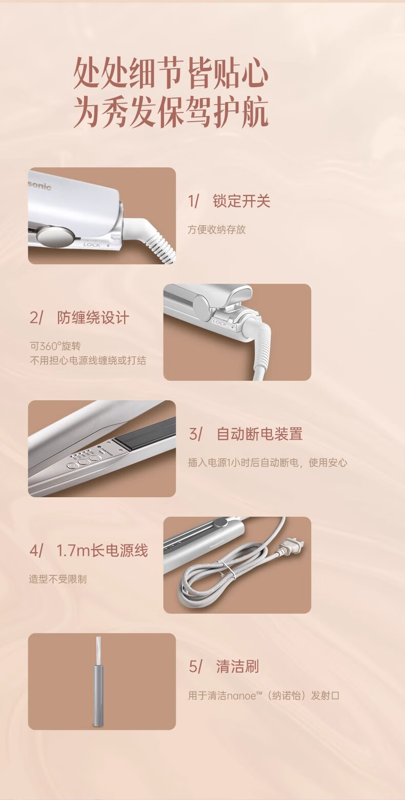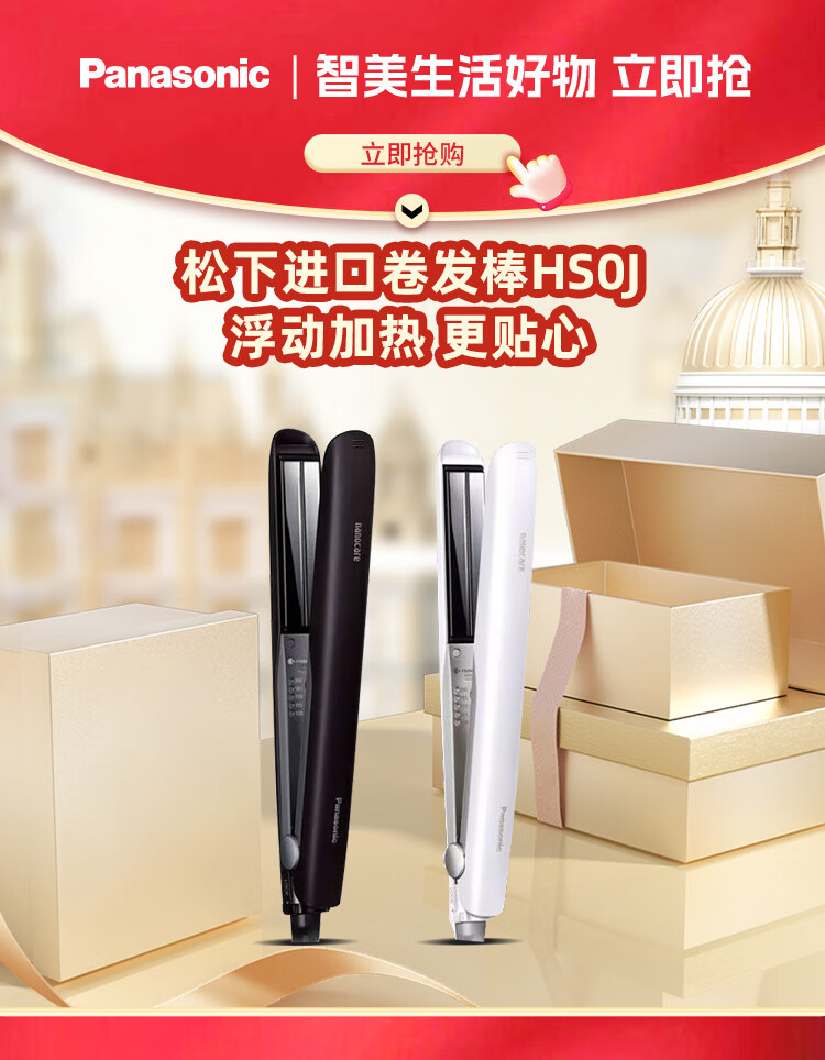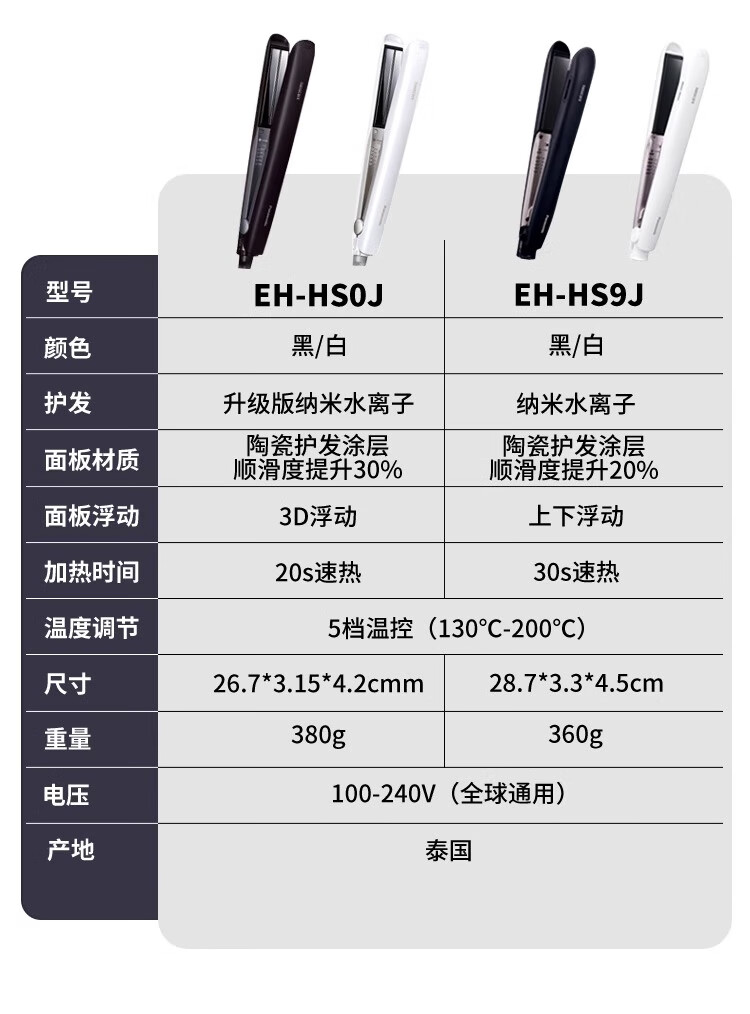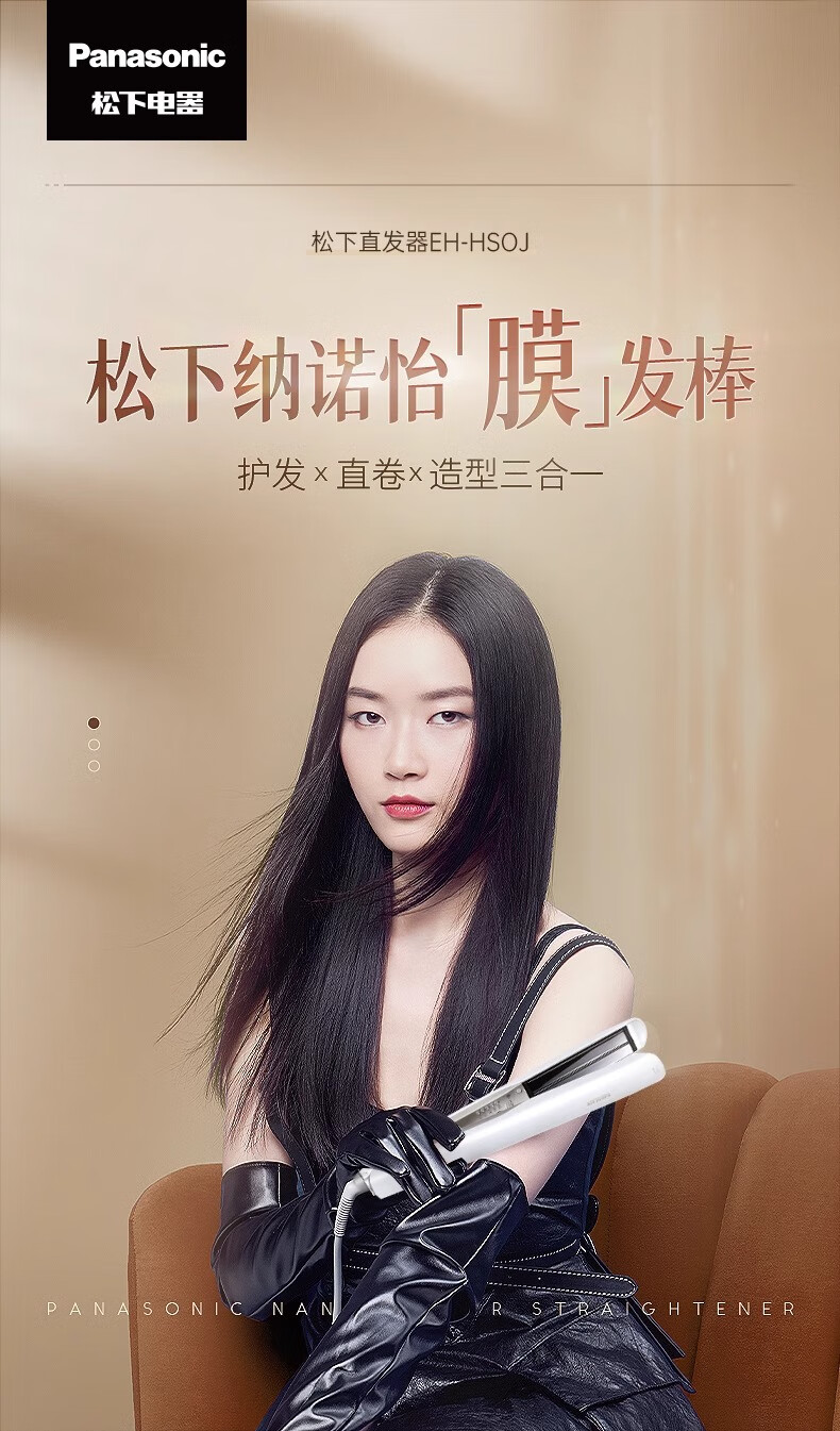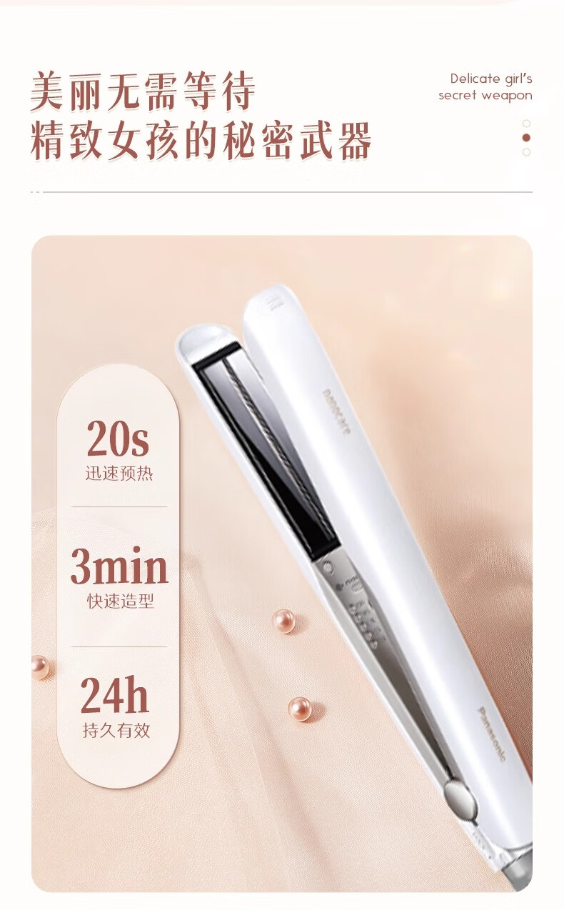 松下(Panasonic)进口HS0J-K 女士直发棒板两用造型器 水离子智能控温 不易伤发防烫 发根蓬松 女友情人节礼物