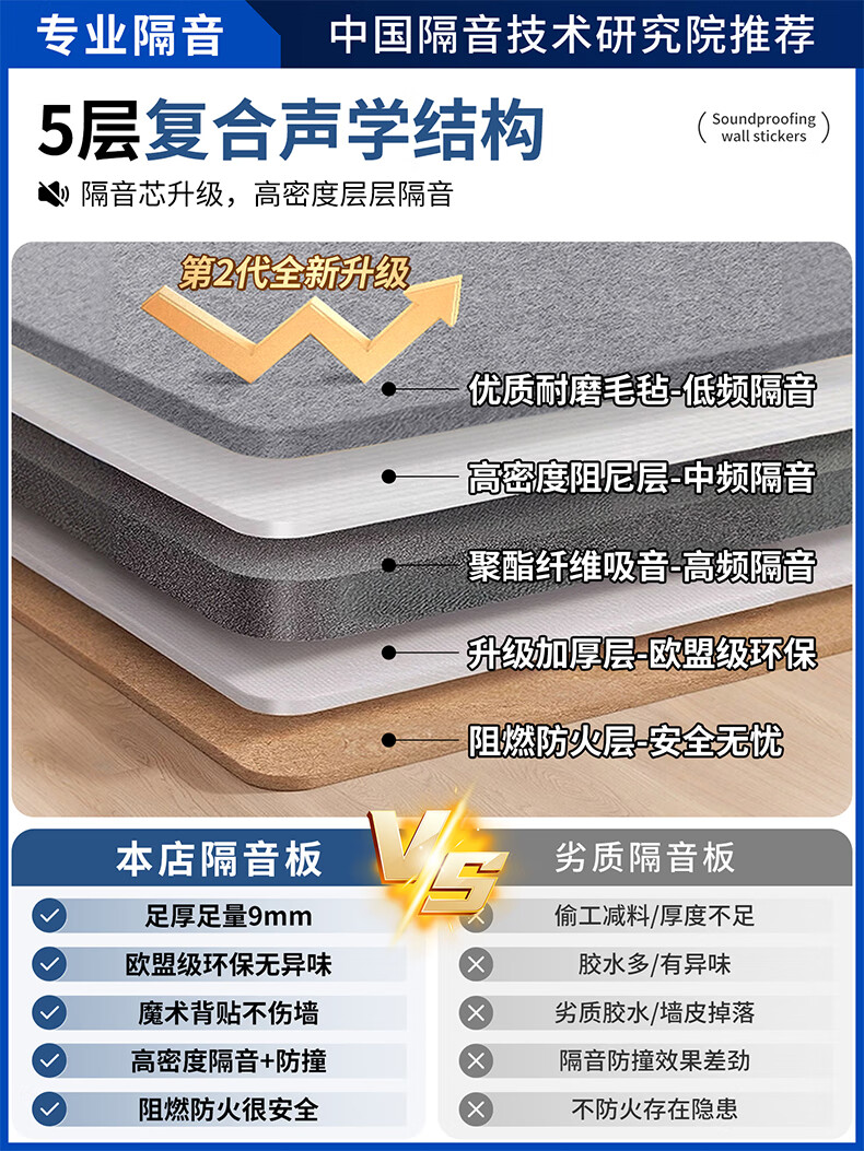 赛瓦凯隔音板吸音棉家用卧室墙面隔音棉房间超强阻尼消音棉神器防吵墙贴 月光白【多层复合声学结构/一贴静音】 9mm厚 30*60cm/片【5片=0.9平】